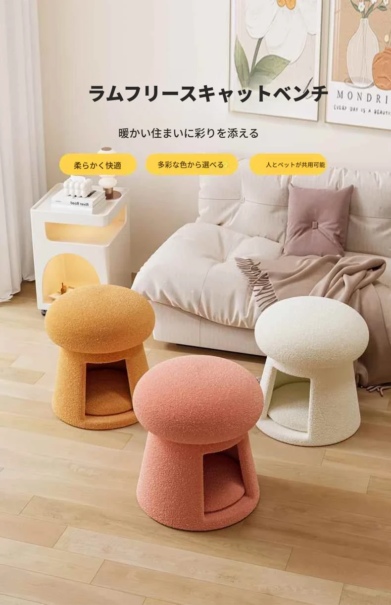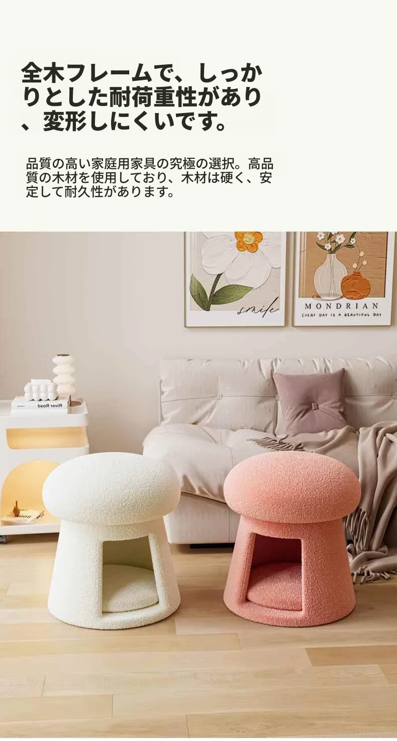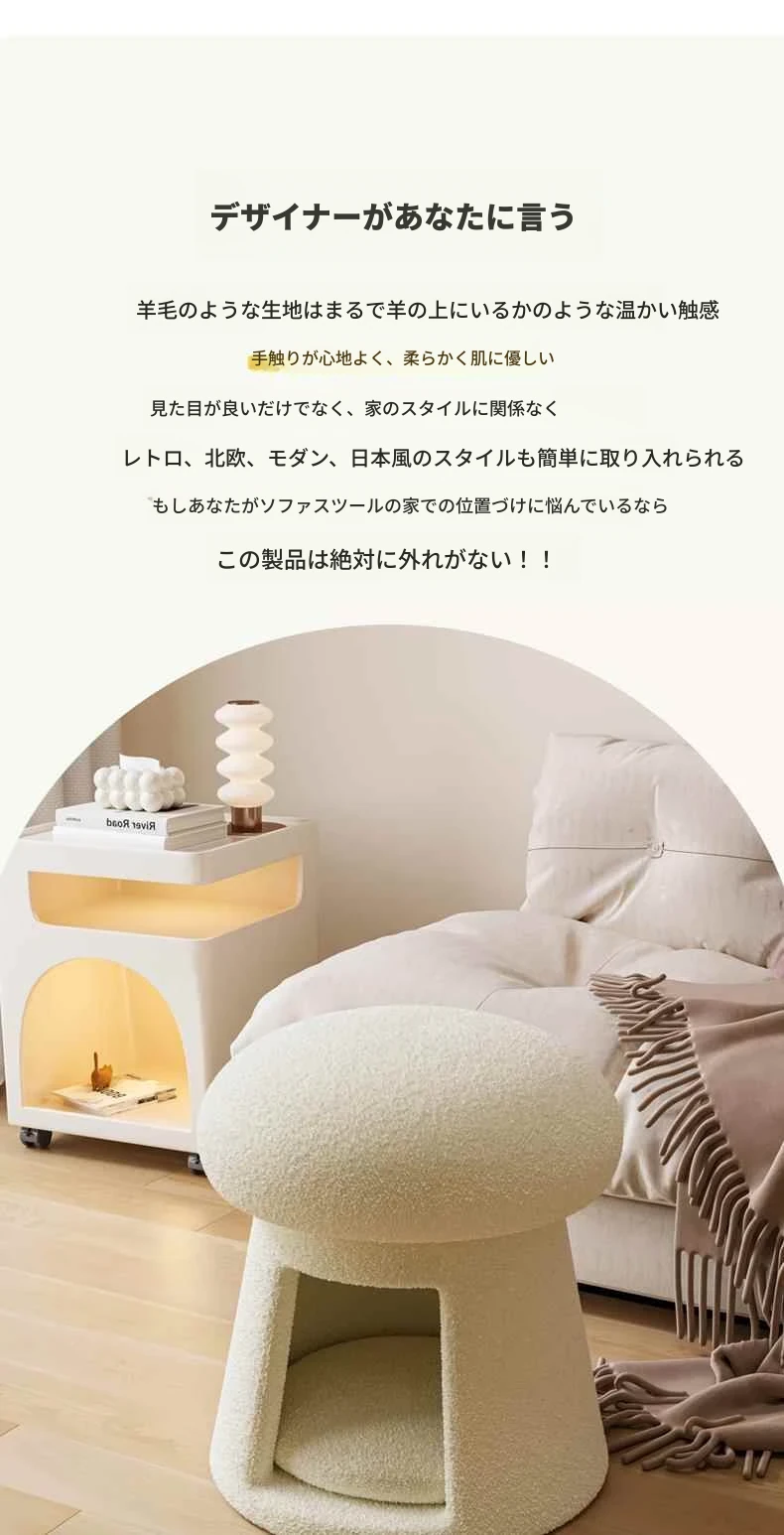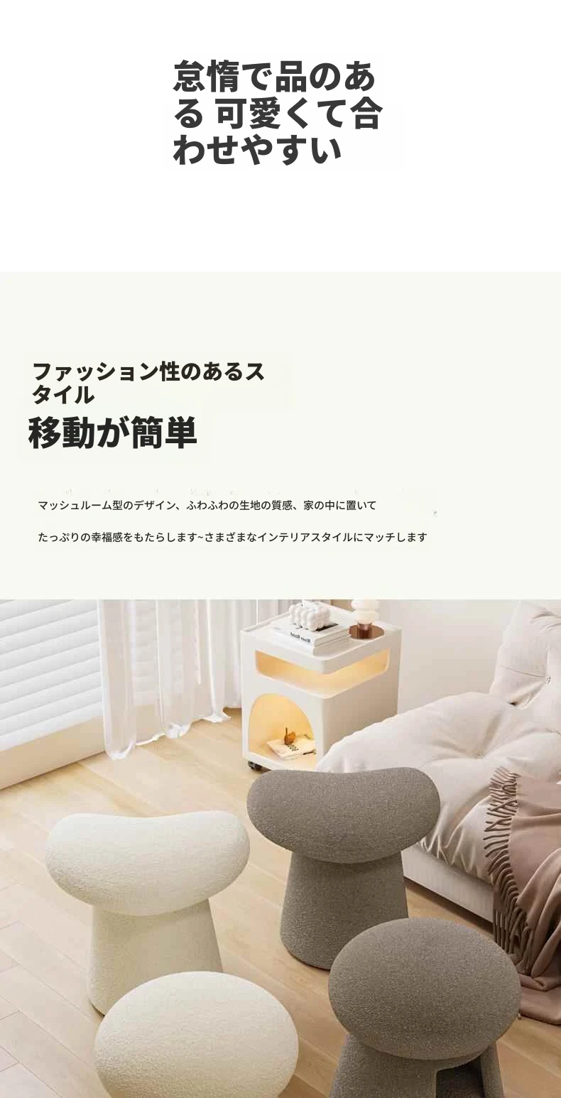 クリーム色の高級メイクアップチェア、主寝室やドレッシングルームに最適なスタイリッシュなマッシュルーム型ラウンドスツール。女性にぴったりのトレンドアイテムで、魅力的な空間を演出します!