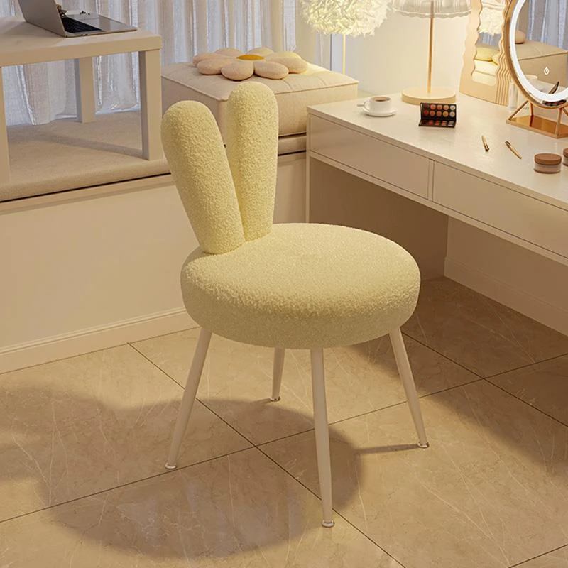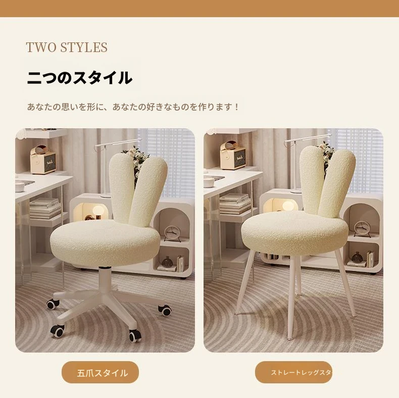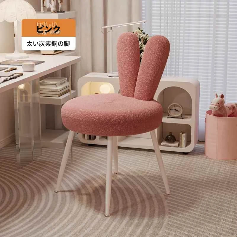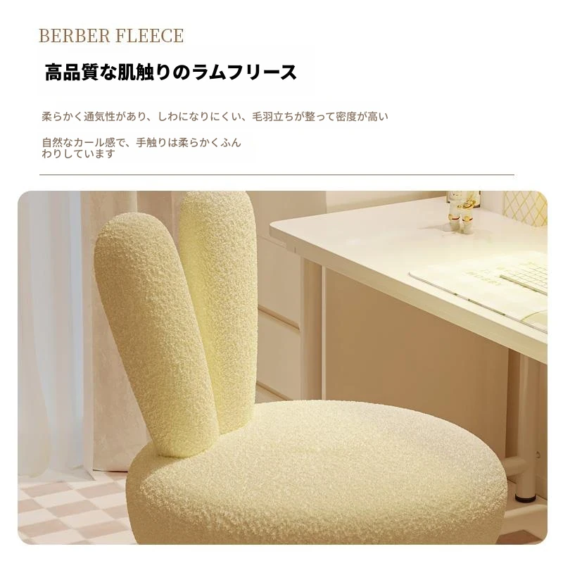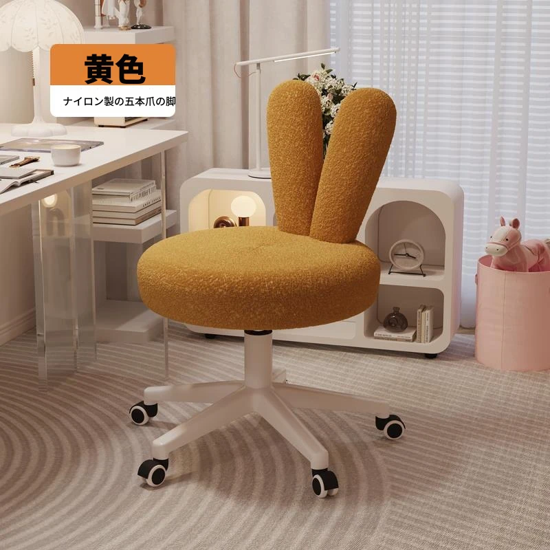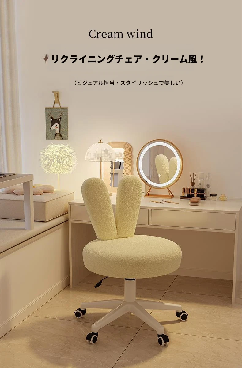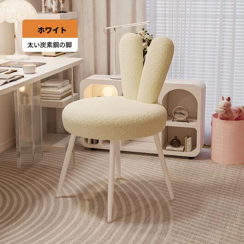 クリームカラーの化粧台椅子 女性用 背もたれ付き おしゃれで高級感あふれる ネットで人気のネイル用ラビットチェア あなたの寝室を華やかに演出します!