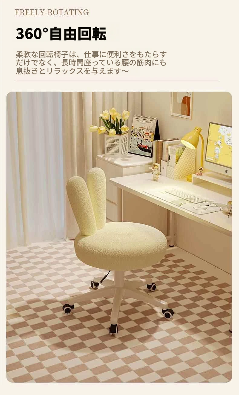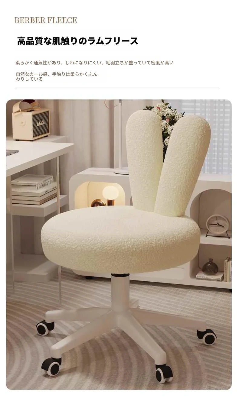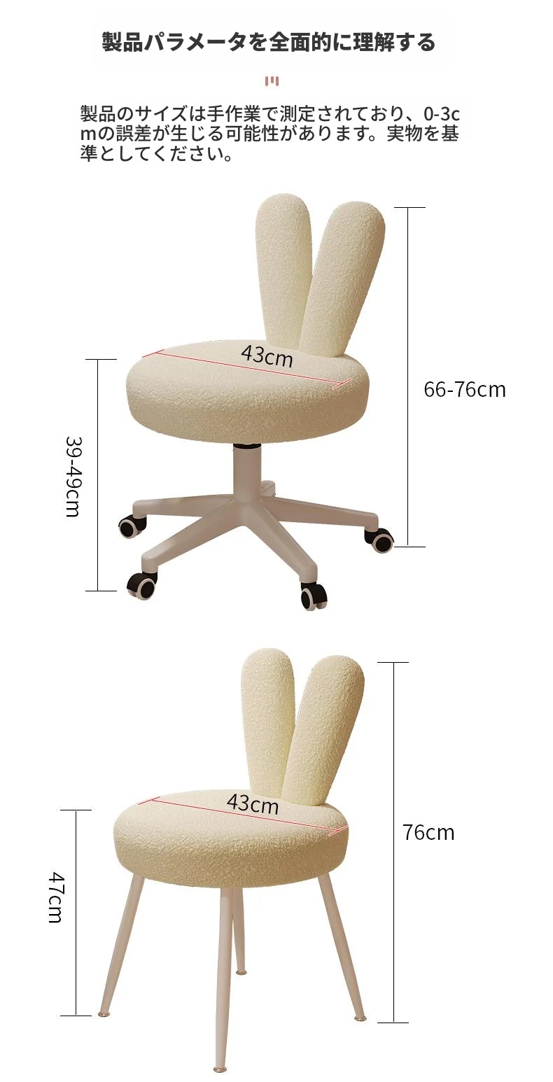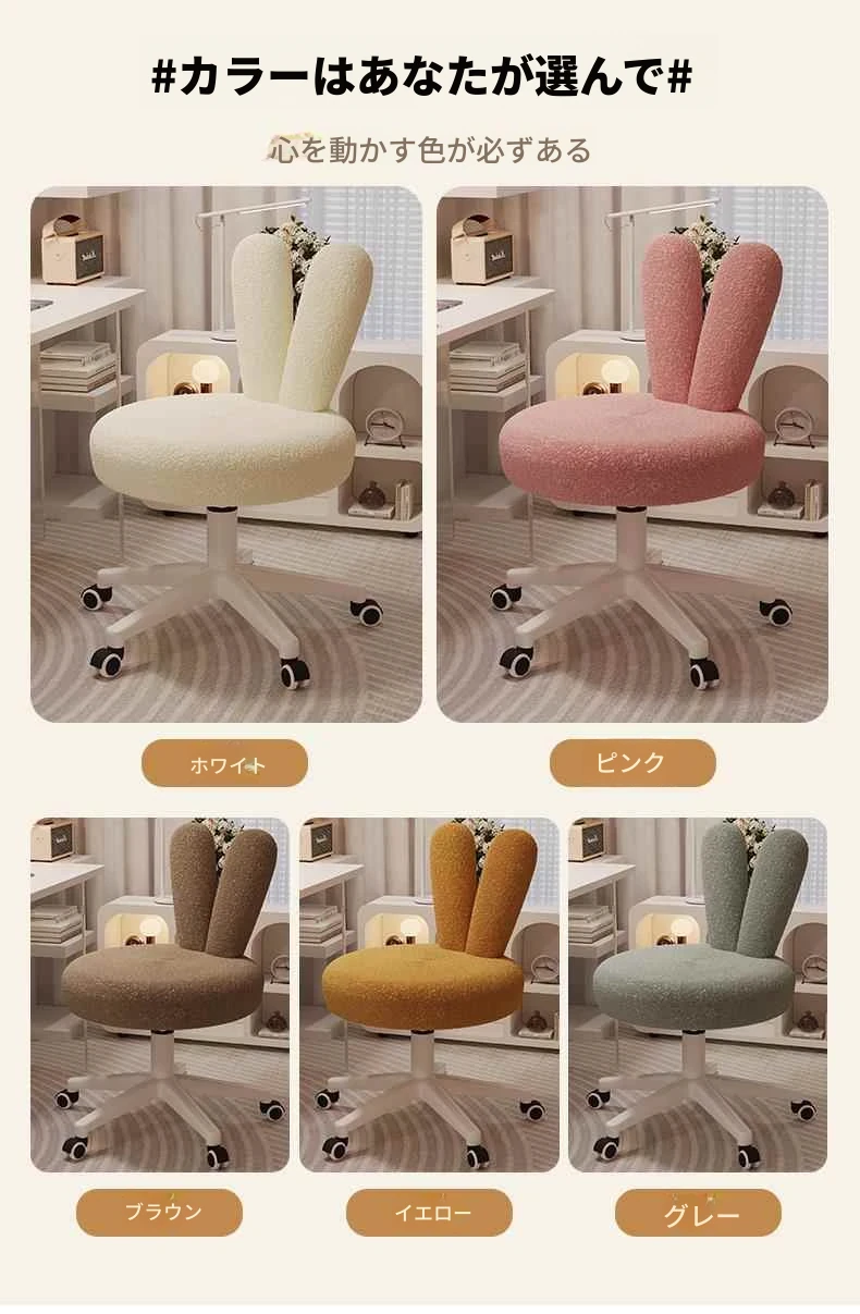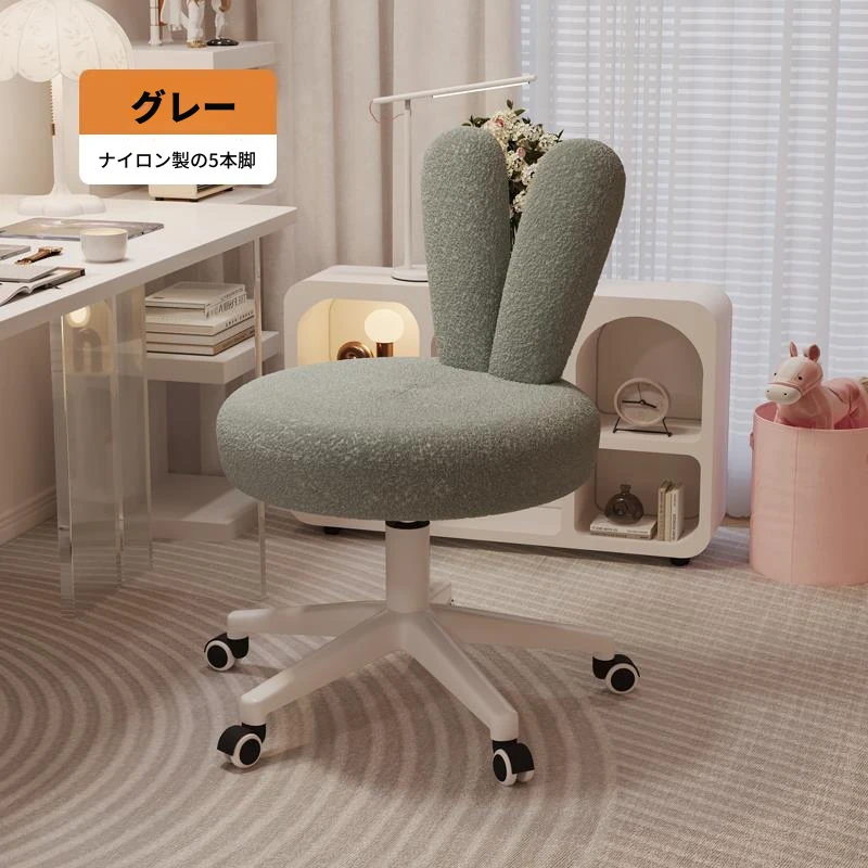 クリームカラーの化粧台椅子 女性用 背もたれ付き おしゃれで高級感あふれる ネットで人気のネイル用ラビットチェア あなたの寝室を華やかに演出します!