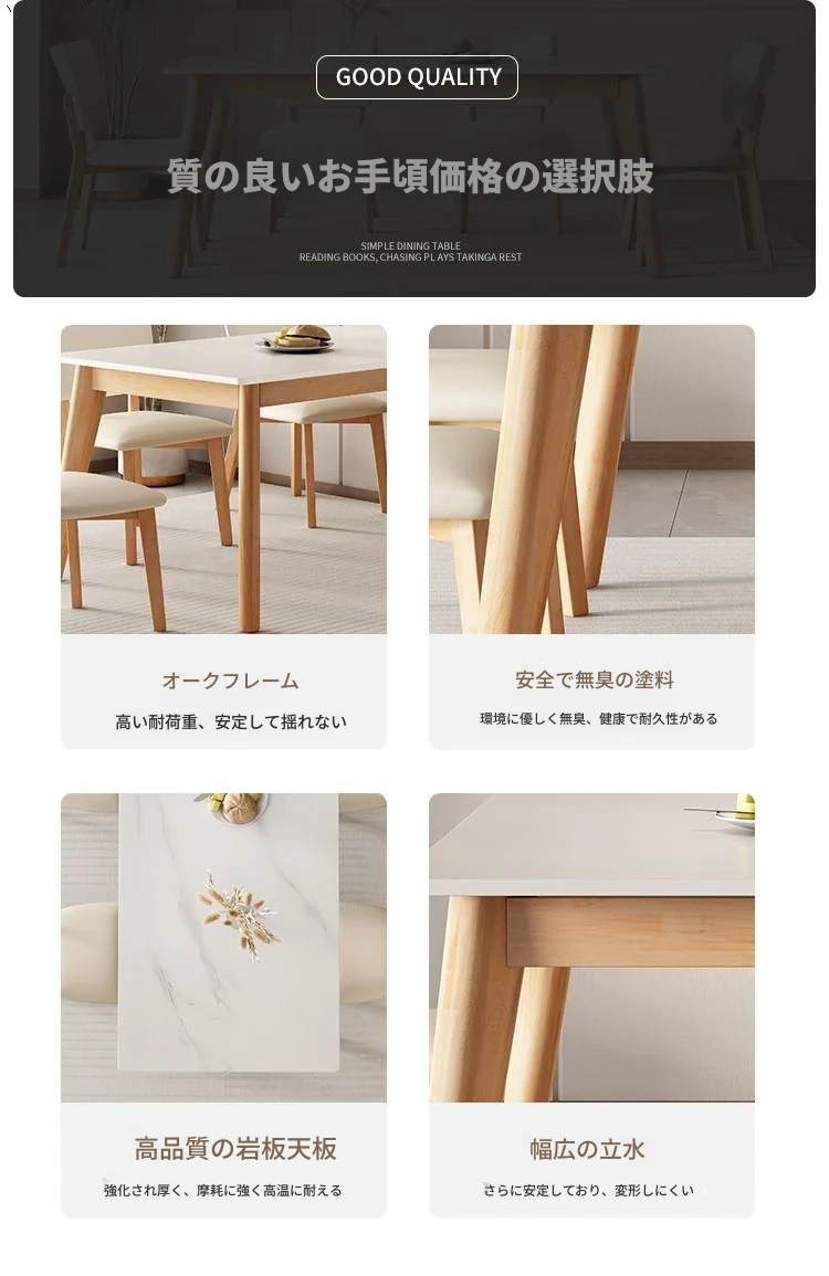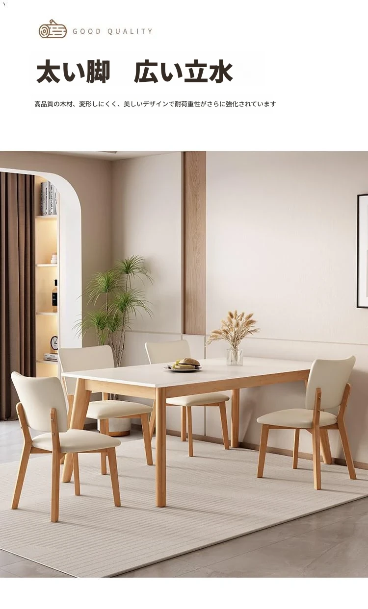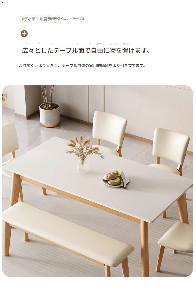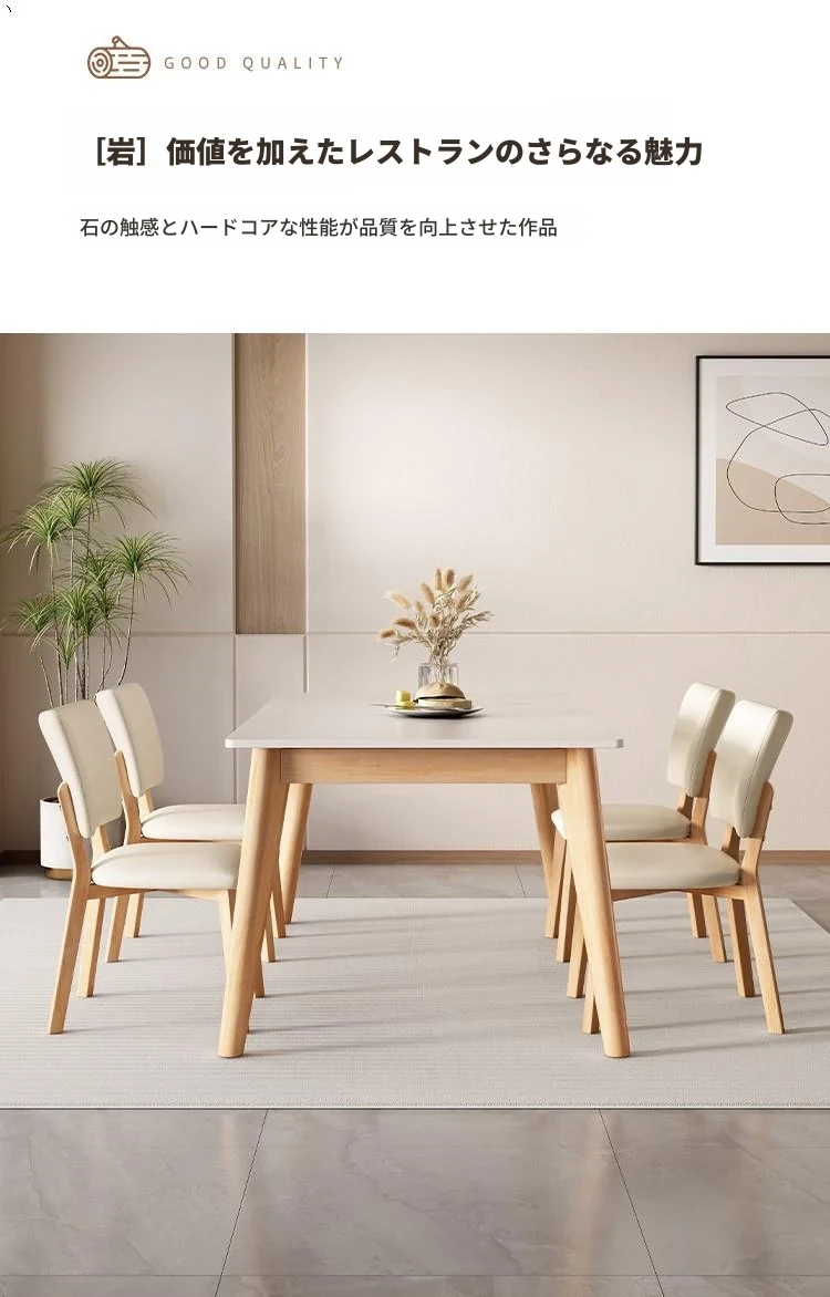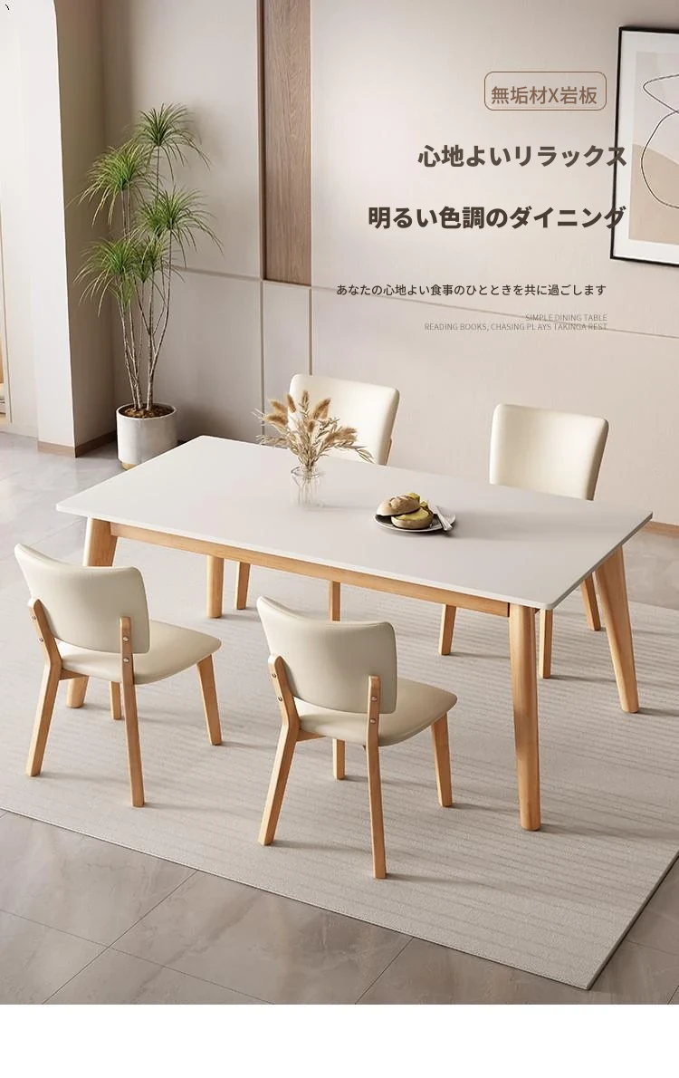 クリーム風の無垢材ロックボードダイニングテーブル&チェアセット - 北欧モダンなミニマリストデザイン、小型住宅にもぴったりな長方形ダイニングテーブル!おしゃれで機能的、家族や友人との食事をもっと特別に!