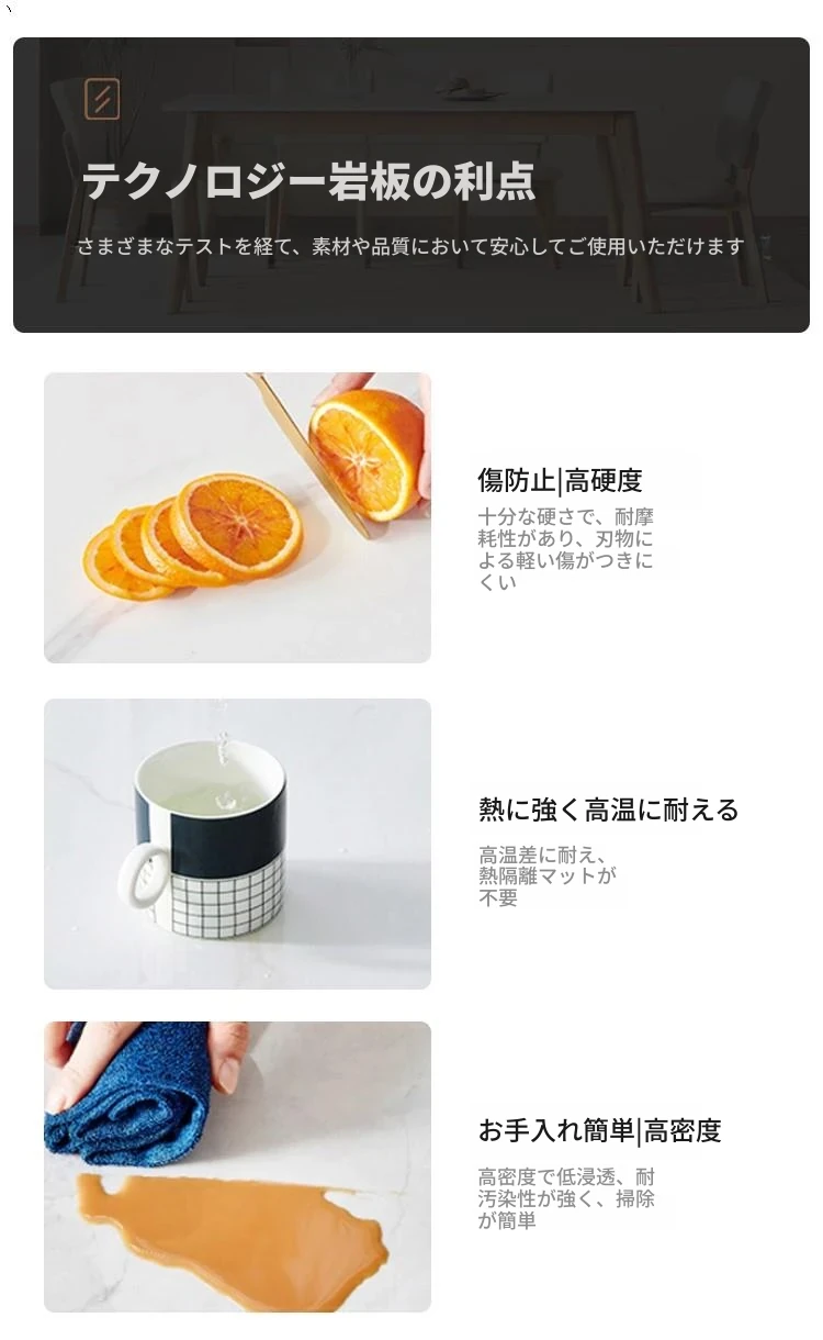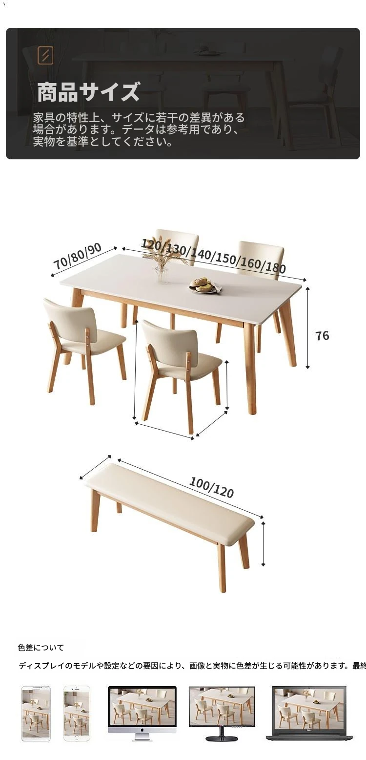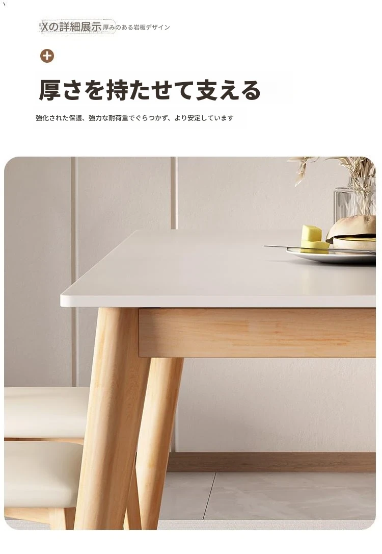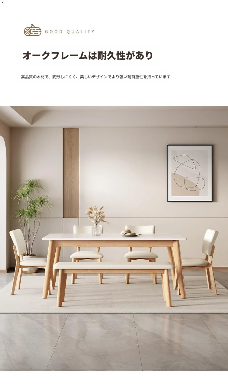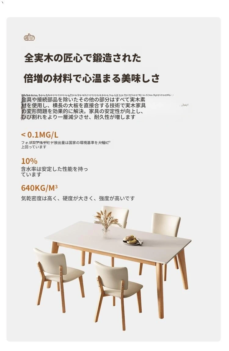 クリーム風の無垢材ロックボードダイニングテーブル&チェアセット - 北欧モダンなミニマリストデザイン、小型住宅にもぴったりな長方形ダイニングテーブル!おしゃれで機能的、家族や友人との食事をもっと特別に!