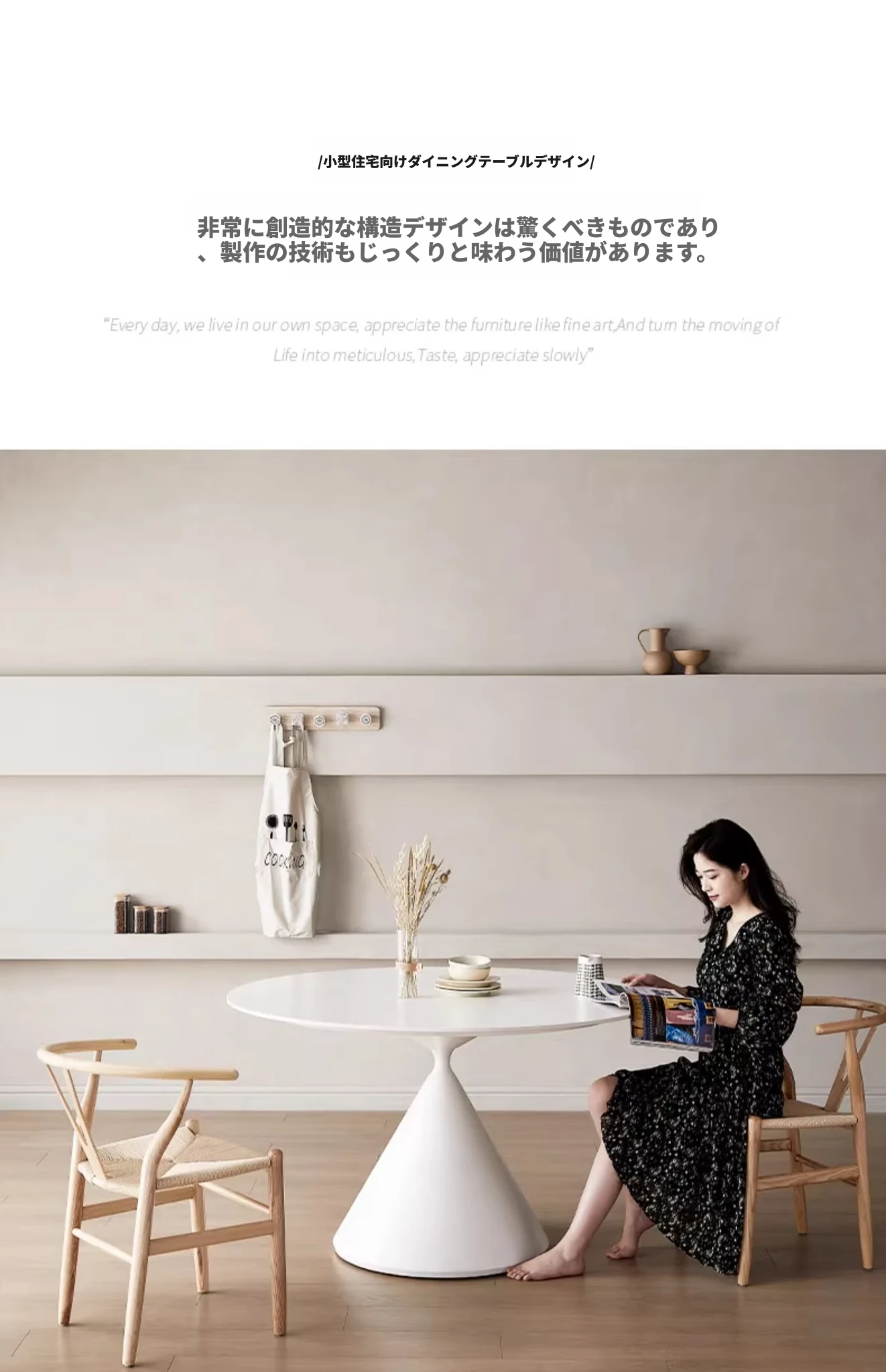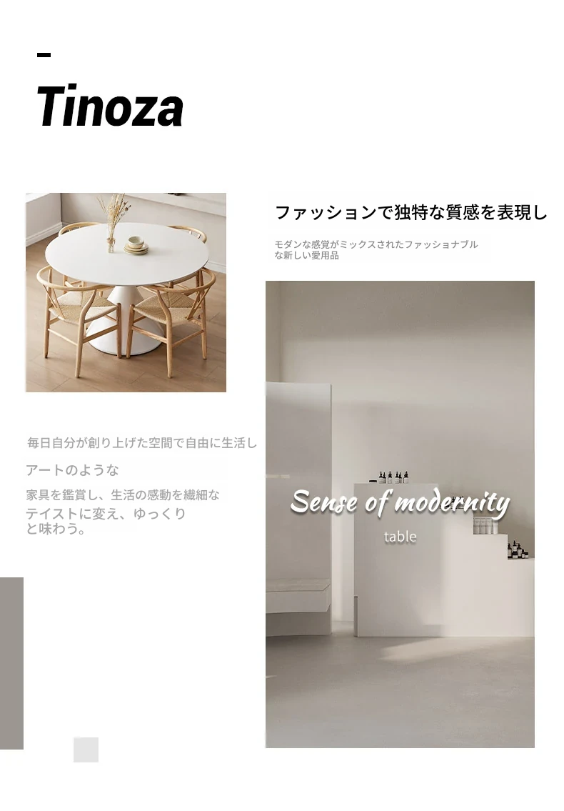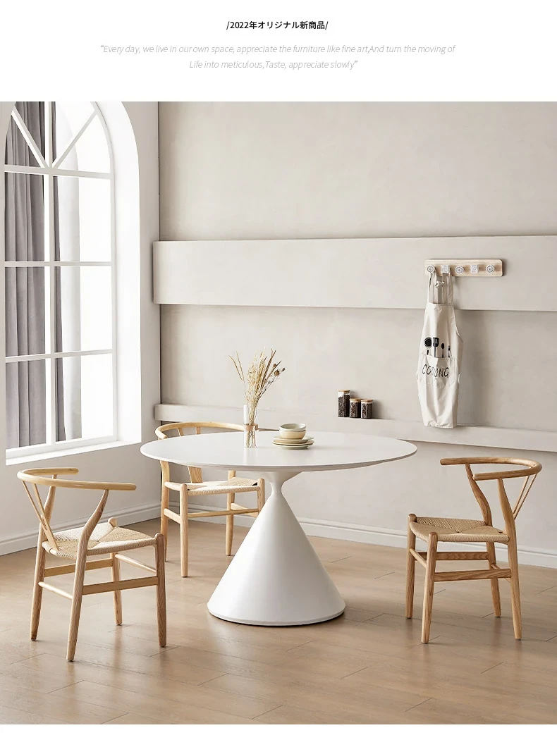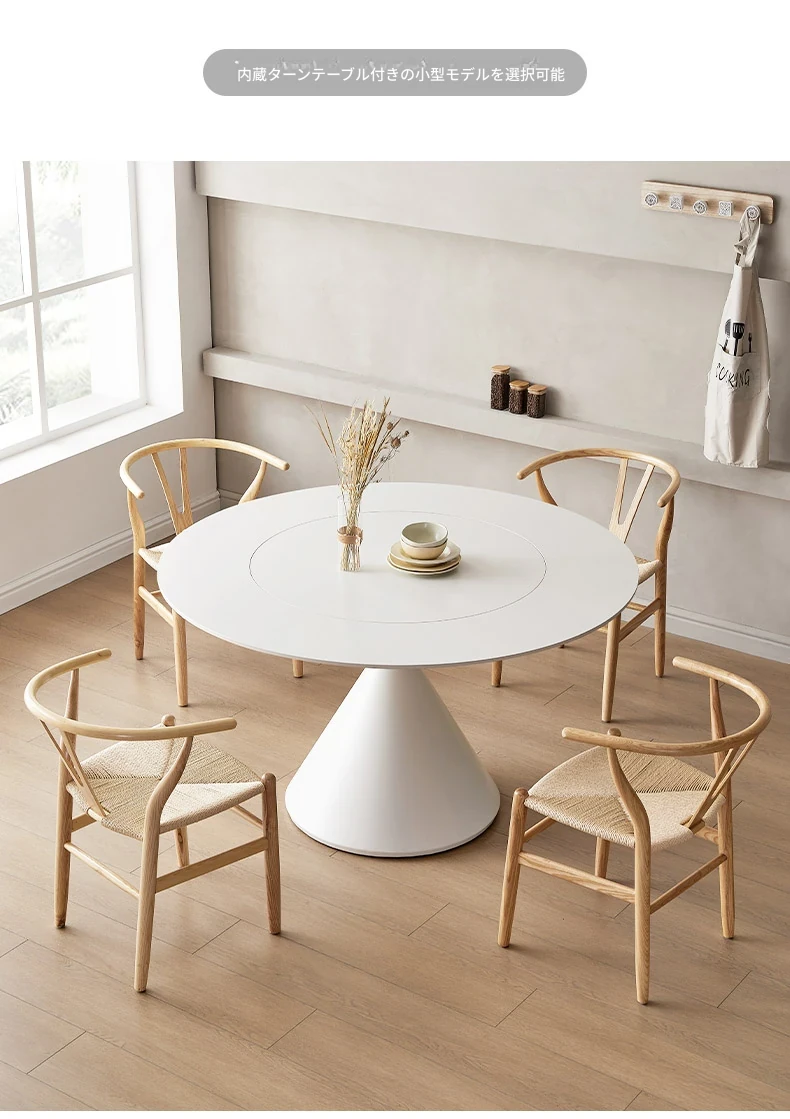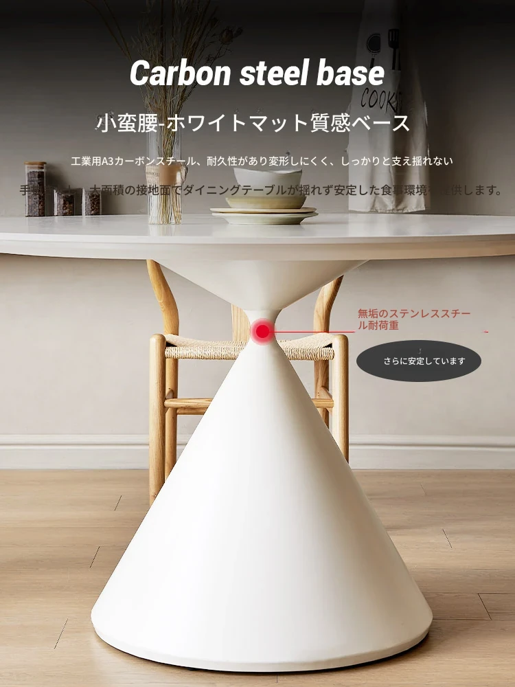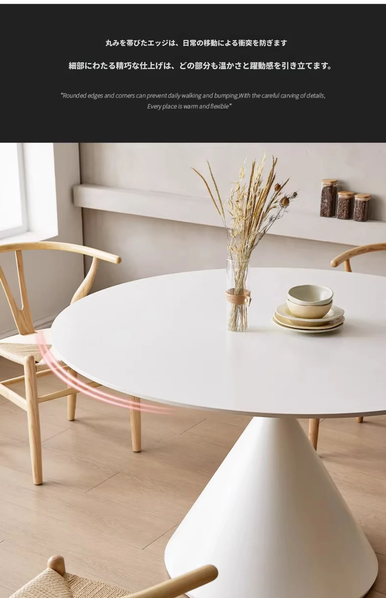 デリフォンのラウンドテーブル - 小型アパートにぴったりな純白色の侘び寂びデザイン。1.1メートルの円形岩板ダイニングテーブルで、スタイリッシュな食事空間を演出!