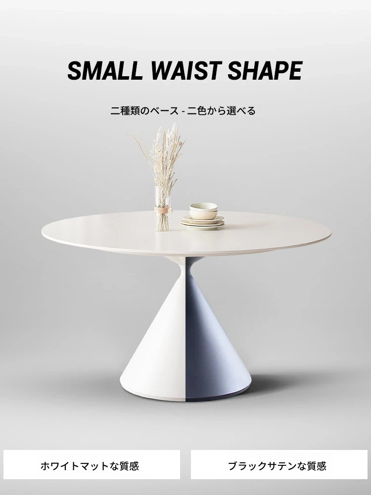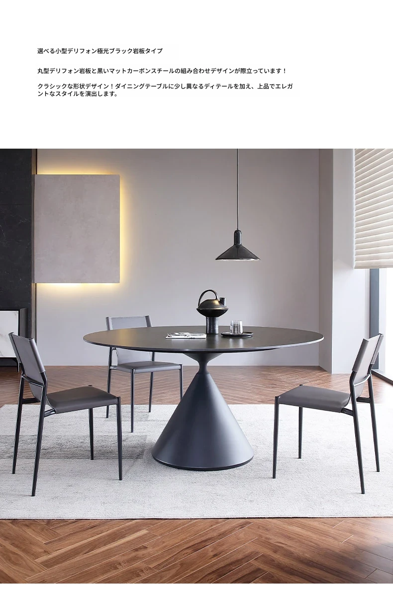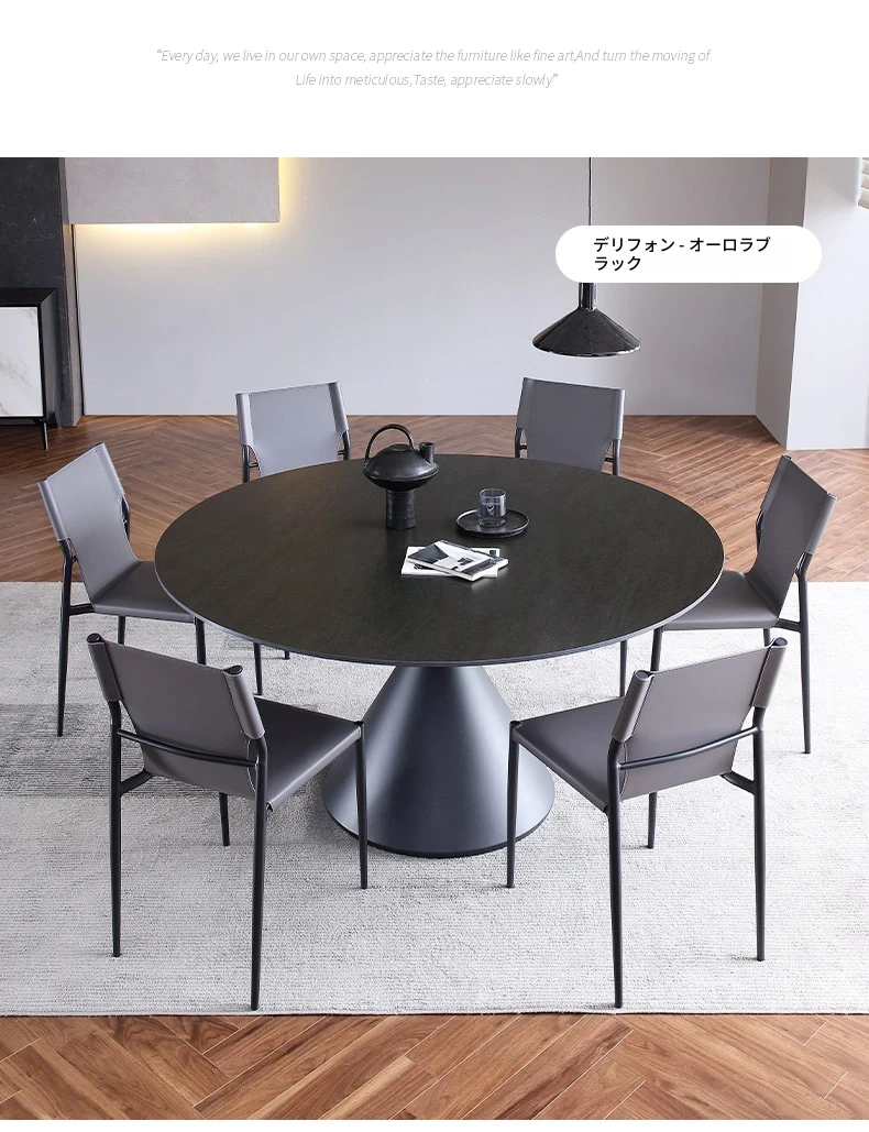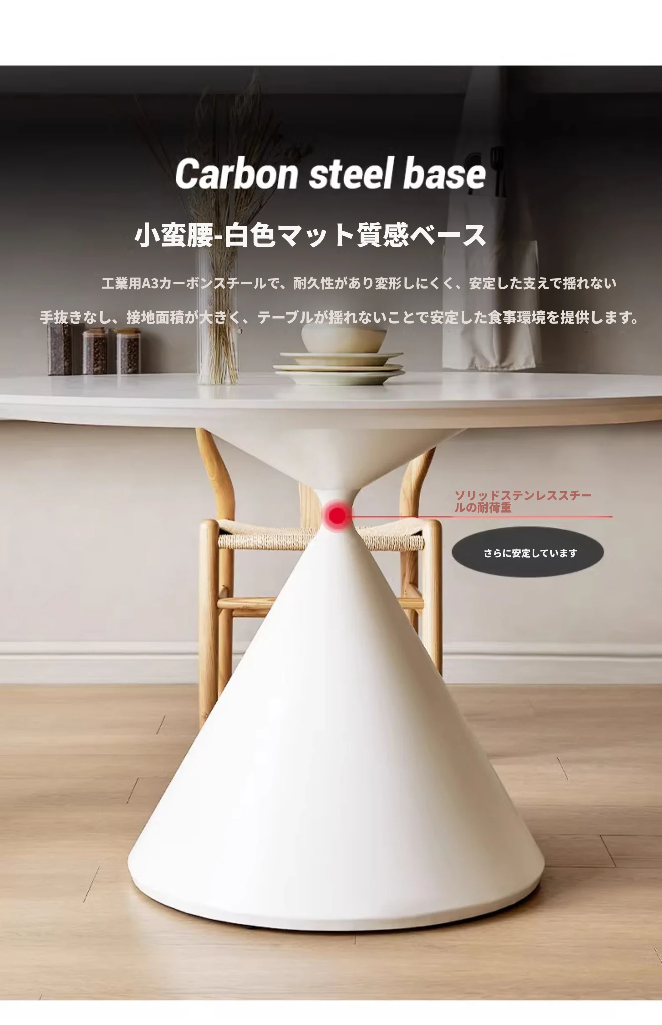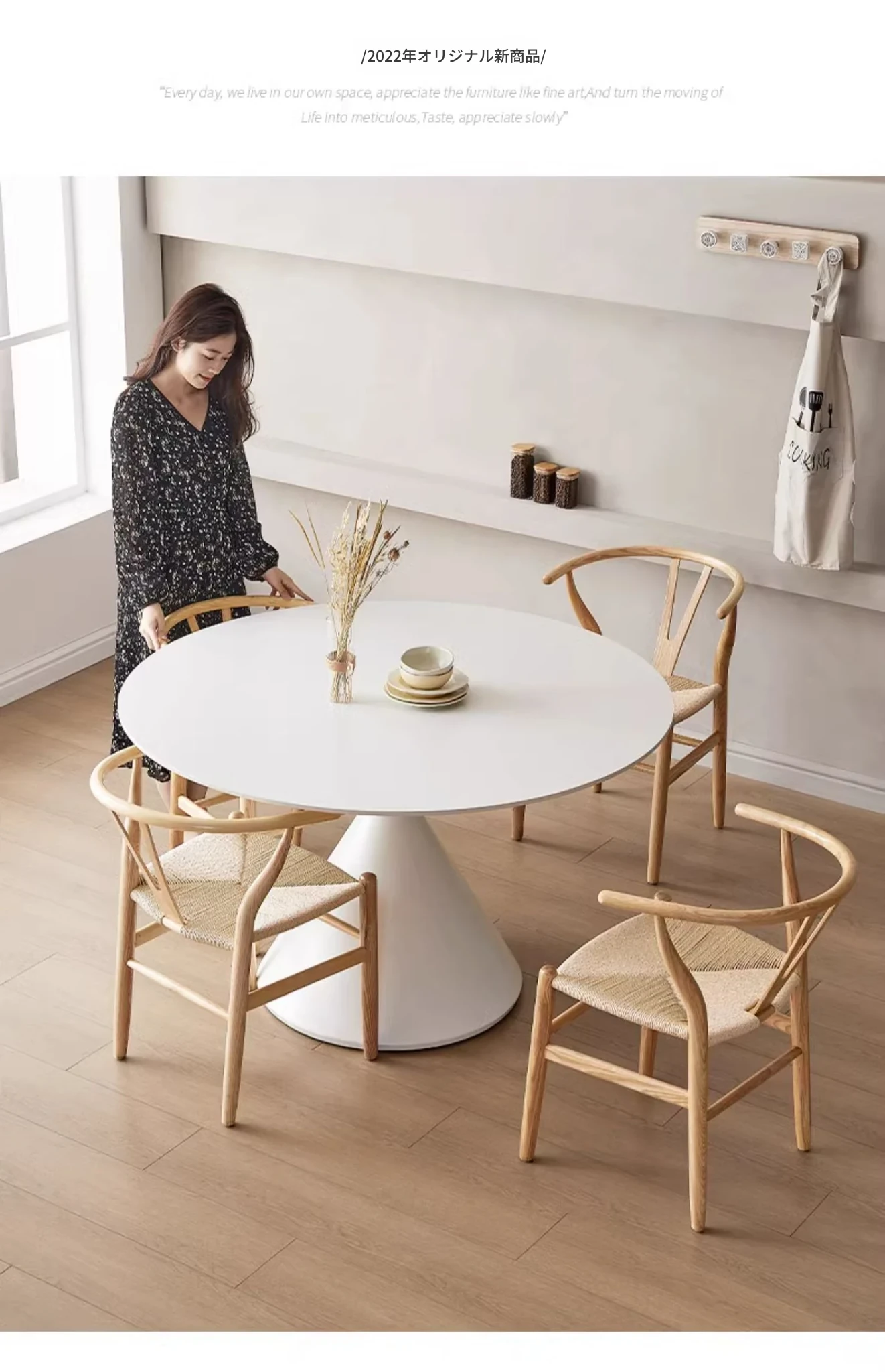 デリフォンのラウンドテーブル - 小型アパートにぴったりな純白色の侘び寂びデザイン。1.1メートルの円形岩板ダイニングテーブルで、スタイリッシュな食事空間を演出!