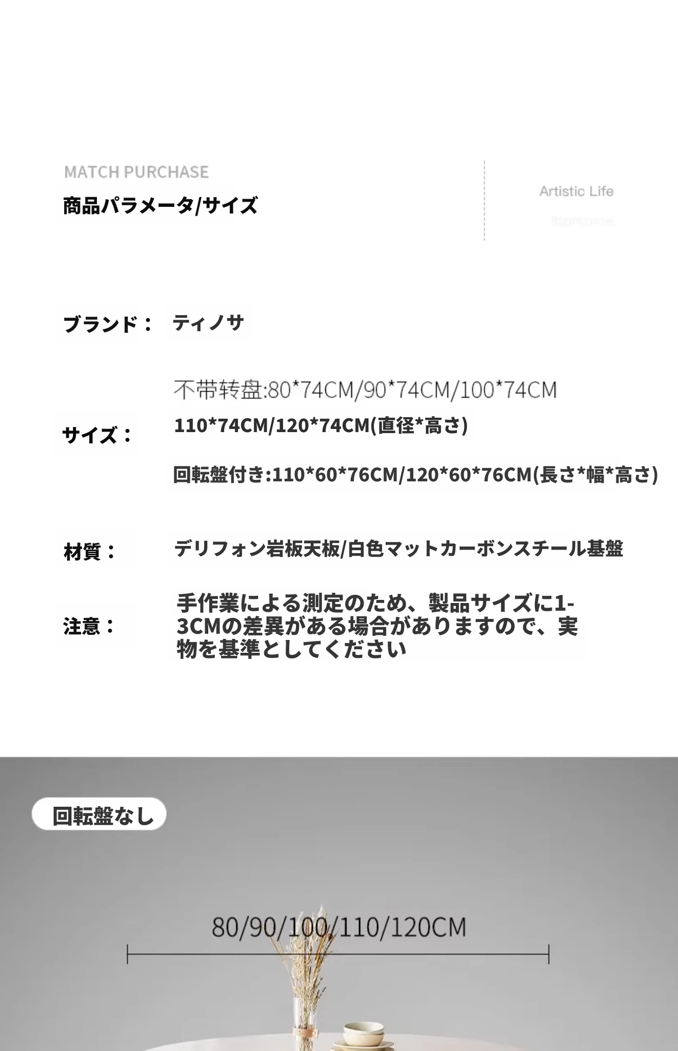 【回転盤なし】110cm岩板円卓【デリフォン】