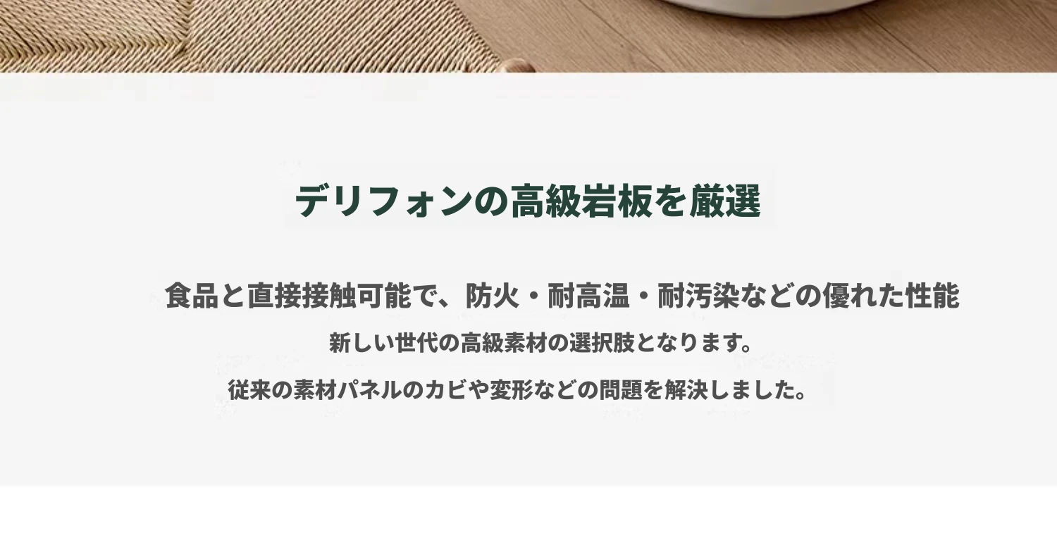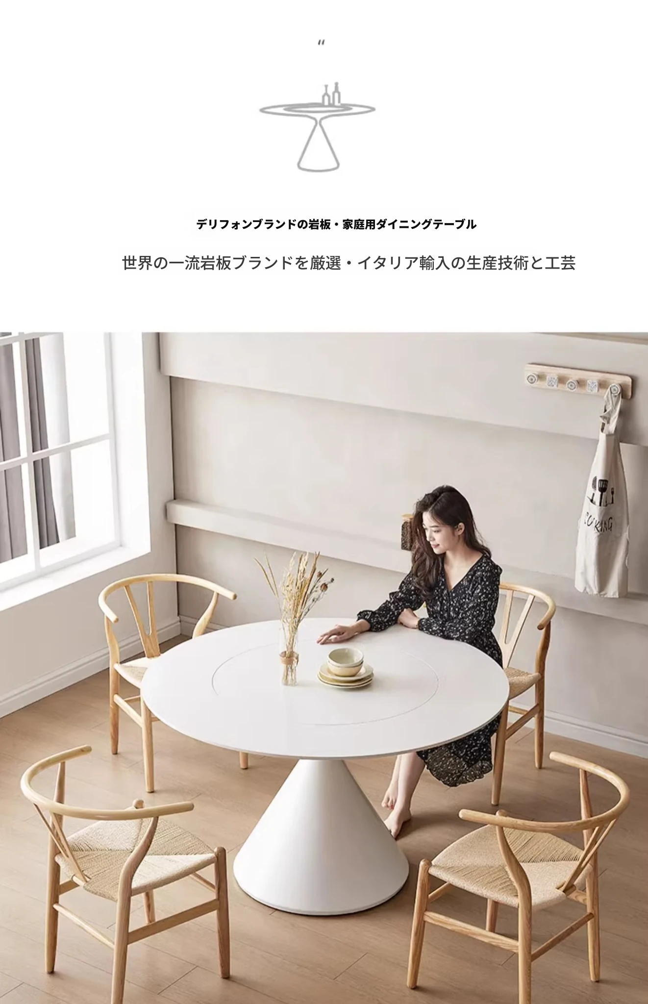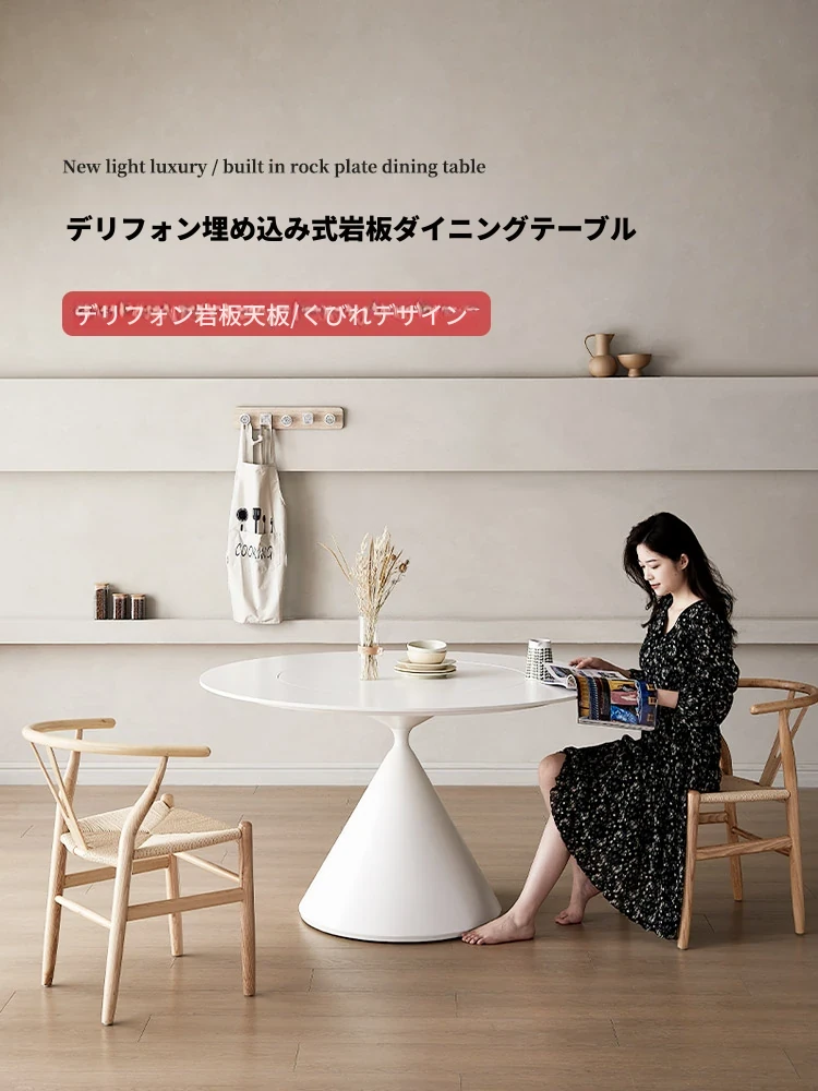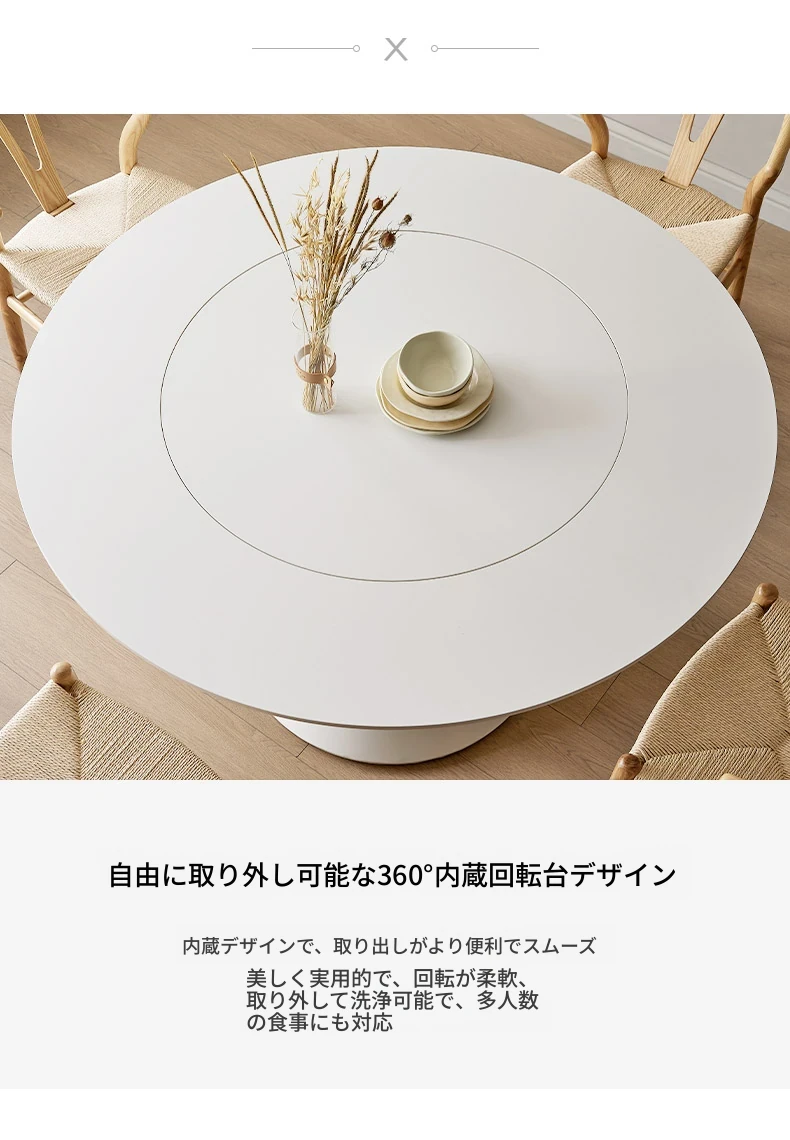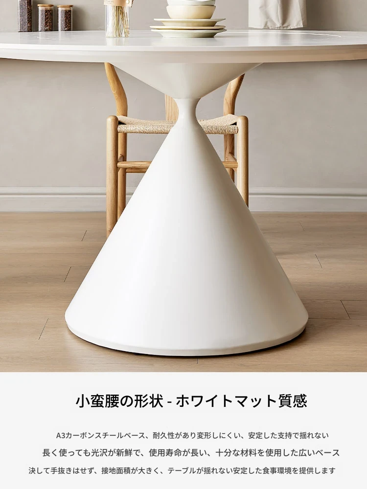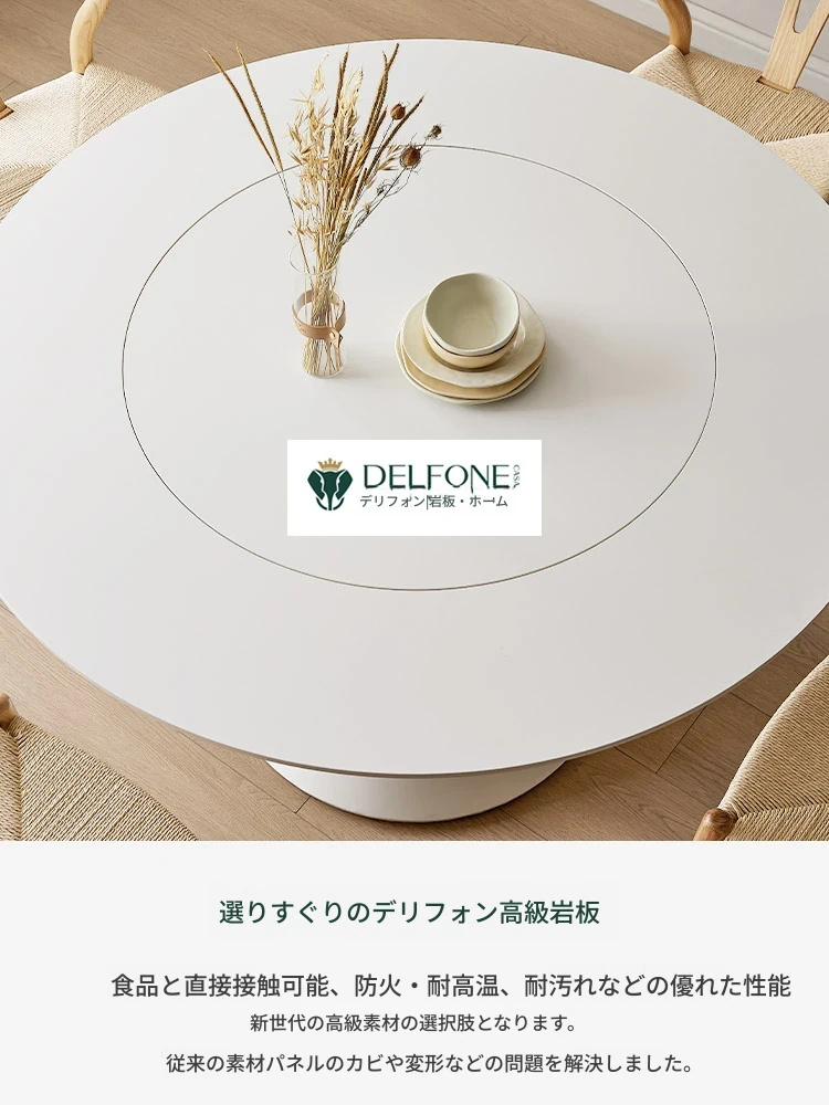 デリフォンのラウンドテーブル - フレンチクリーム仕上げの純白色、人気の小型家用デザイン。おしゃれな岩板使用で、どんなインテリアにもマッチ!お洒落な食卓を演出する、理想的な一品です。
