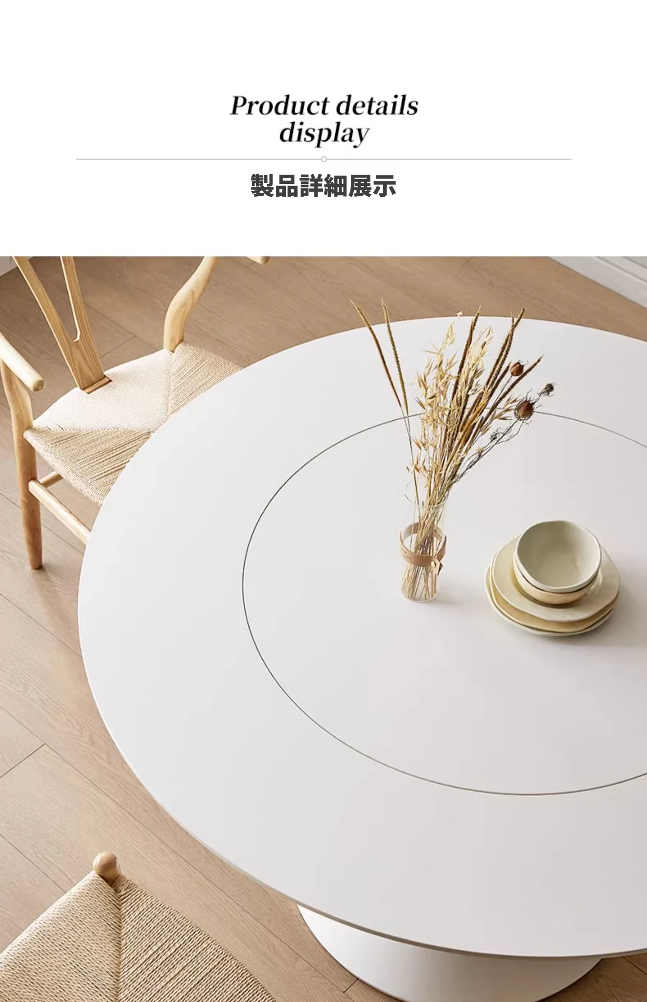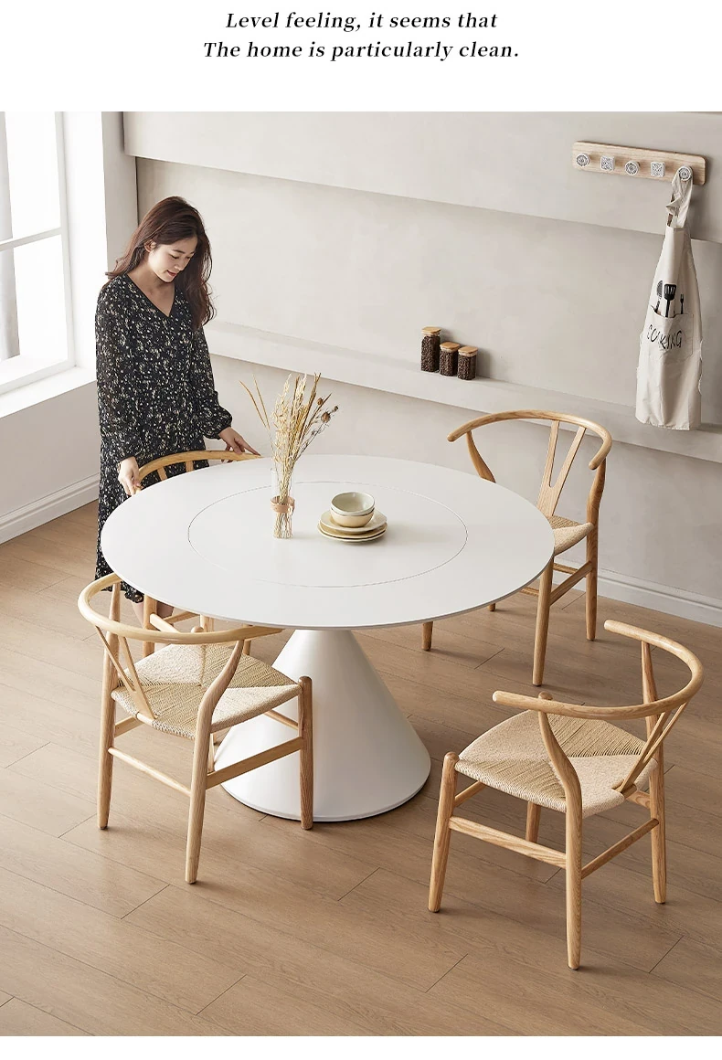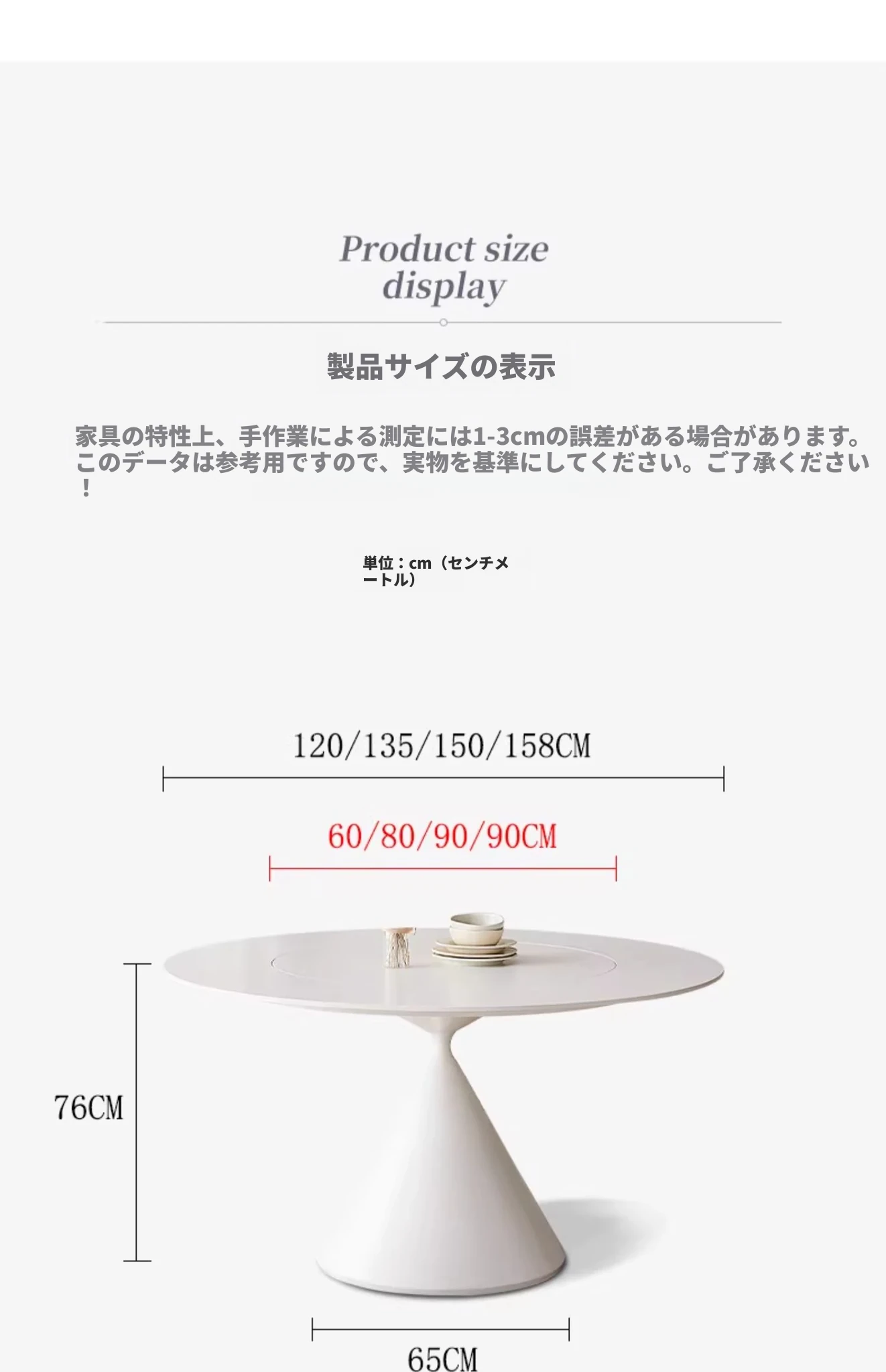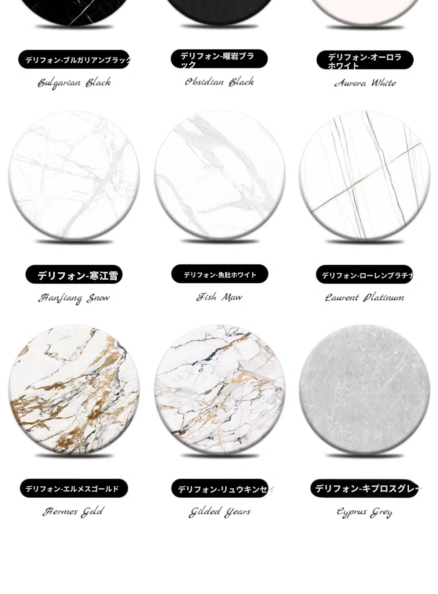 デリフォンのラウンドテーブル - フレンチクリーム仕上げの純白色、人気の小型家用デザイン。おしゃれな岩板使用で、どんなインテリアにもマッチ!お洒落な食卓を演出する、理想的な一品です。