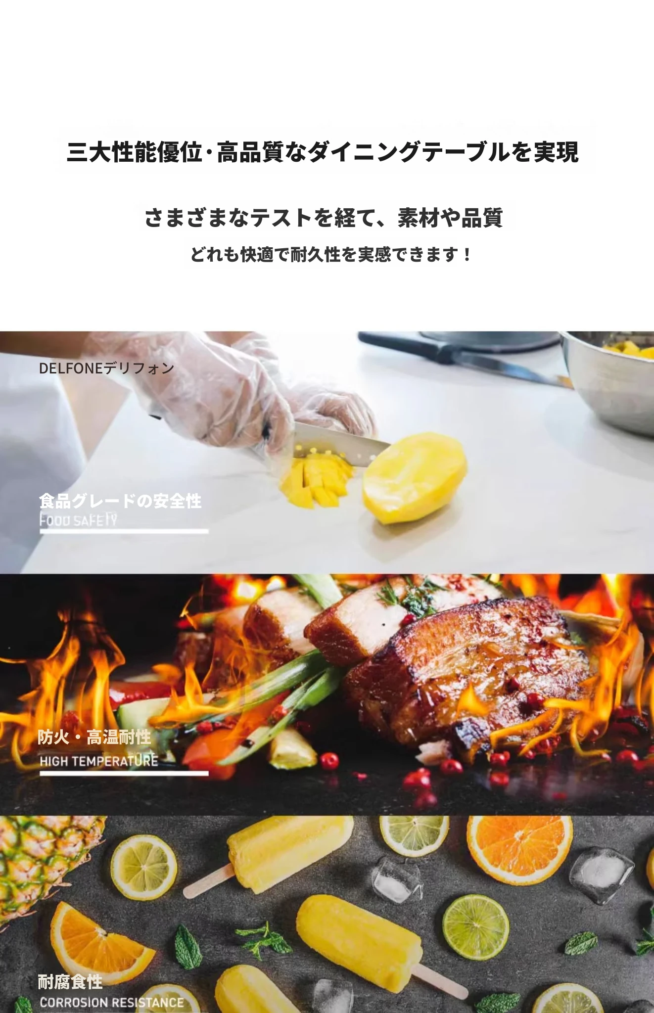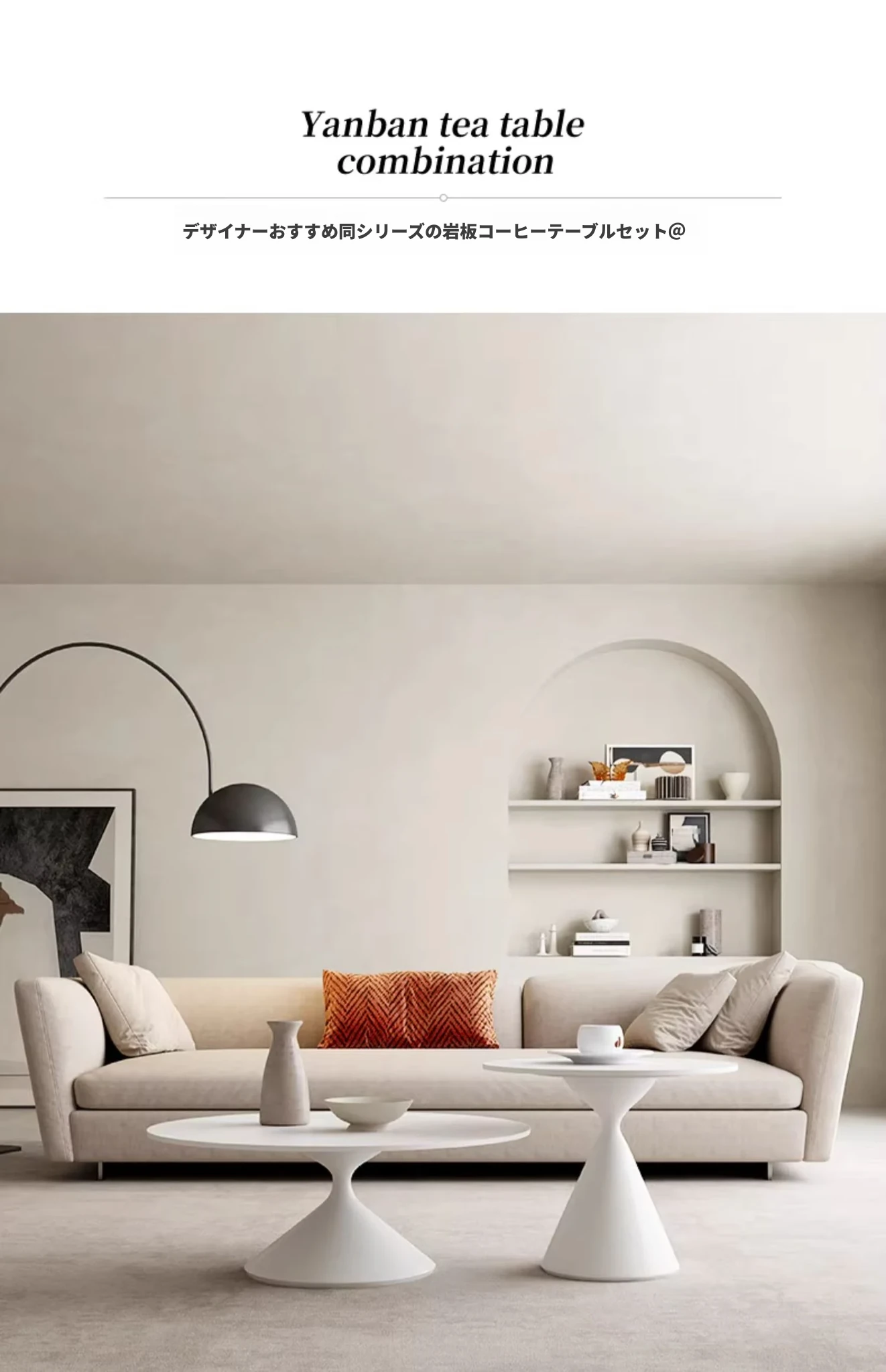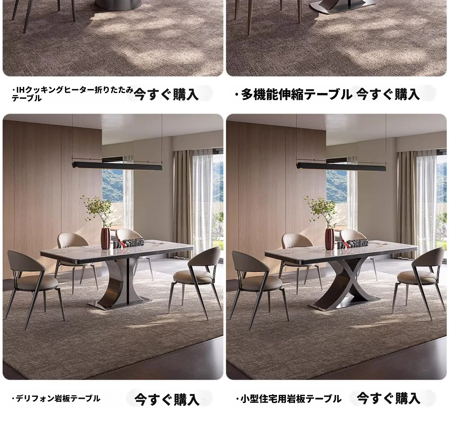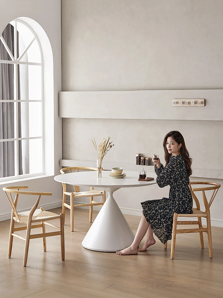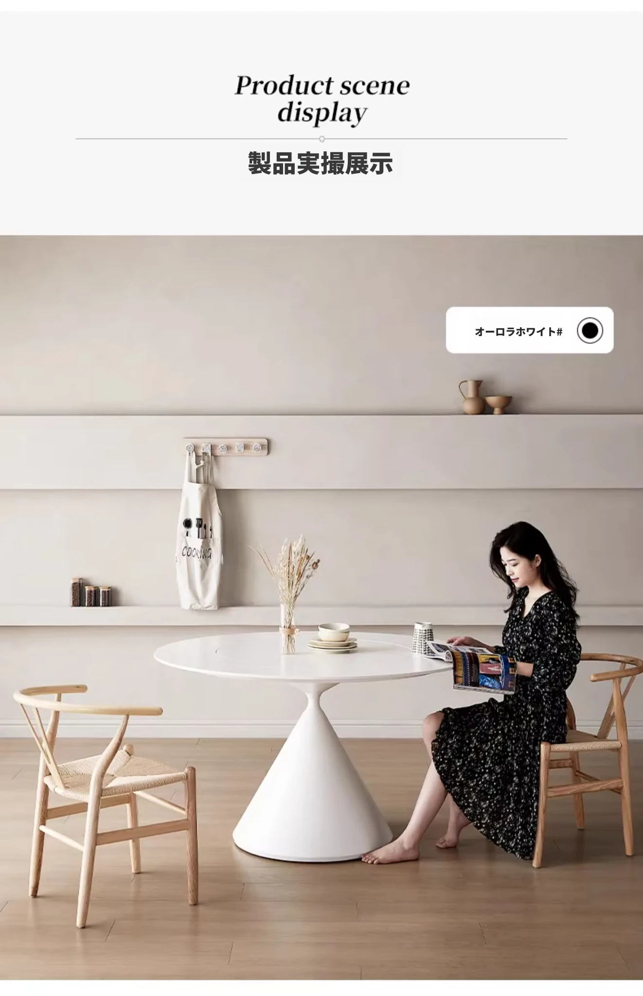 デリフォンのラウンドテーブル - フレンチクリーム仕上げの純白色、人気の小型家用デザイン。おしゃれな岩板使用で、どんなインテリアにもマッチ!お洒落な食卓を演出する、理想的な一品です。
