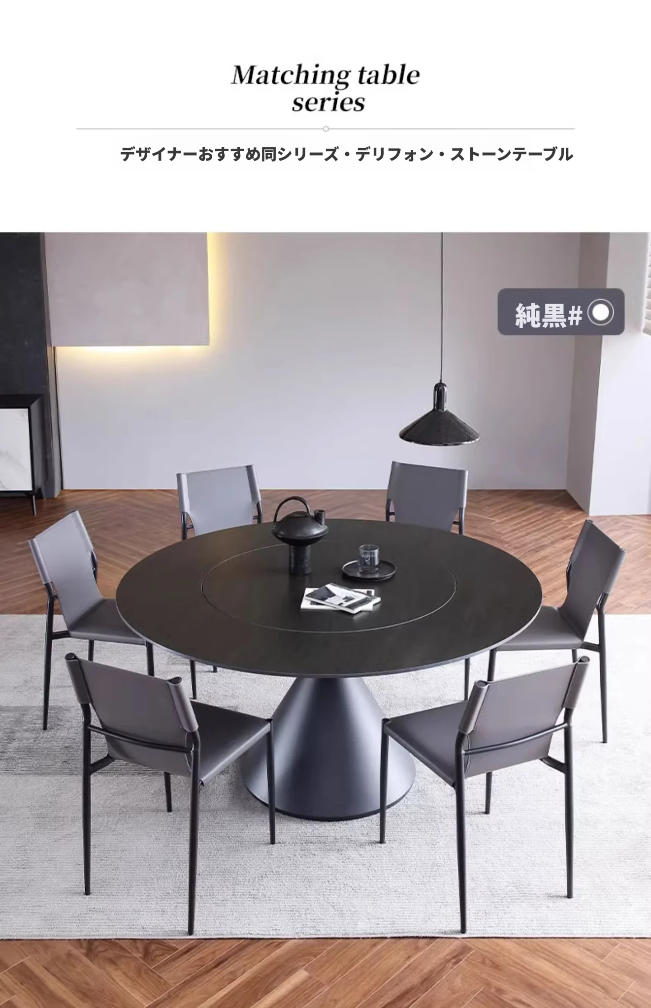 【デリフォン】1.2メートル岩板円卓【内蔵回転盤】