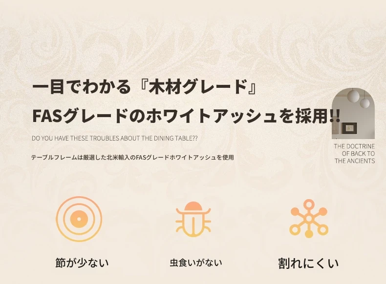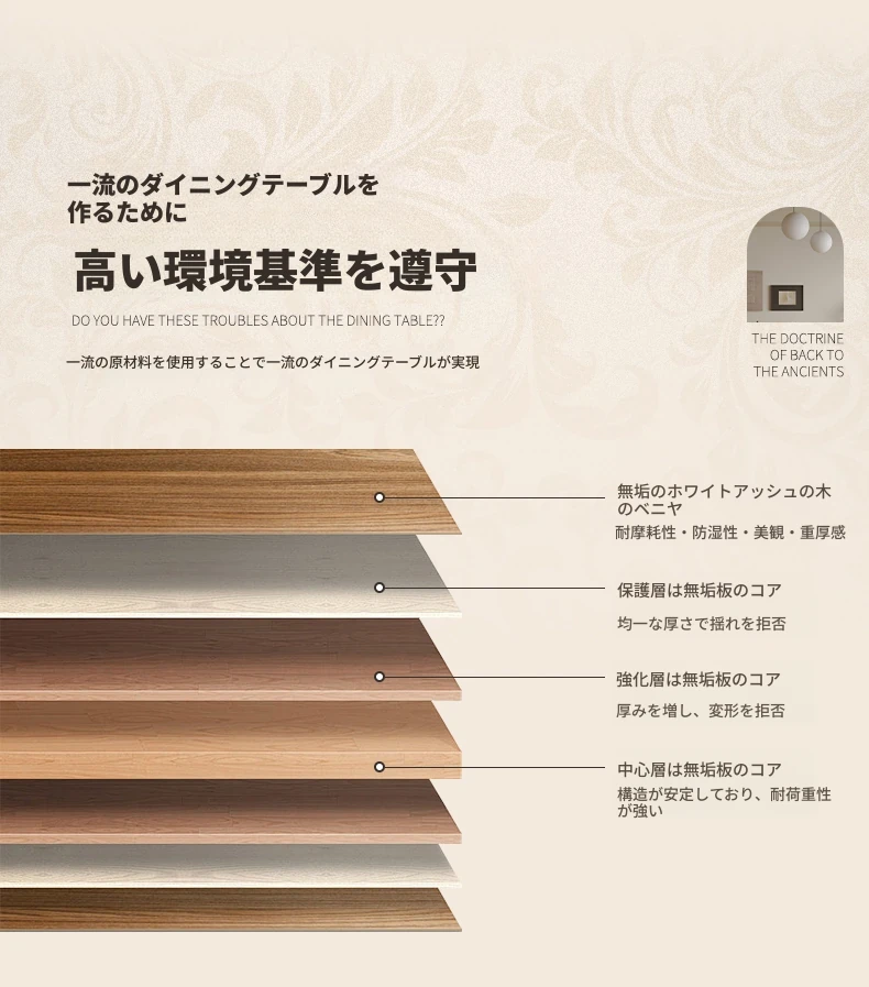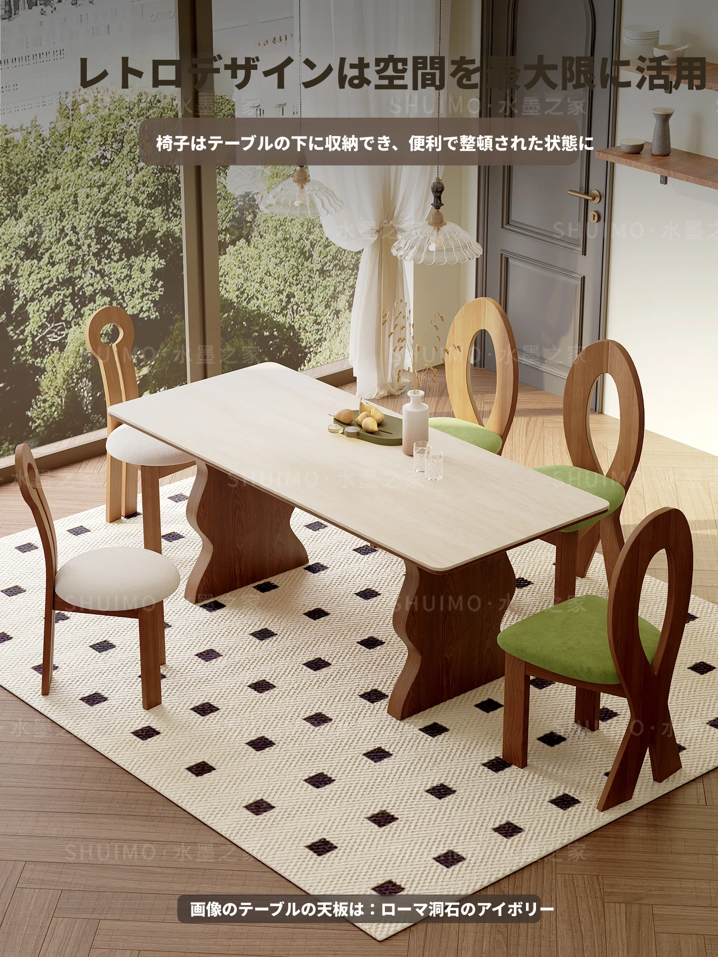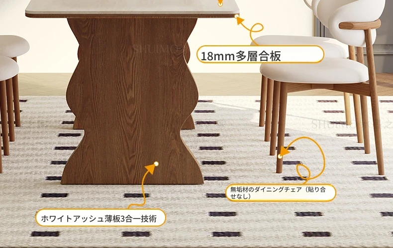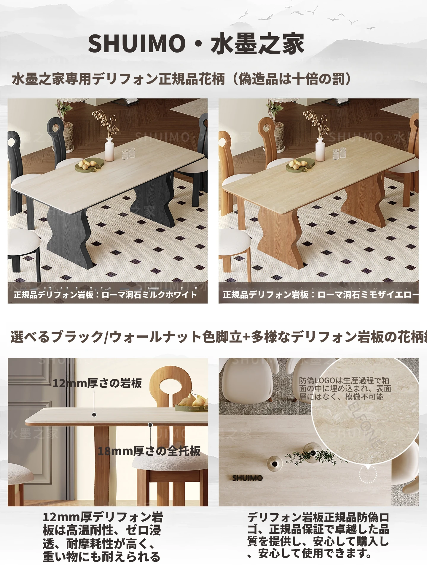 1.8メートル白樺材無垢材ダイニングテーブル【高級デリフォン洞石優等板】