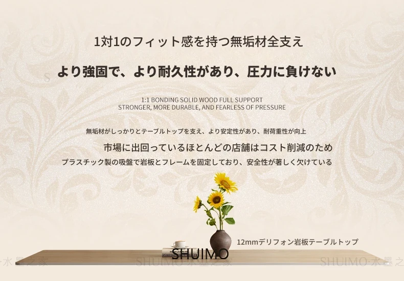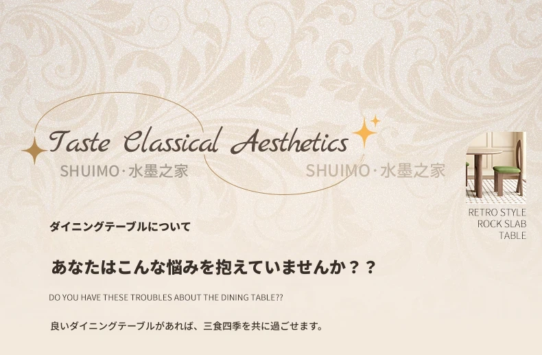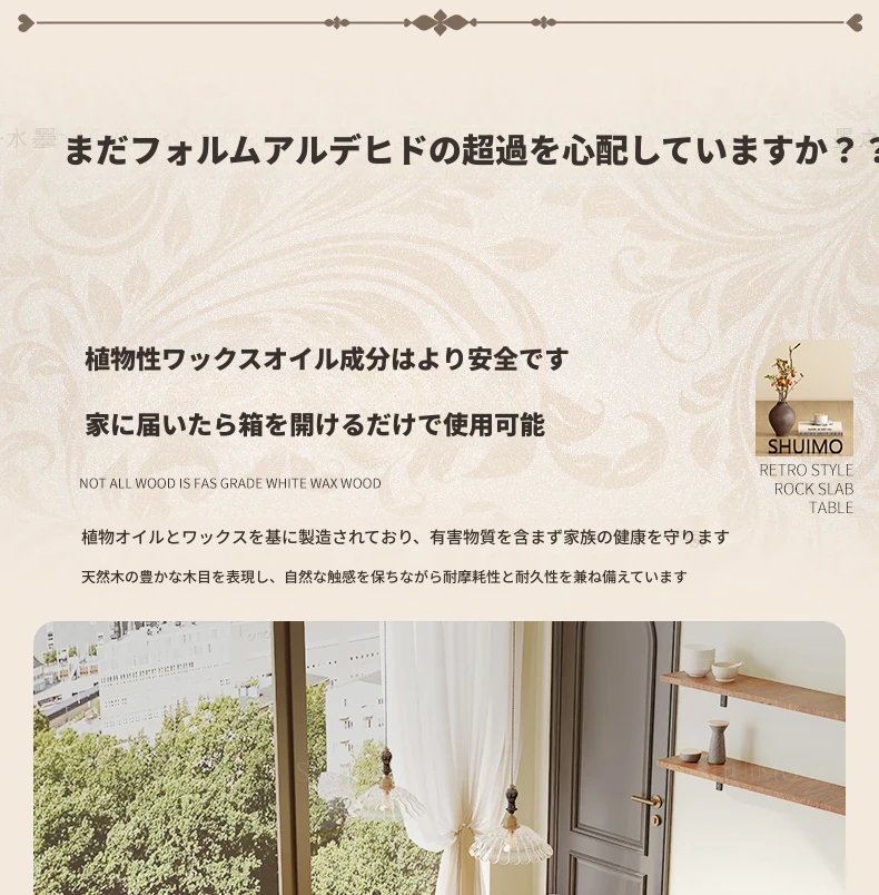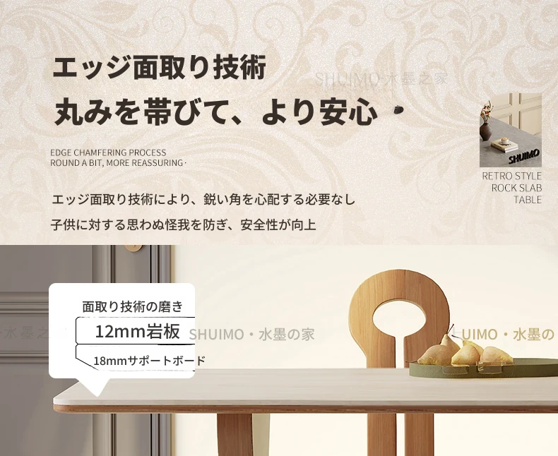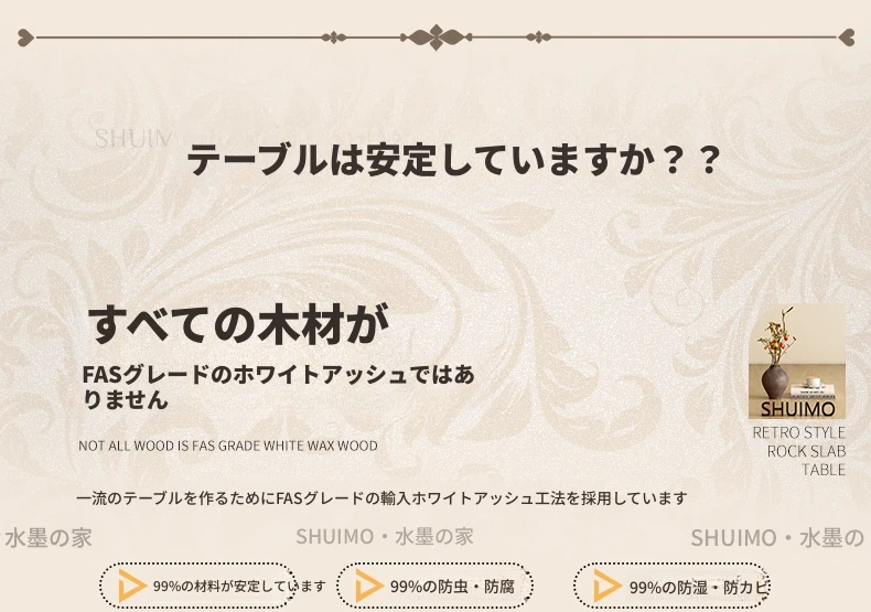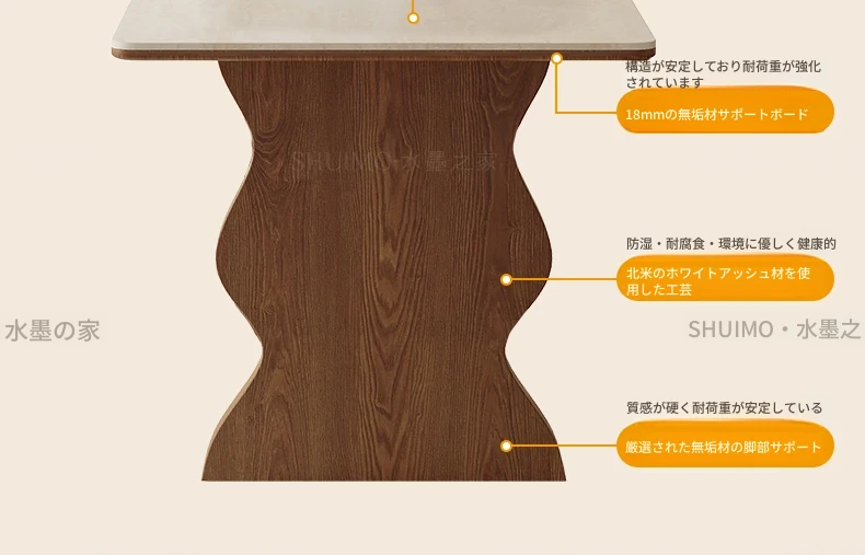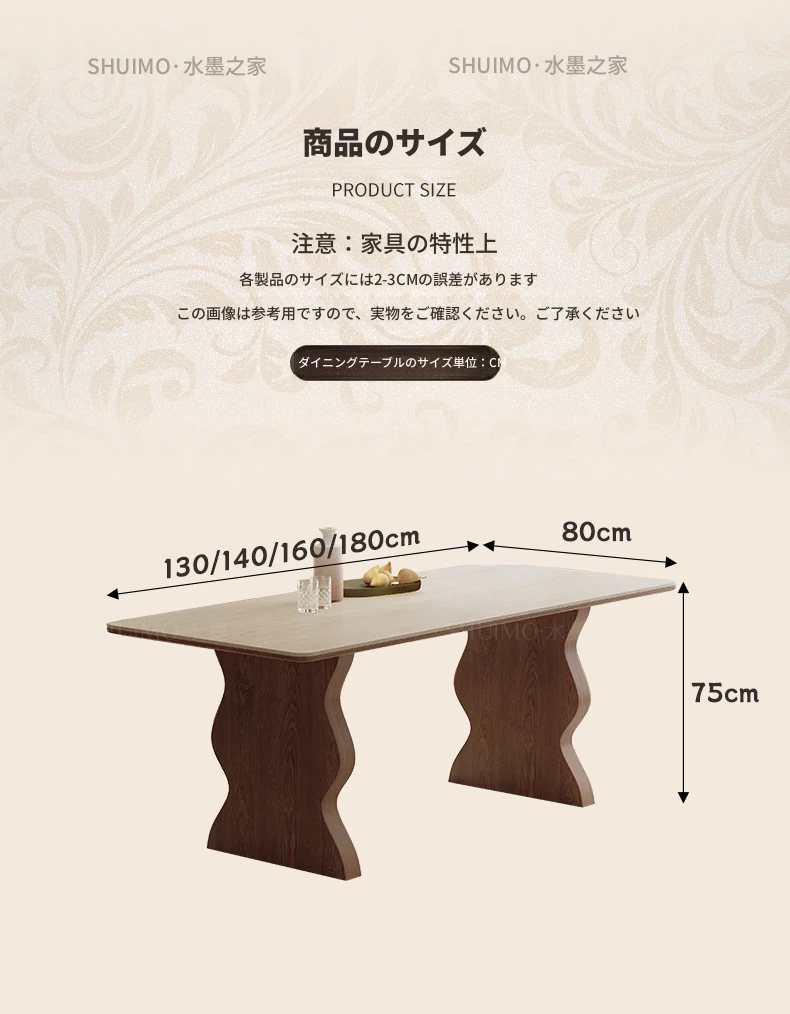 1.8メートル白樺材無垢材ダイニングテーブル【高級デリフォン洞石優等板】