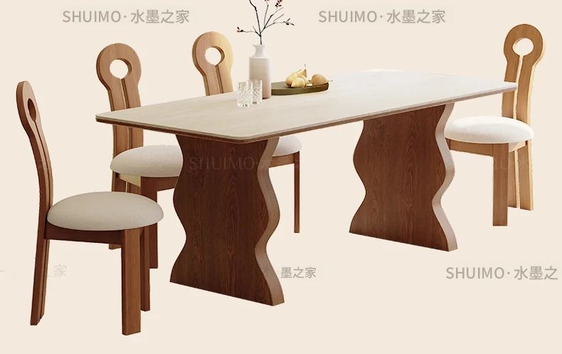 1.6メートル白樺材無垢材ダイニングテーブル【高級デリフォン洞石優等板】