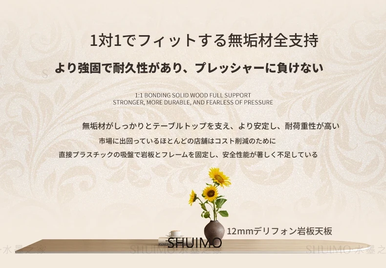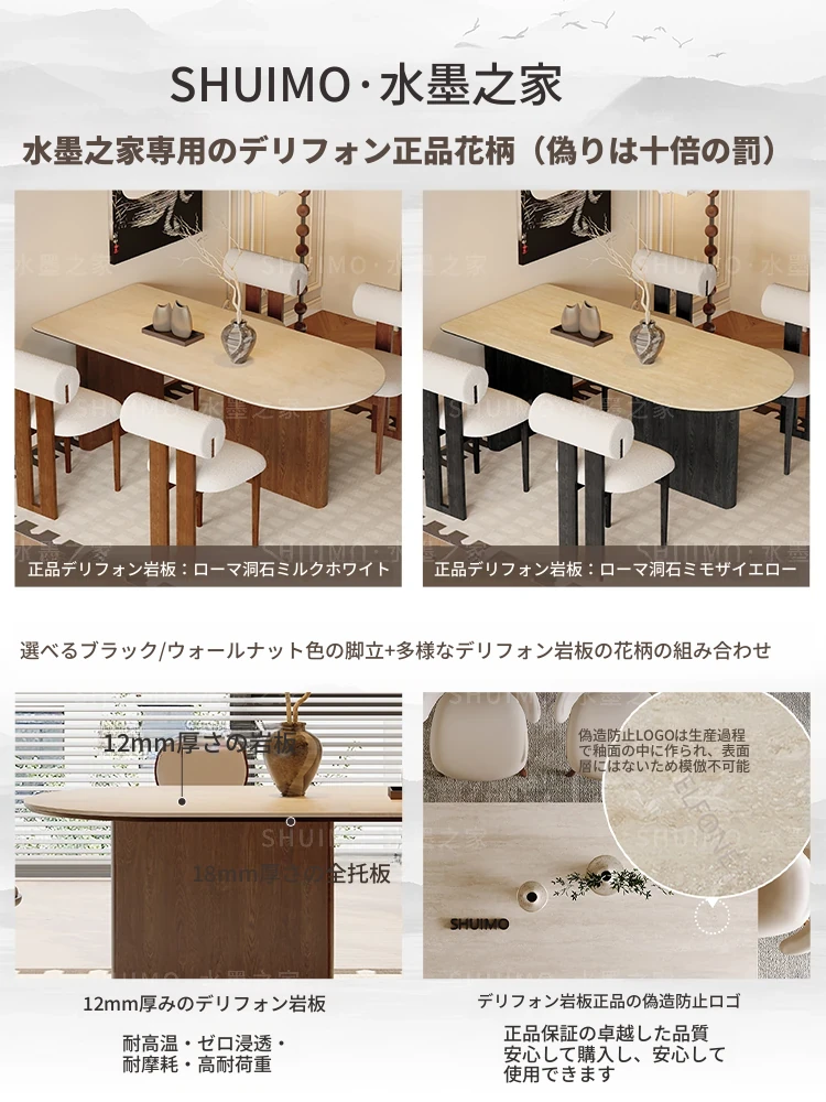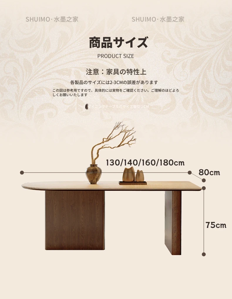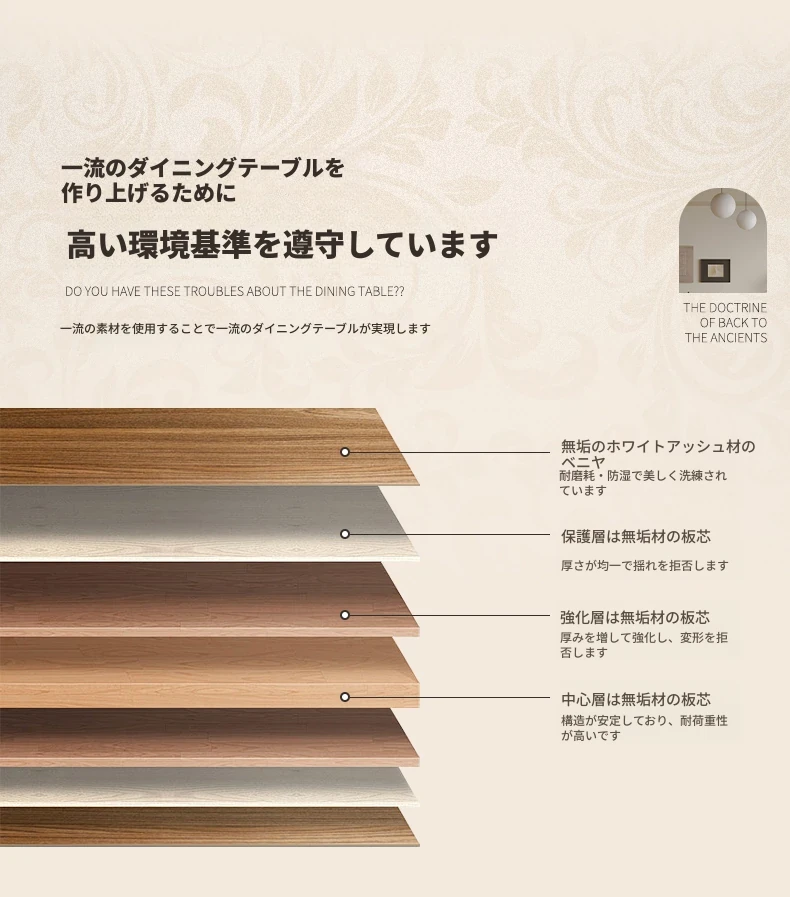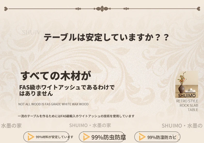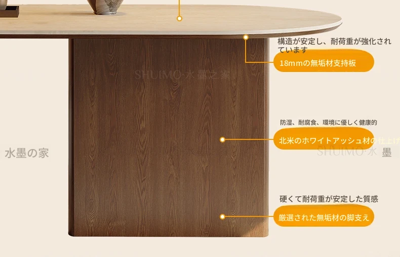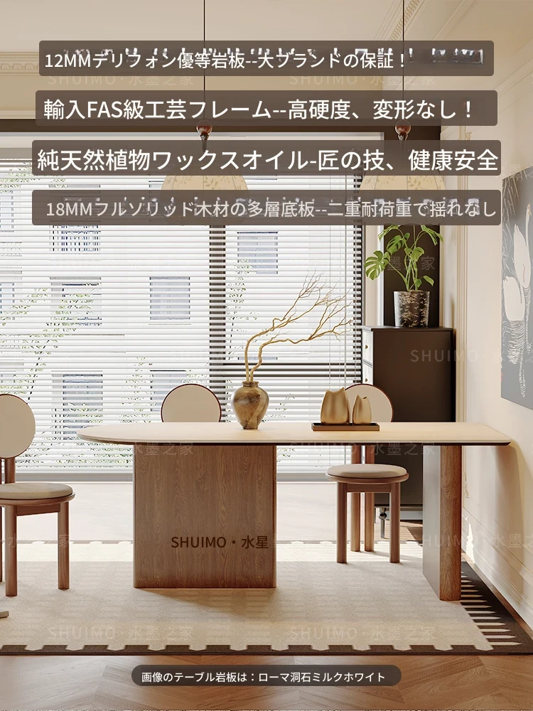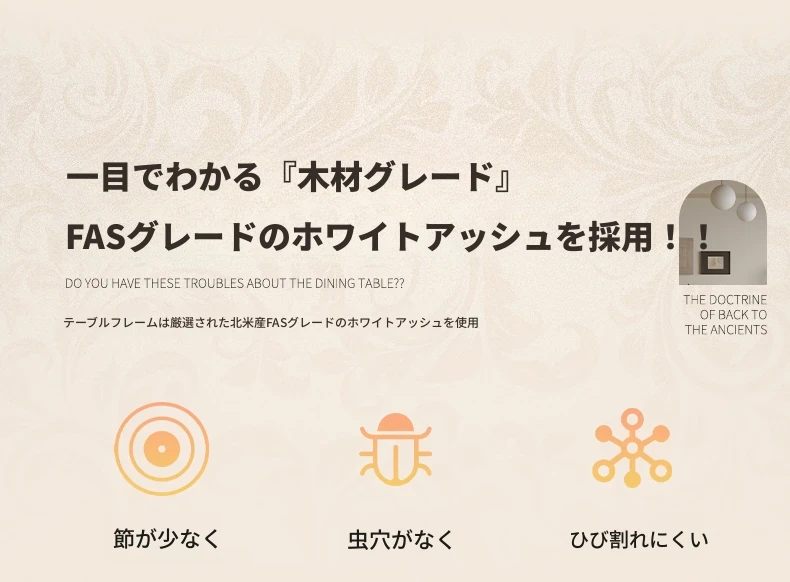 1.8メートルのホワイトアッシュ無垢材ダイニングテーブル【高級デリフォン洞石優等板】
