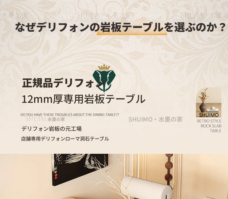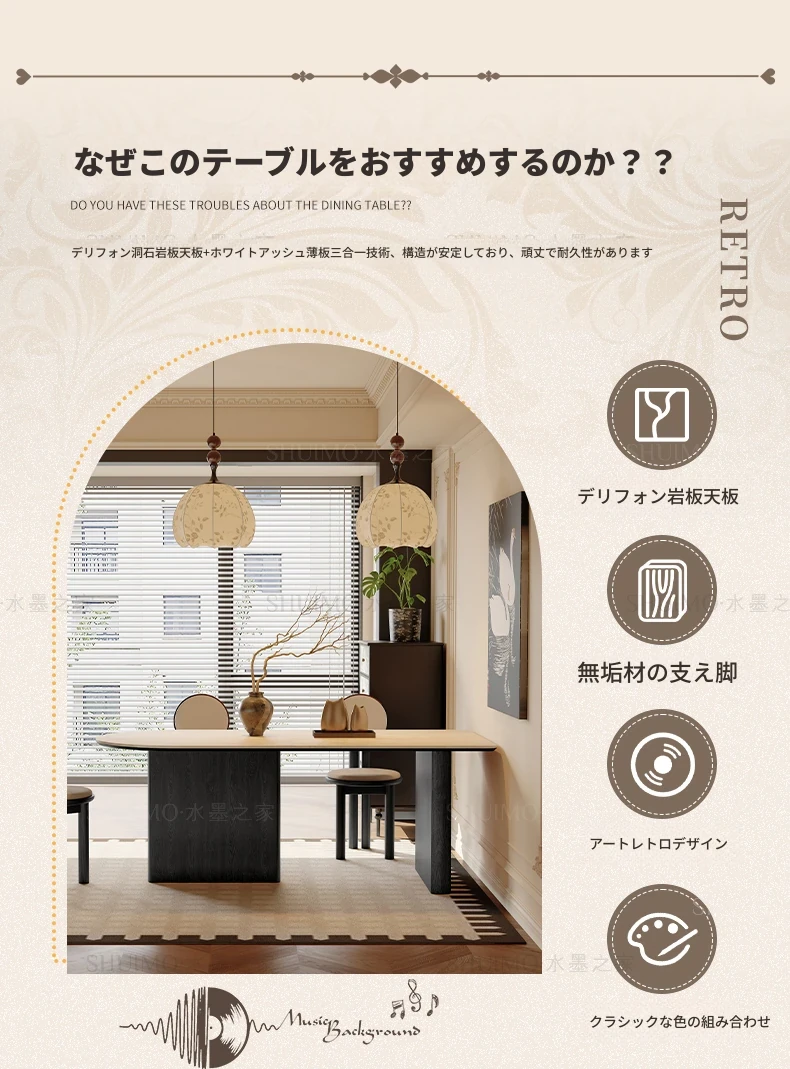 デリフォン岩板ダイニングテーブル - フランス風のエレガントなデザイン、家庭用小型スペースに最適なクリーム色の半円形長方形テーブル。リビングルームにぴったりの軽やかなラグジュアリー。