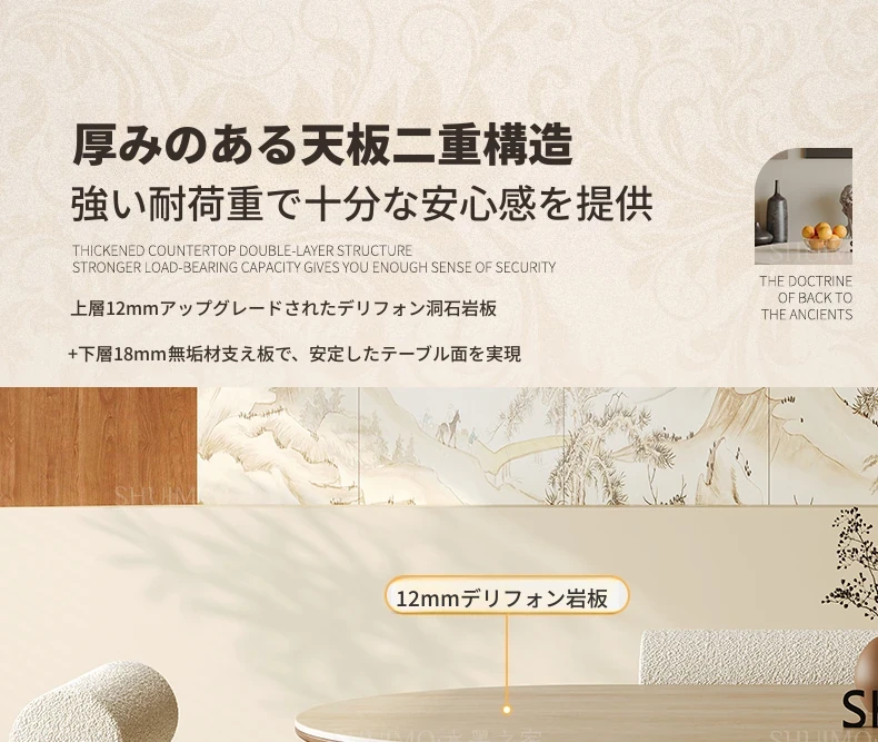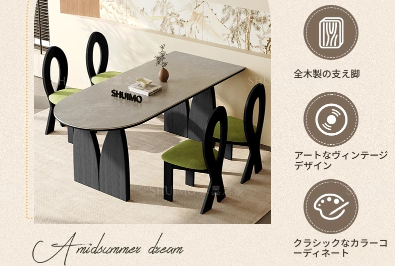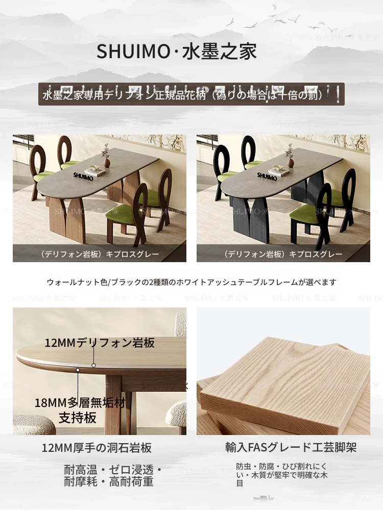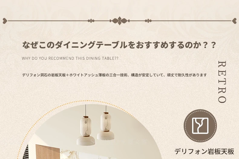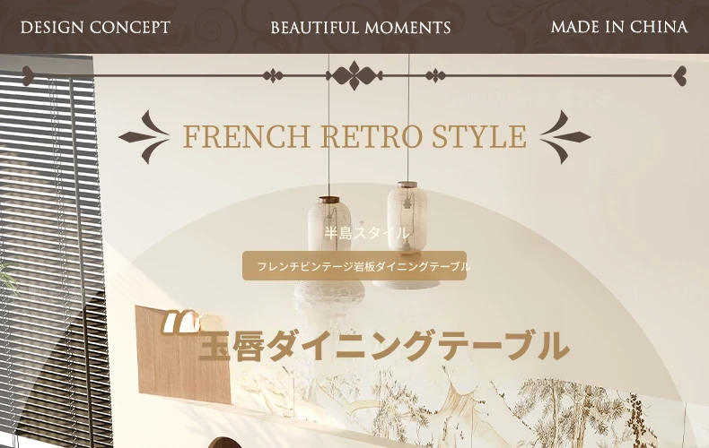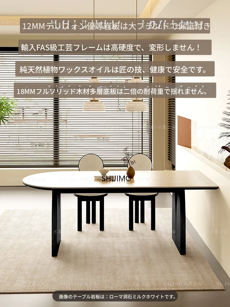 デリフォン岩板ダイニングテーブル - フランス風のエレガンス、家庭用小型軽奢スタイル!クリーミーなオーバル&長方形デザインで、リビングにぴったりの食卓!