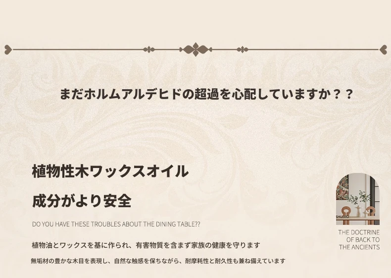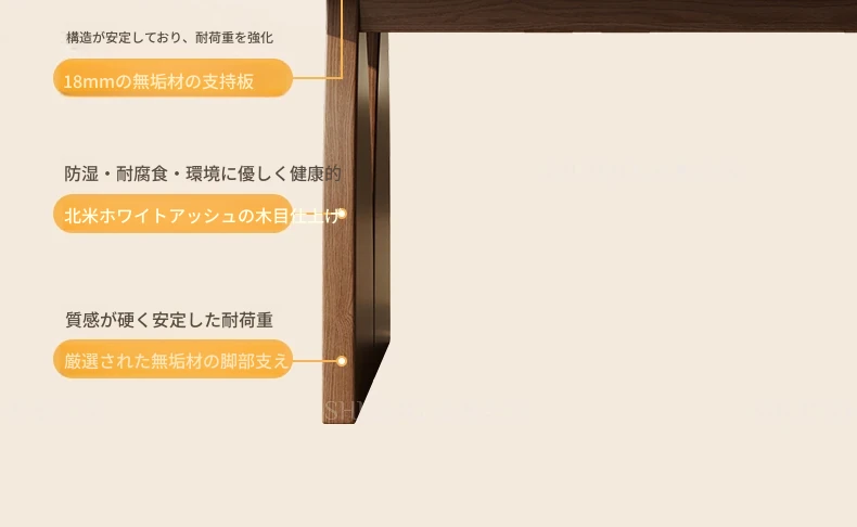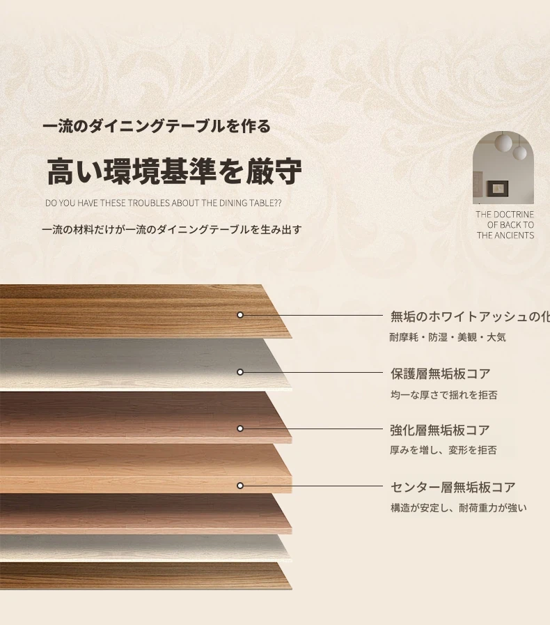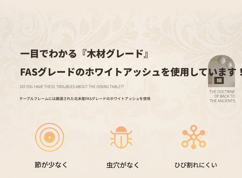 1.8メートルのホワイトアッシュ無垢材ダイニングテーブル【高級デリフォン洞石優等板】