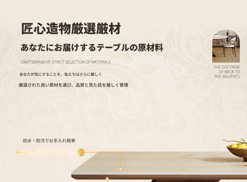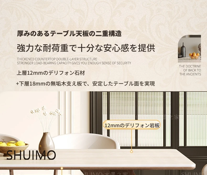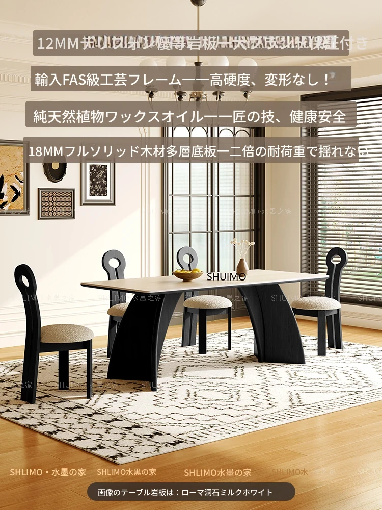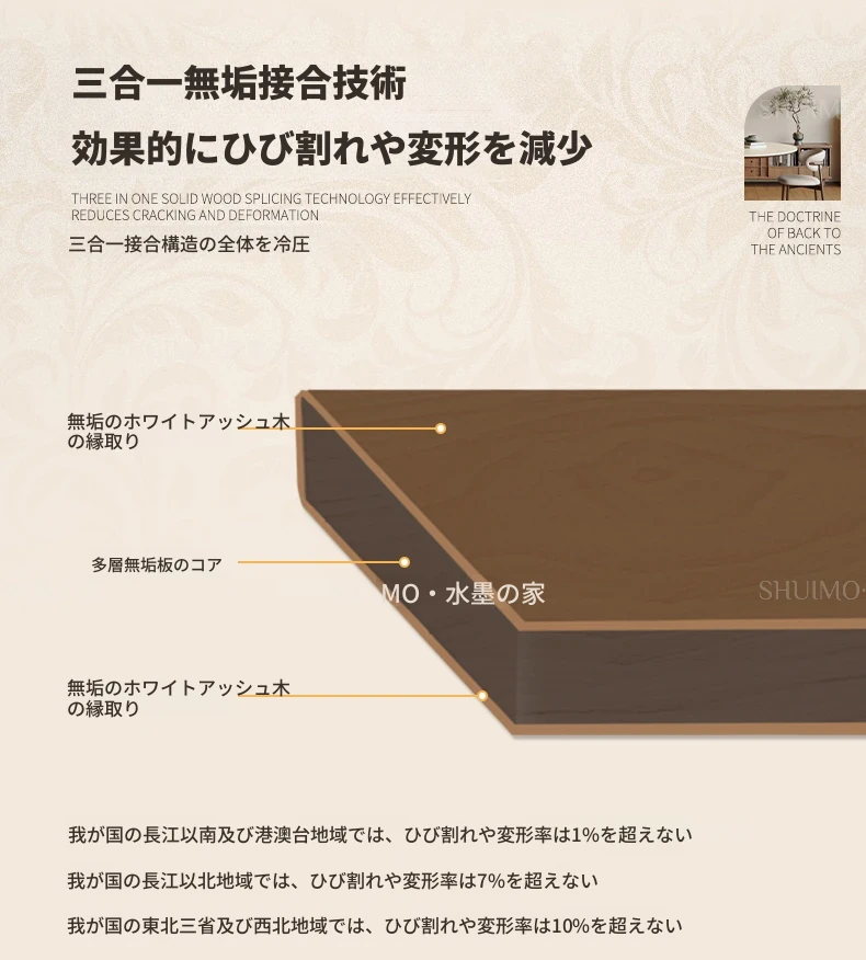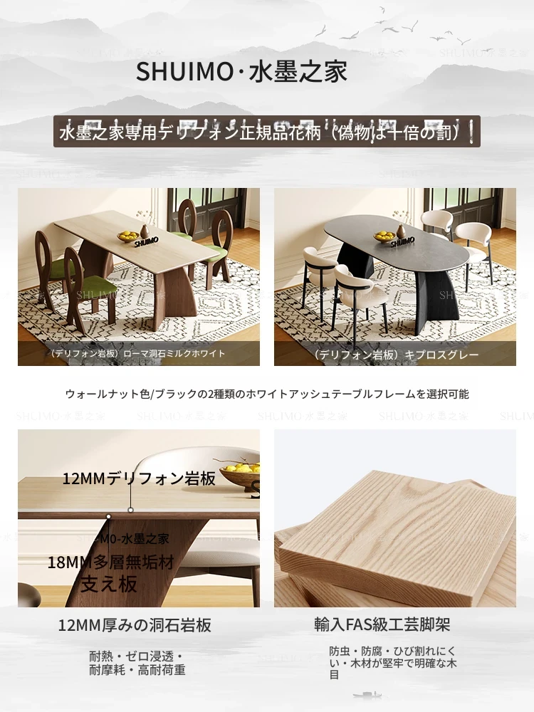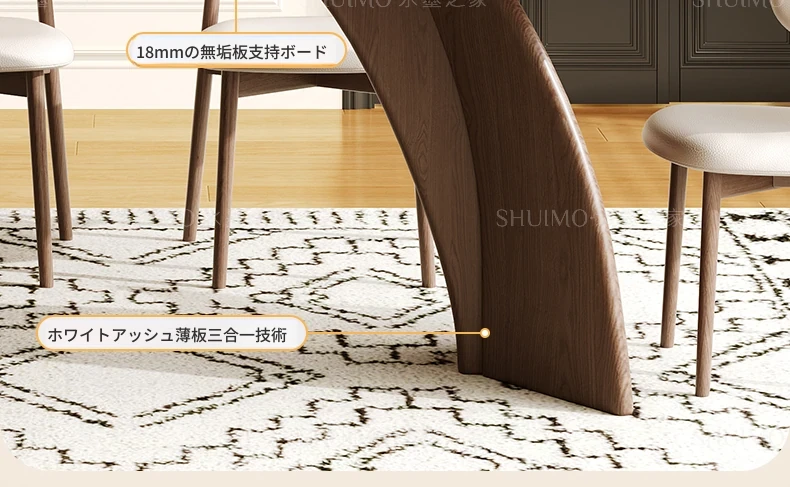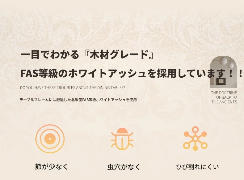 1.8メートルホワイトアッシュ無垢材ダイニングテーブル【高級デリフォン洞石優等板】
