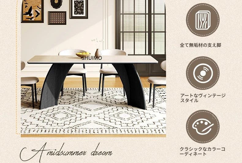 2.2メートルホワイトアッシュ無垢材ダイニングテーブル【高級デリフォン洞石優等板】