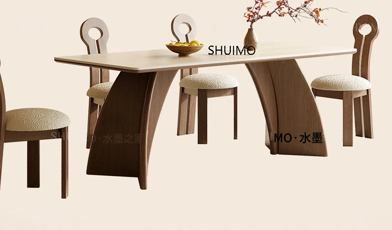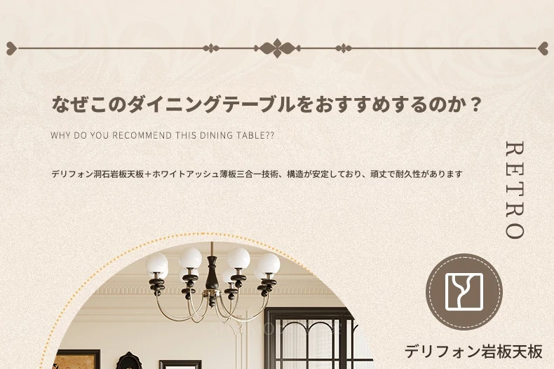デリフォン・ラグジュアリー・オーバルダイニングテーブル - 洗練されたフレンチスタイルの家用小型テーブル。クリーミーな色合いで、リビングルームにぴったりのエレガントな長方形デザイン。小スペースでも大活躍!