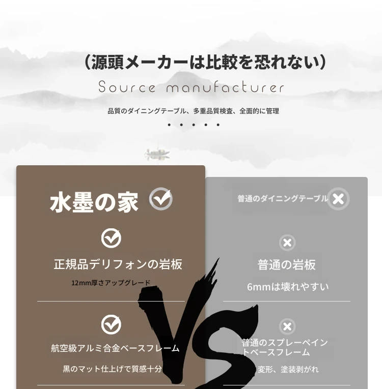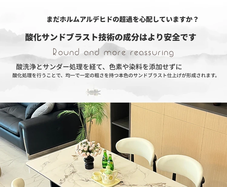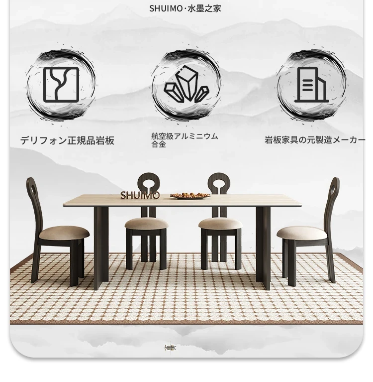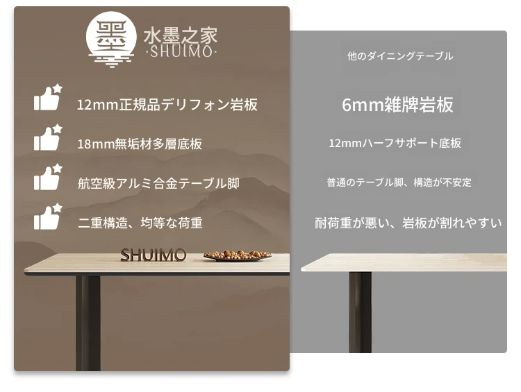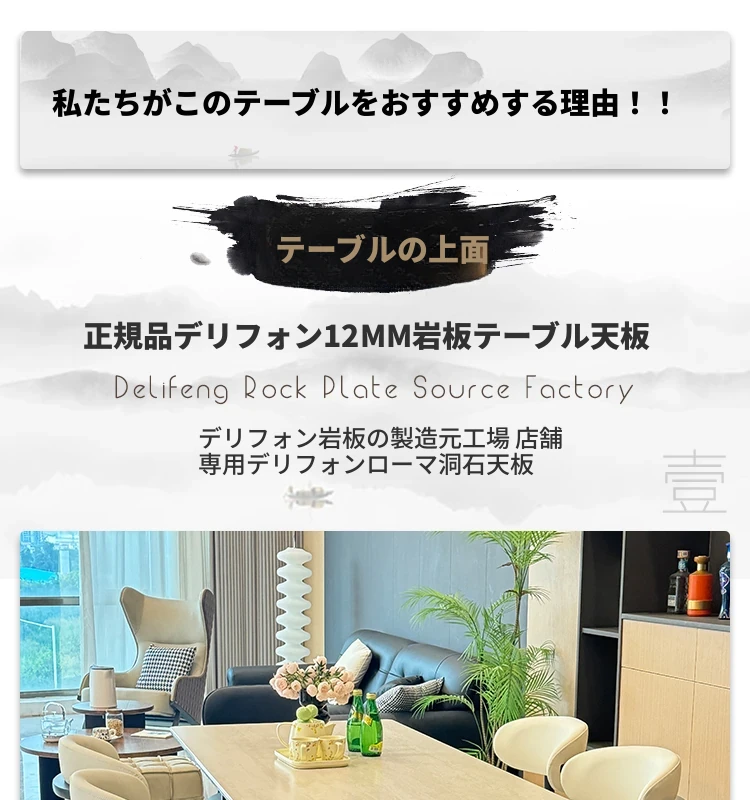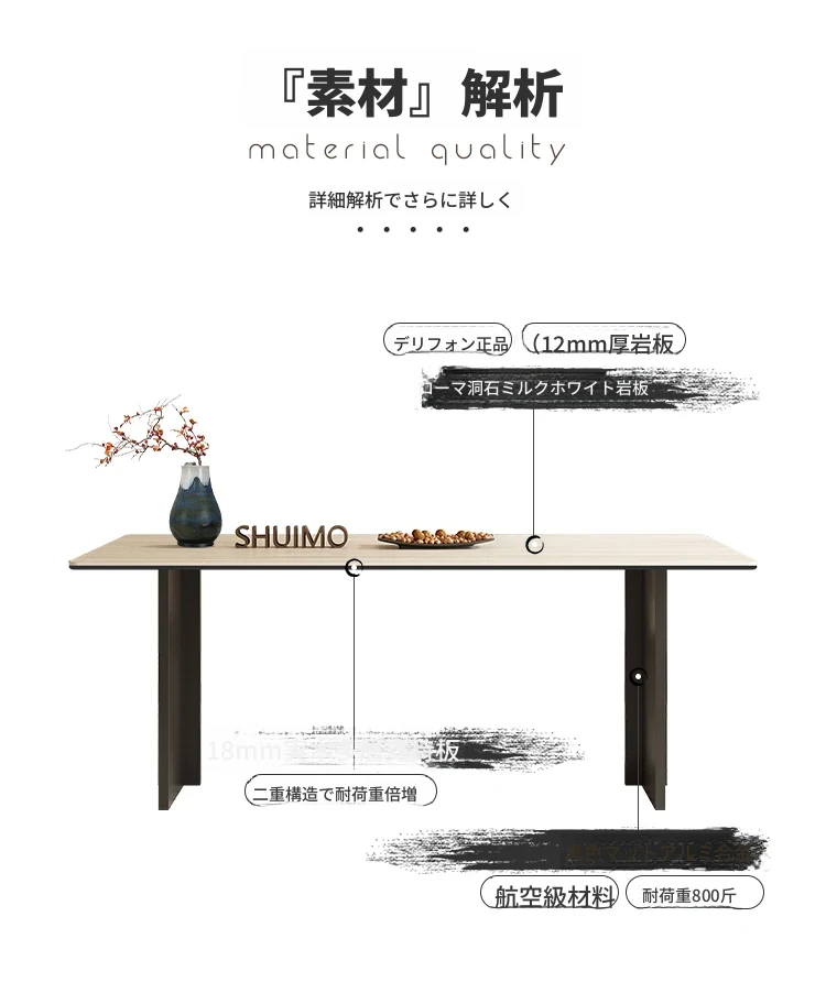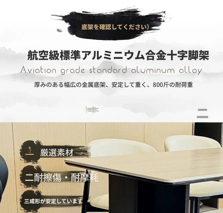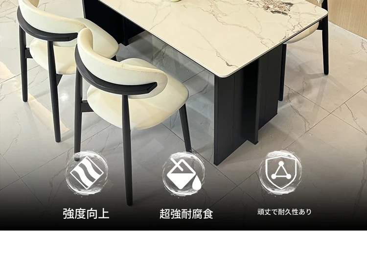 1.8メートル航空アルミ合金ダイニングテーブル【高級デリフォン洞石優等板】