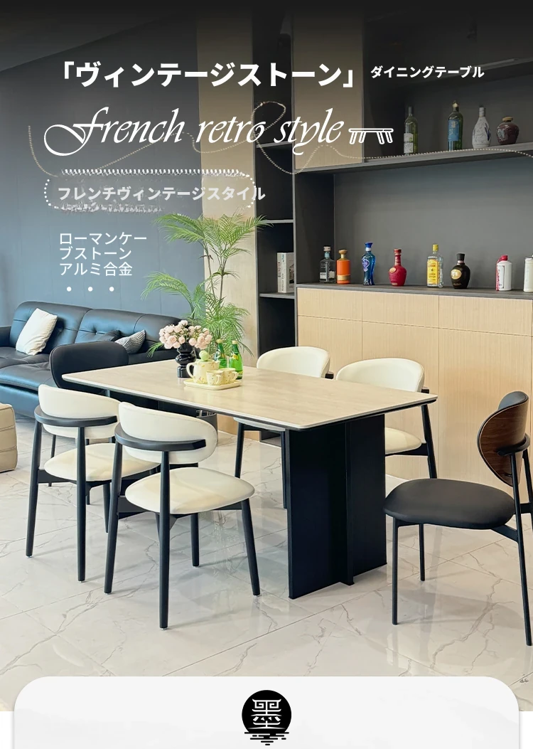デリフォン ラテ ストーン テーブル アルミ合金 ブラック モダンシンプルな 食卓 - 小さなお部屋に最適!スタイリッシュなデザインで、リビングやダイニングにぴったり。快適な食事空間を演出します。