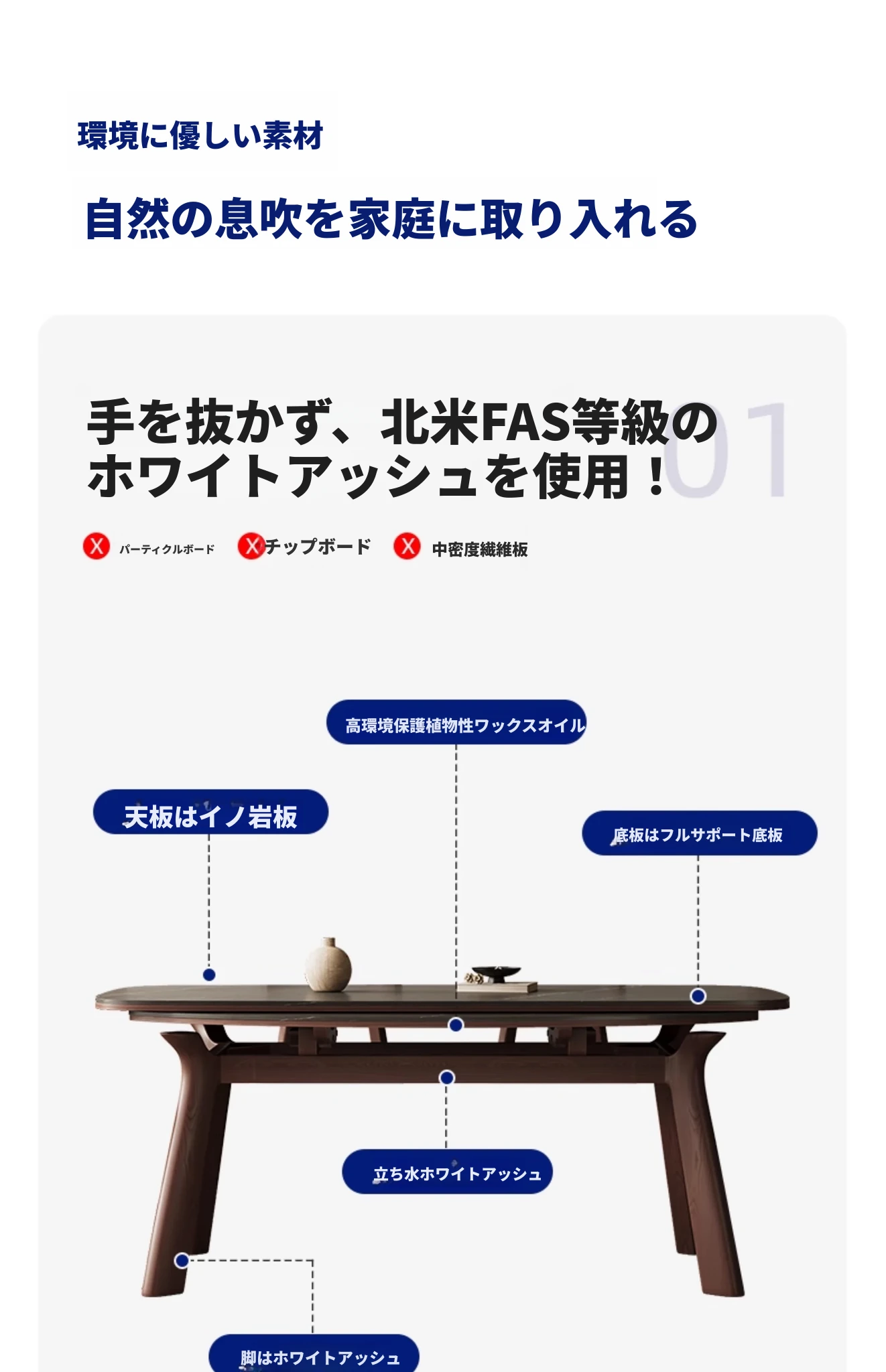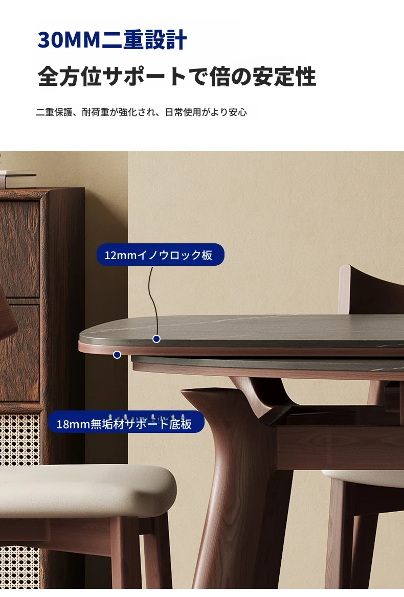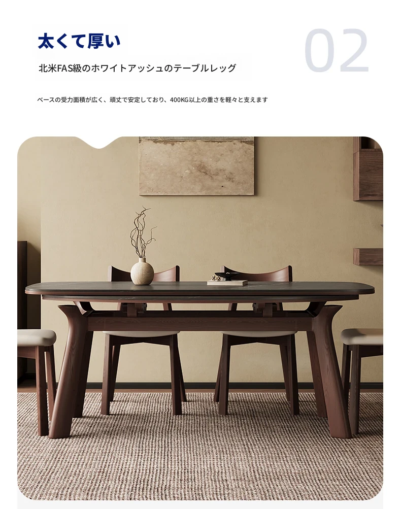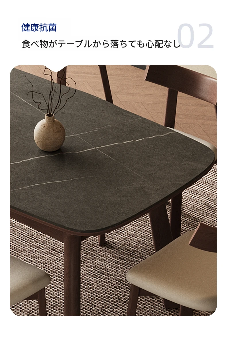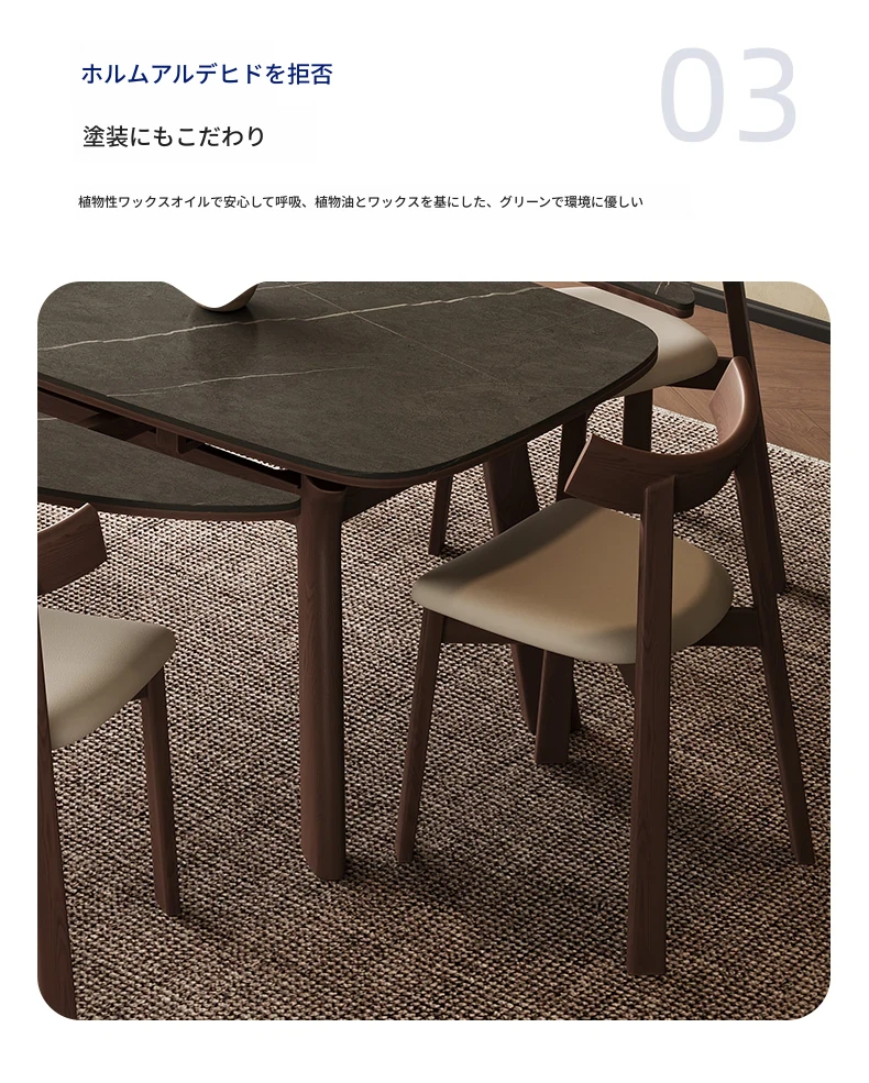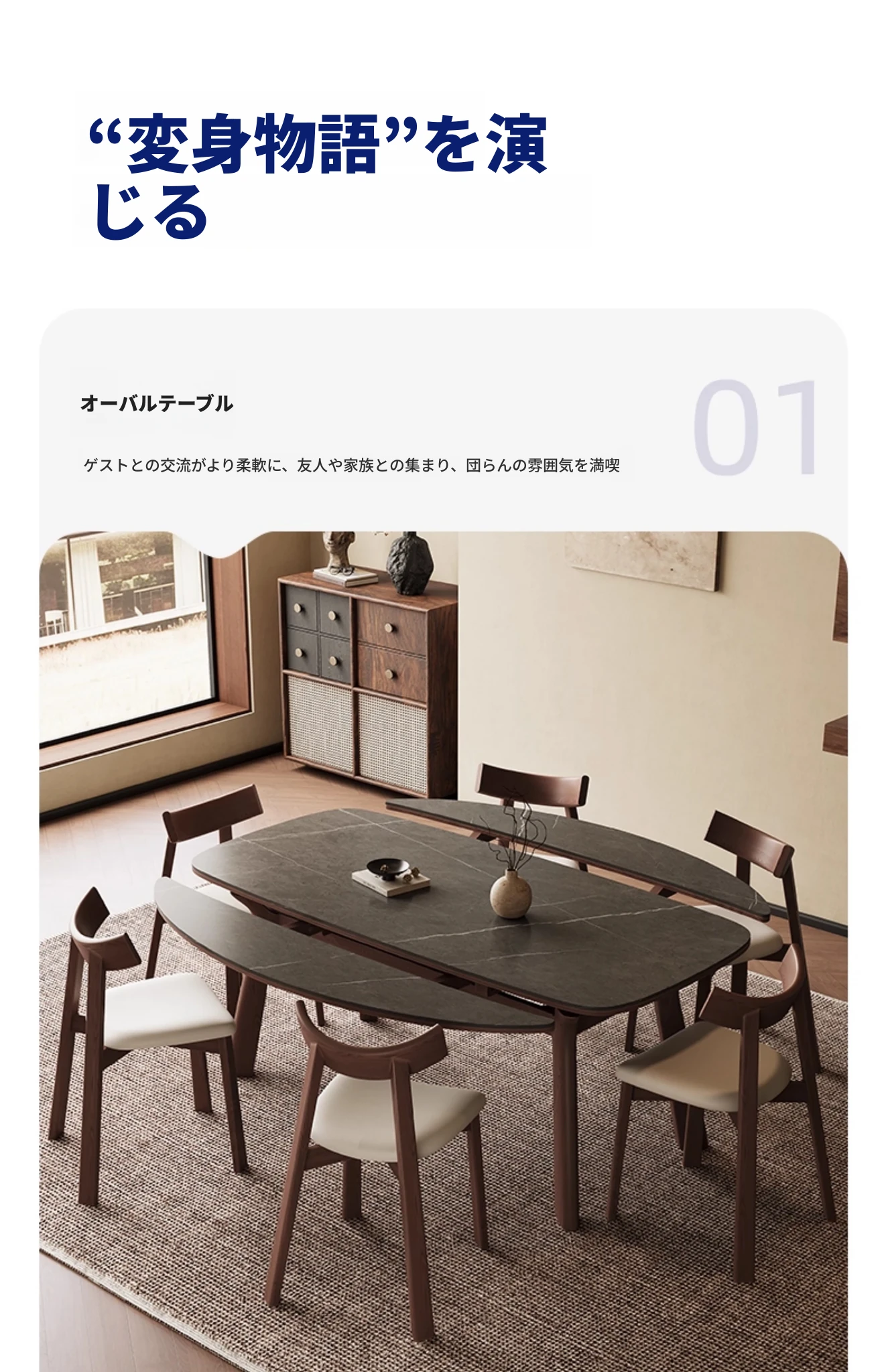 ブラックウォルナット色の侘寂風デザイン、伸縮式の天然木製テーブル&チェアセット。高級感あふれるシンプルな美しさで、家庭にぴったりの洗練されたダイニング空間を演出します。