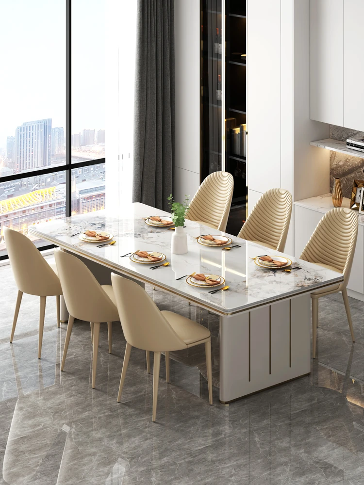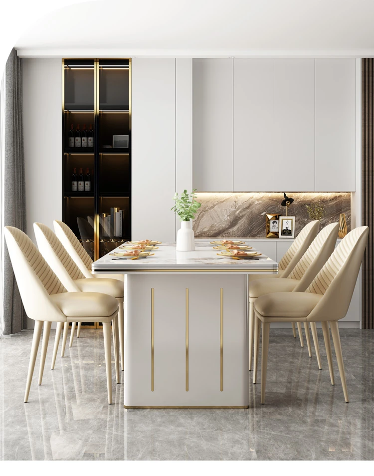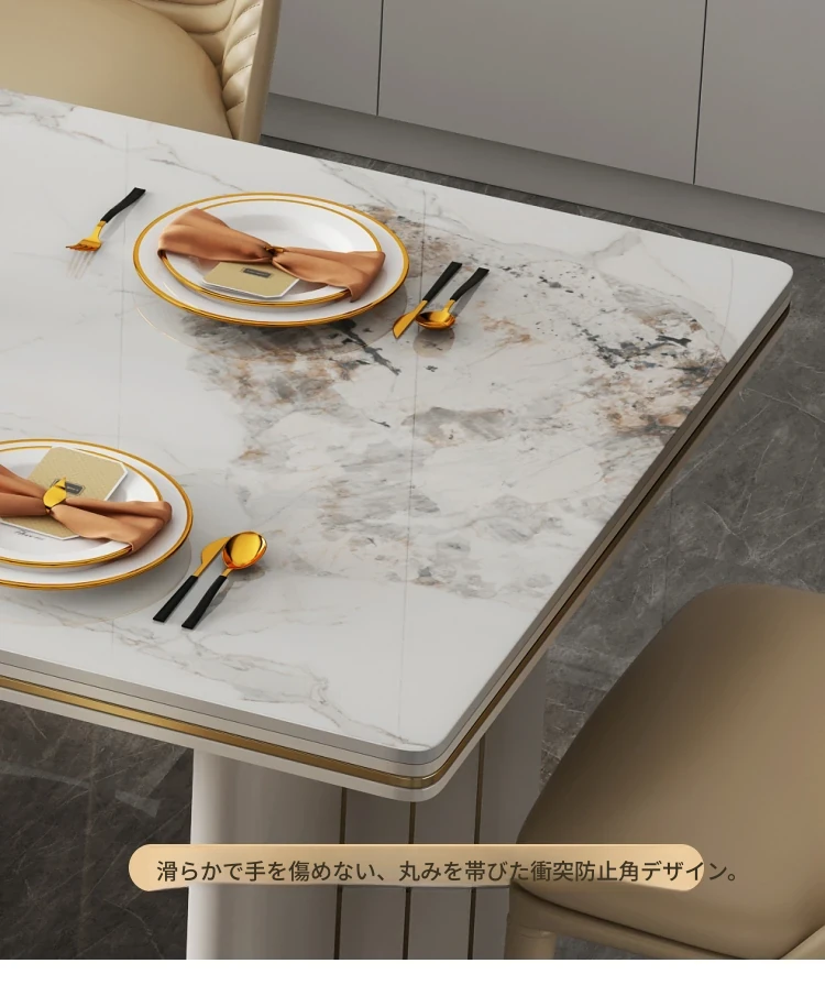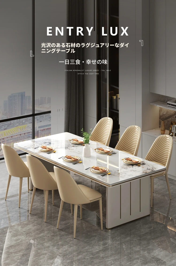 クリーム風ホワイトストーンテーブル 高級感溢れるモダンミニマリストデザイン 小さなお部屋にぴったりなダイニングテーブル&チェアセット 家庭用に最適な食卓をご提供!