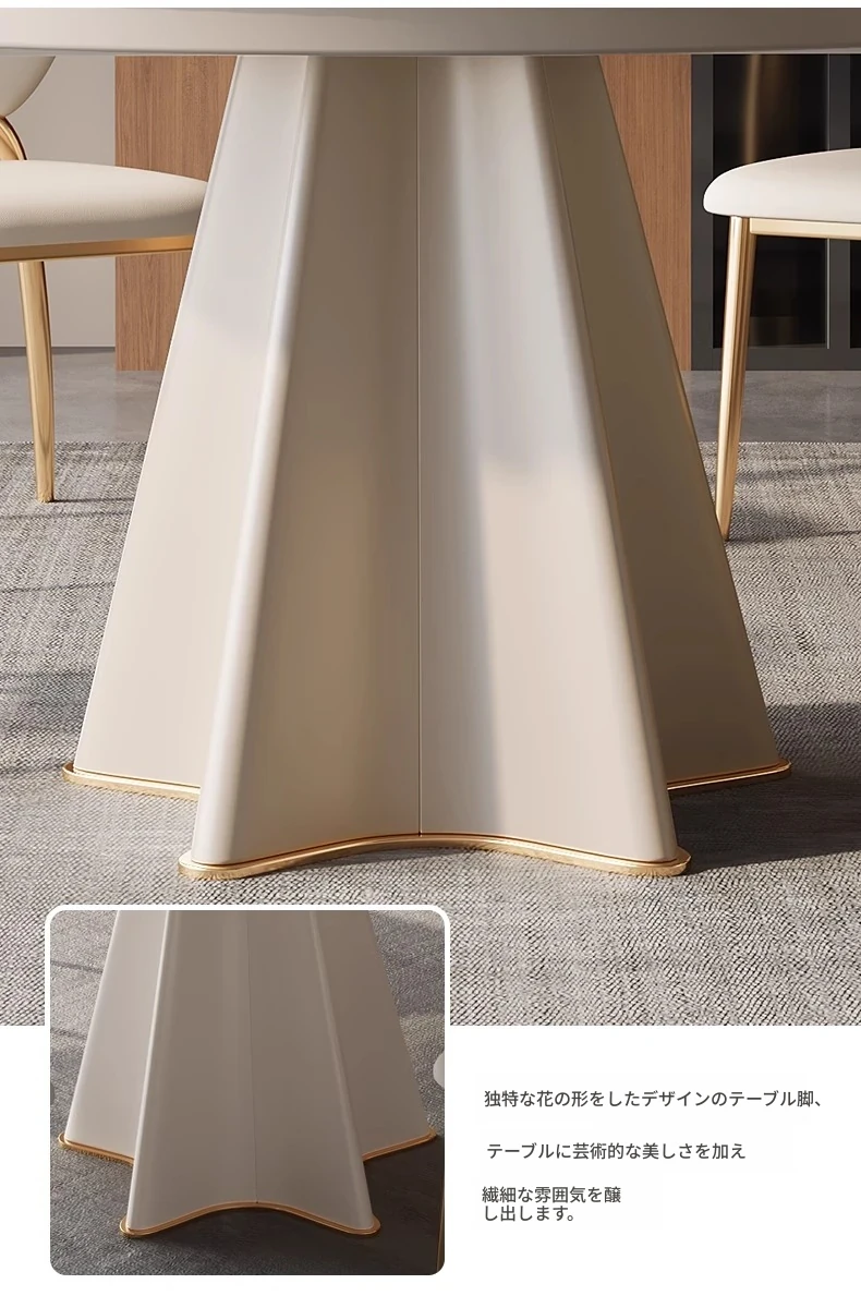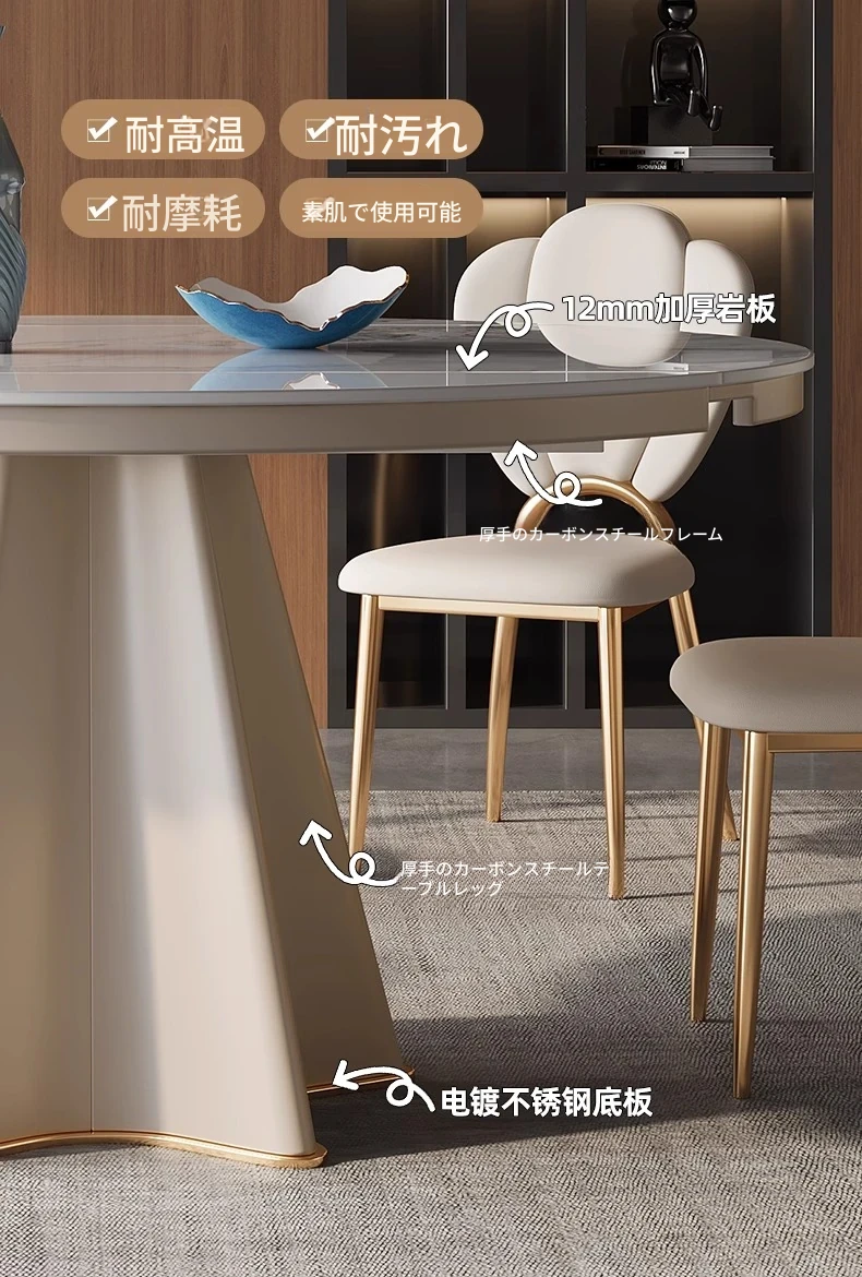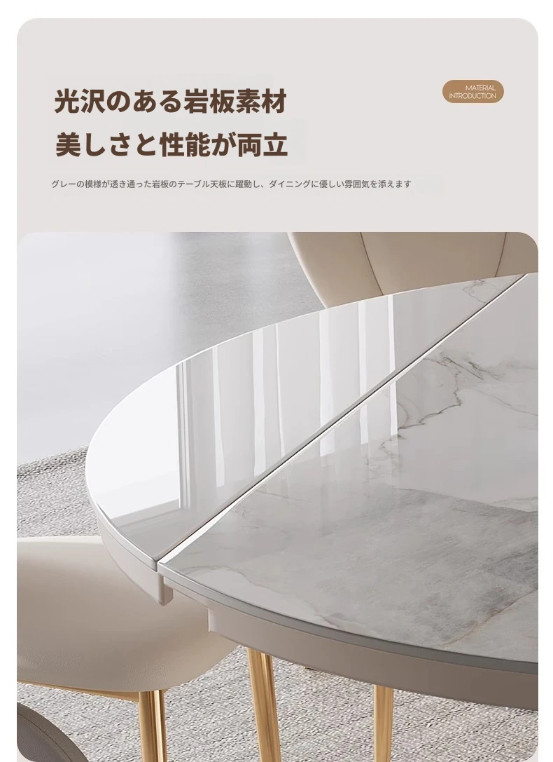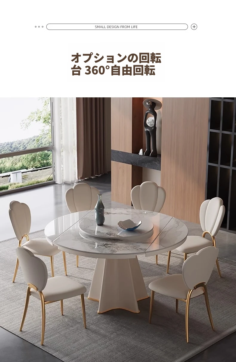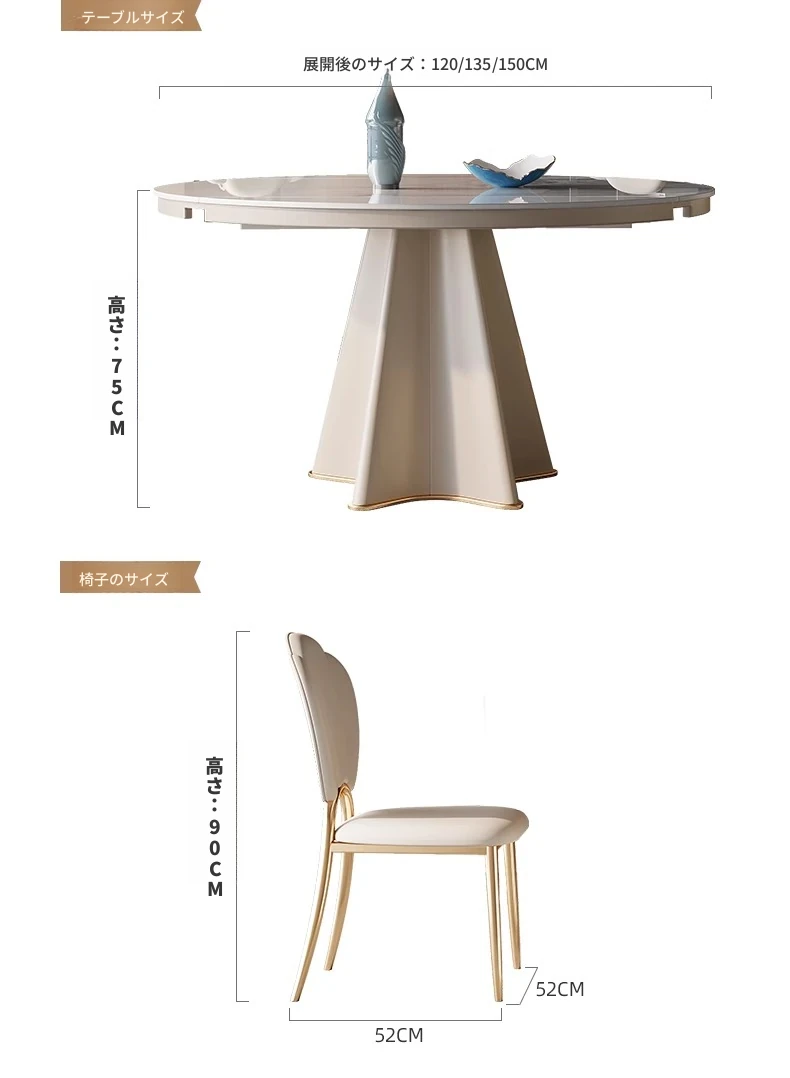 軽奢スタイルの伸縮可能なラウンドテーブル - 小型住宅に最適な機能的デザイン!シンプルで高級感あふれる別荘用ダイニングテーブル&チェアセット。お洒落で実用的な食卓で、特別なひとときを演出します。