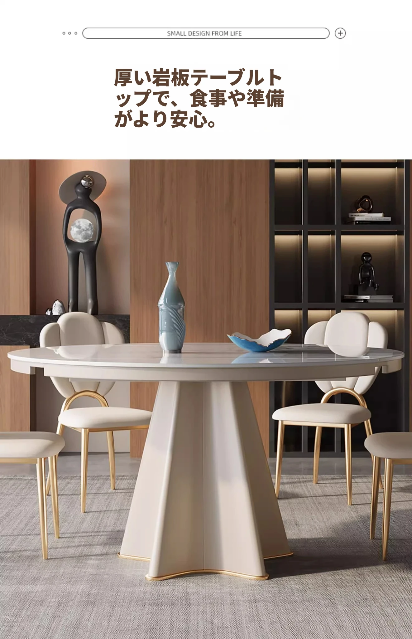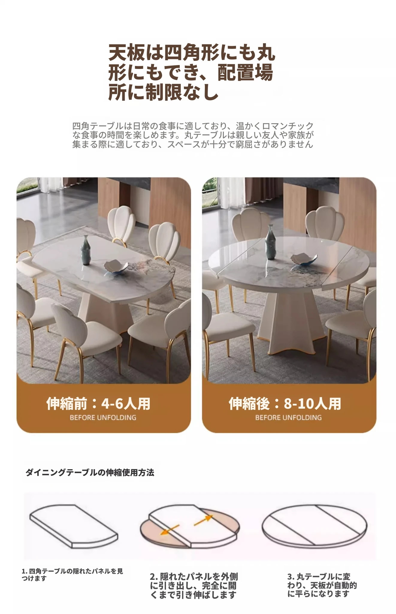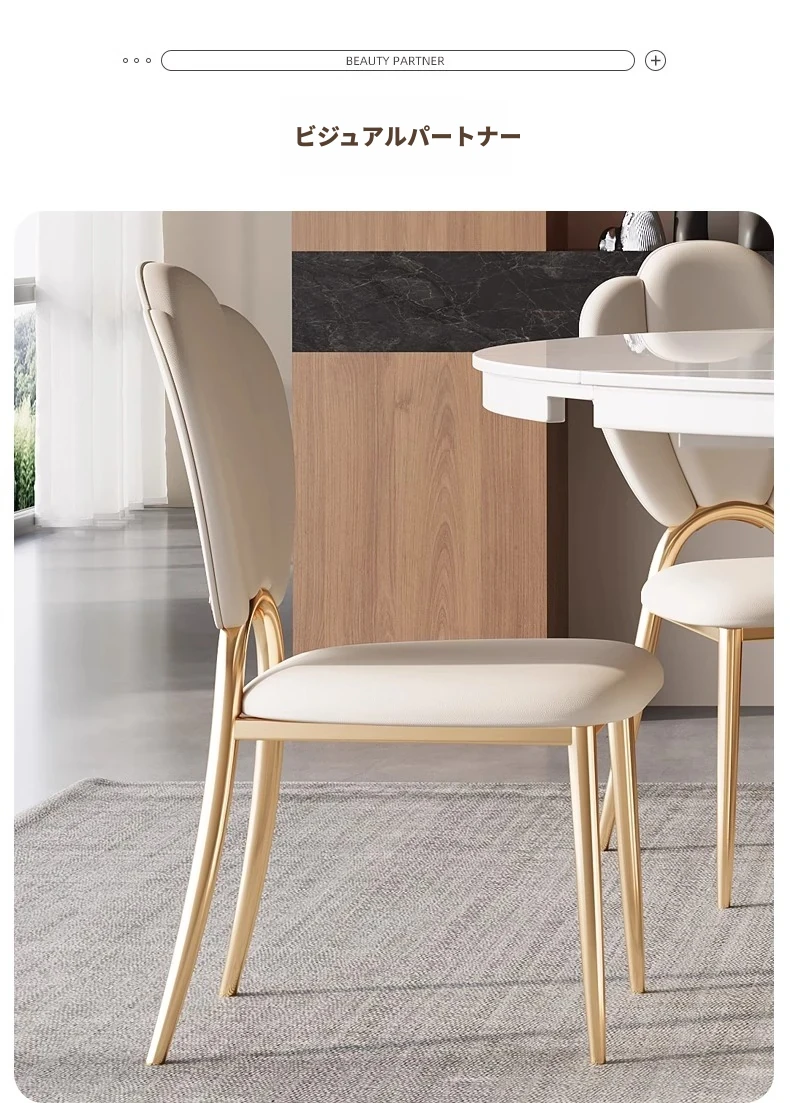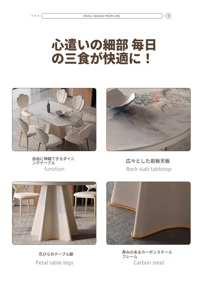 軽奢スタイルの伸縮可能なラウンドテーブル - 小型住宅に最適な機能的デザイン!シンプルで高級感あふれる別荘用ダイニングテーブル&チェアセット。お洒落で実用的な食卓で、特別なひとときを演出します。