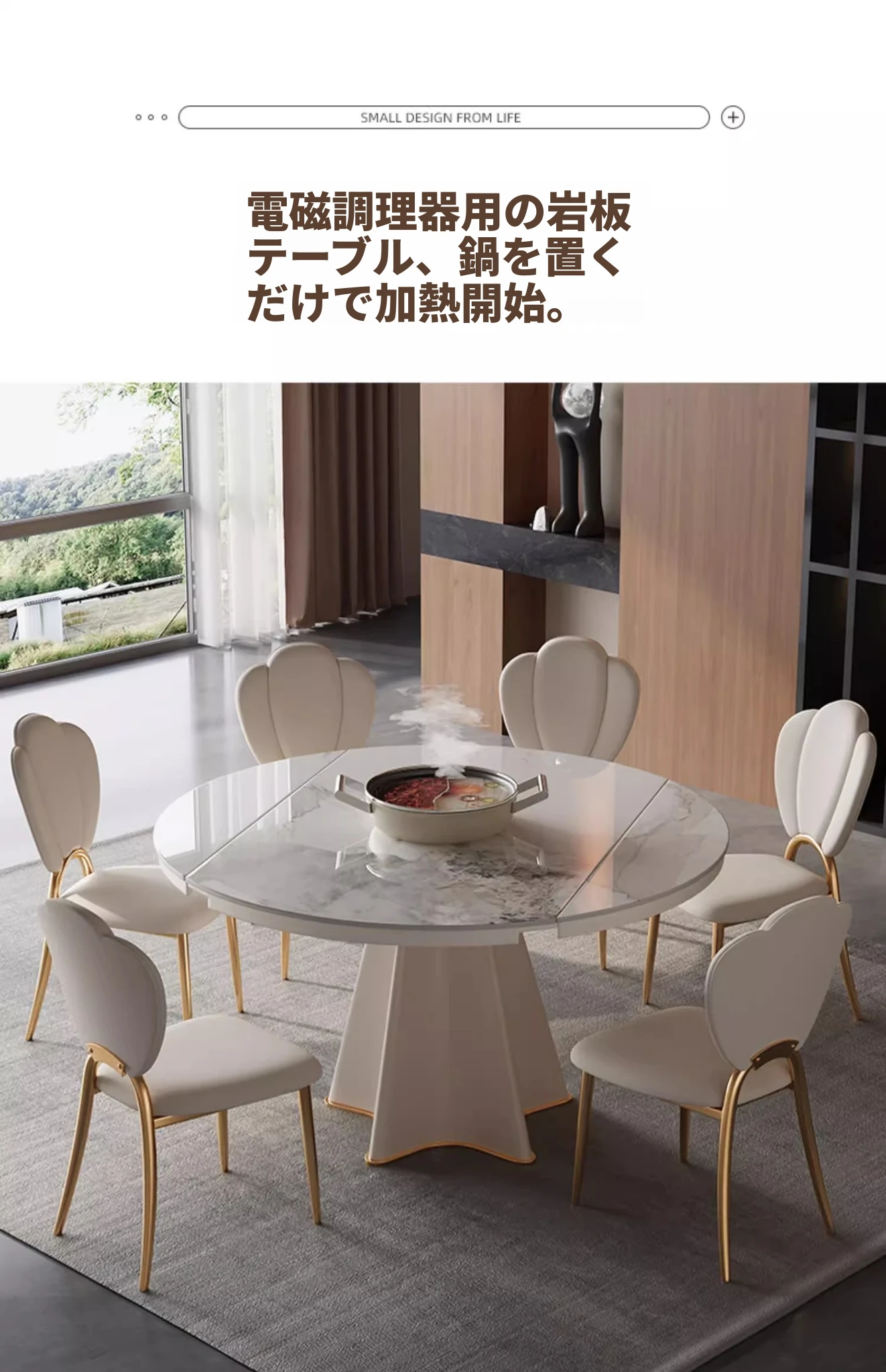 1.5メートル四角から円形に変わるダイニングテーブル+隠れた電磁調理器