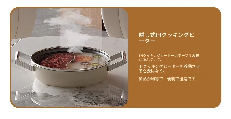 1.2メートル四角から円形に変わるダイニングテーブル+隠れた電磁調理器