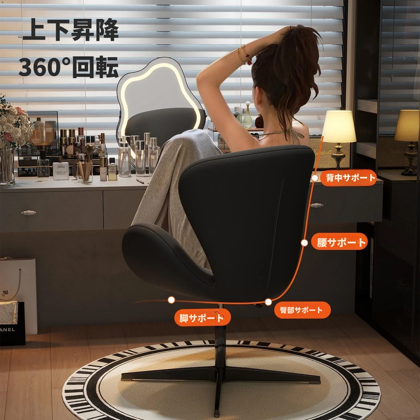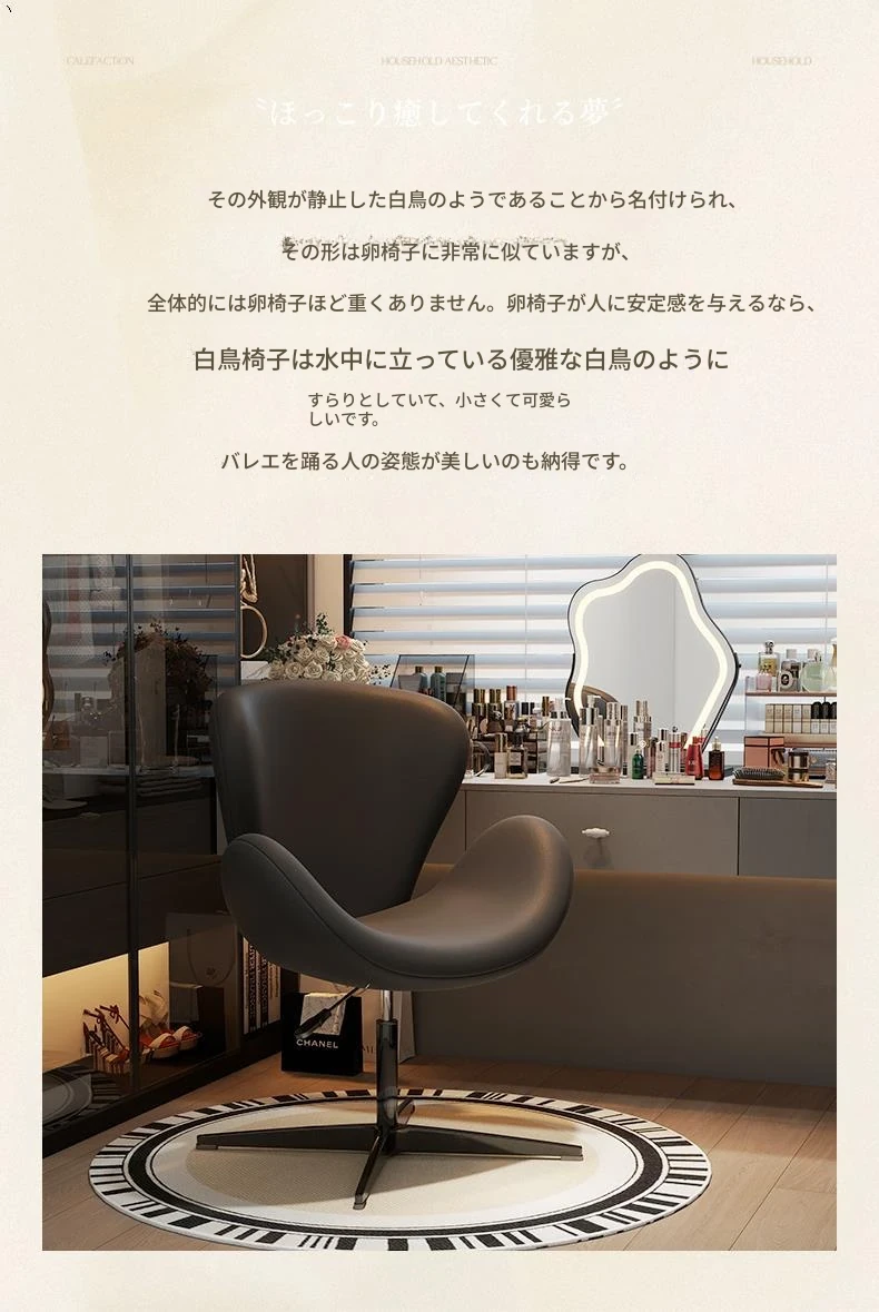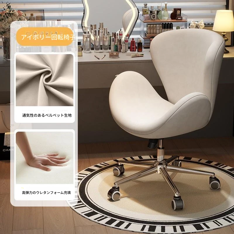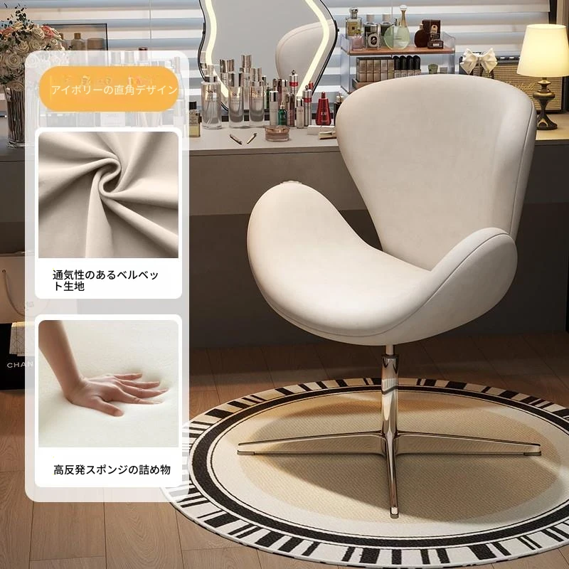 軽やかなラグジュアリー感!インスタ映えする化粧椅子 - 自宅の女性用寝室にぴったり!ドレッサー用スツール、スワンチェア、クローゼット用の背もたれ椅子、美容ネイル用チェアとしても最適です。おしゃれで機能的なアイテムを手に入れよう!