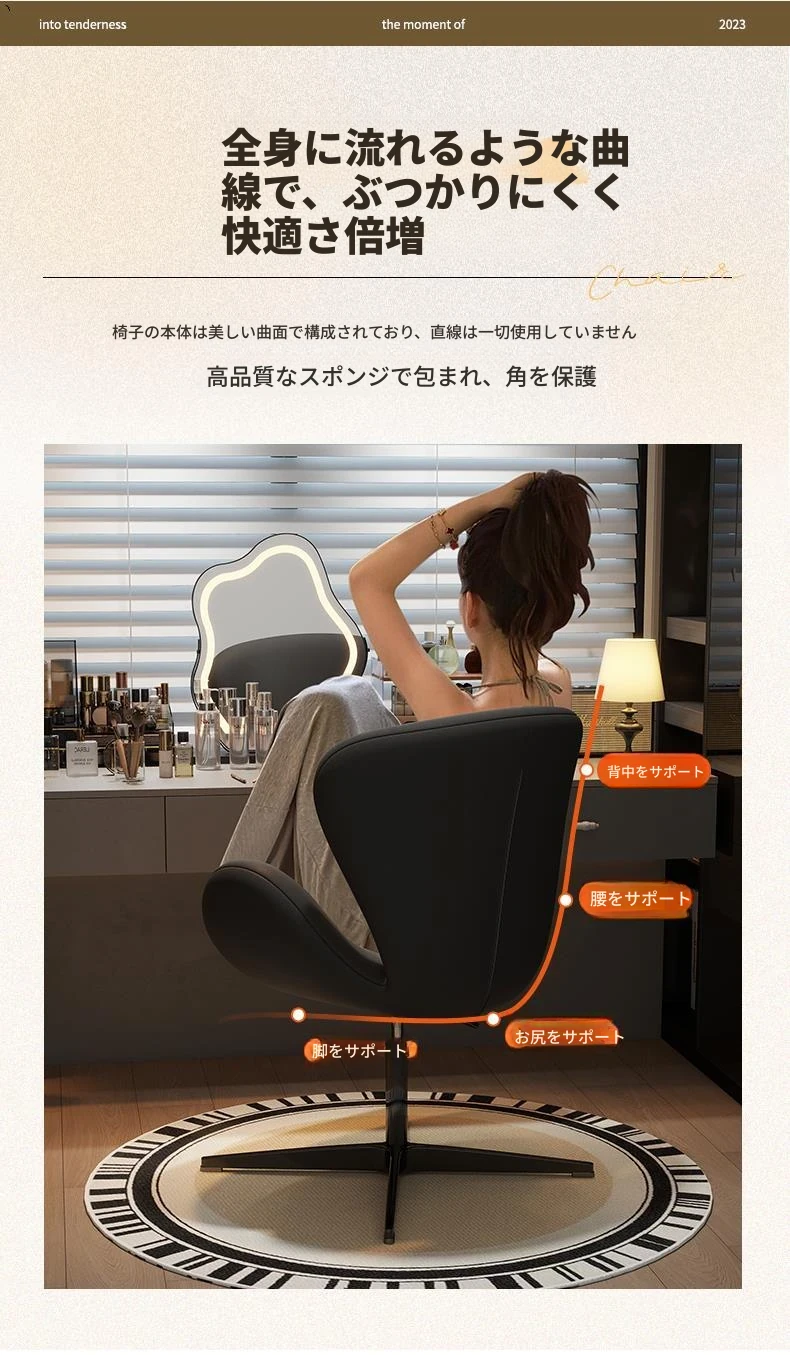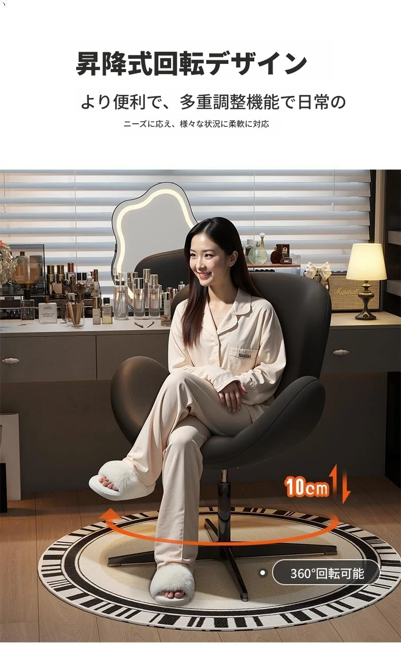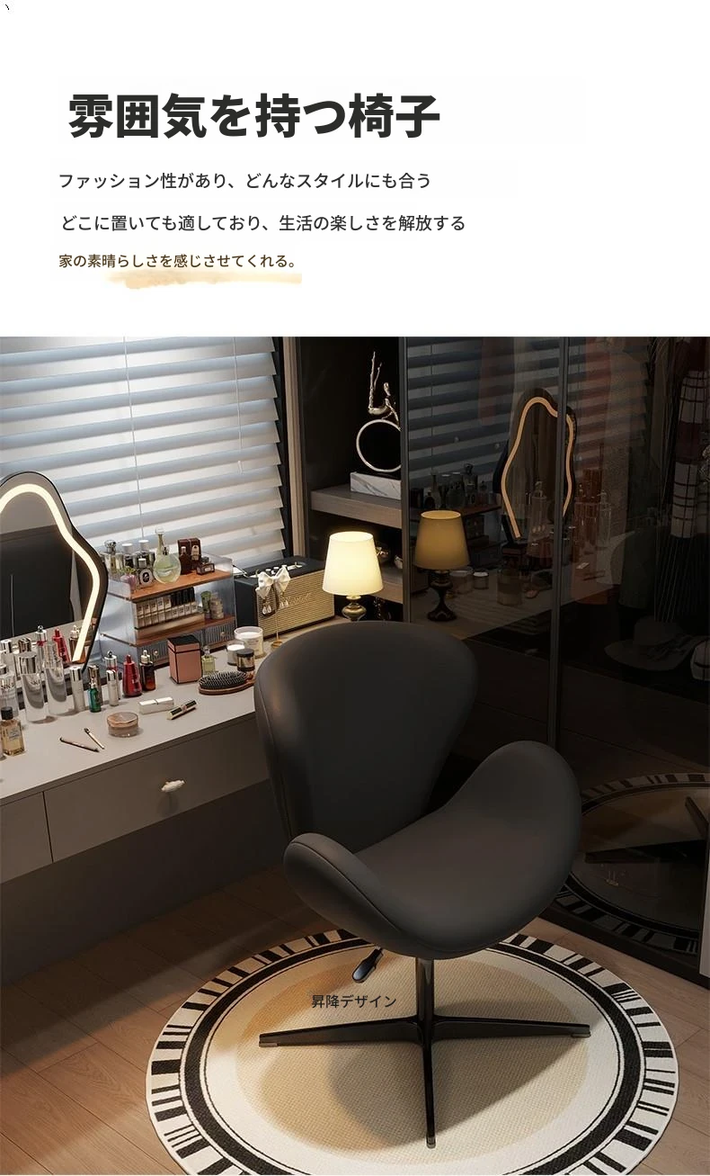 軽やかなラグジュアリー感!インスタ映えする化粧椅子 - 自宅の女性用寝室にぴったり!ドレッサー用スツール、スワンチェア、クローゼット用の背もたれ椅子、美容ネイル用チェアとしても最適です。おしゃれで機能的なアイテムを手に入れよう!