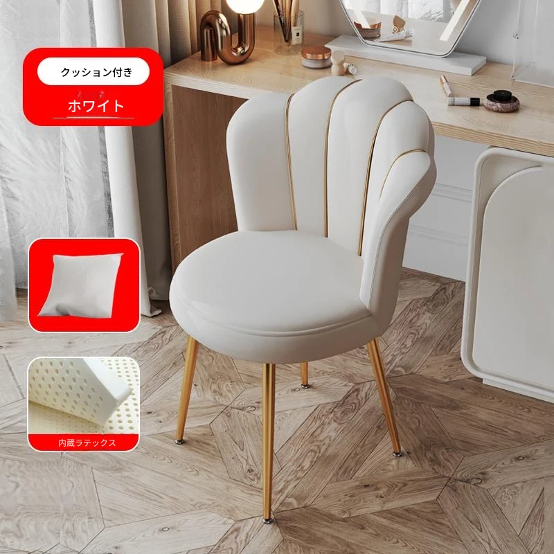 花びらチェア⭐パールホワイト-金脚ラテックスタイプ+クッション