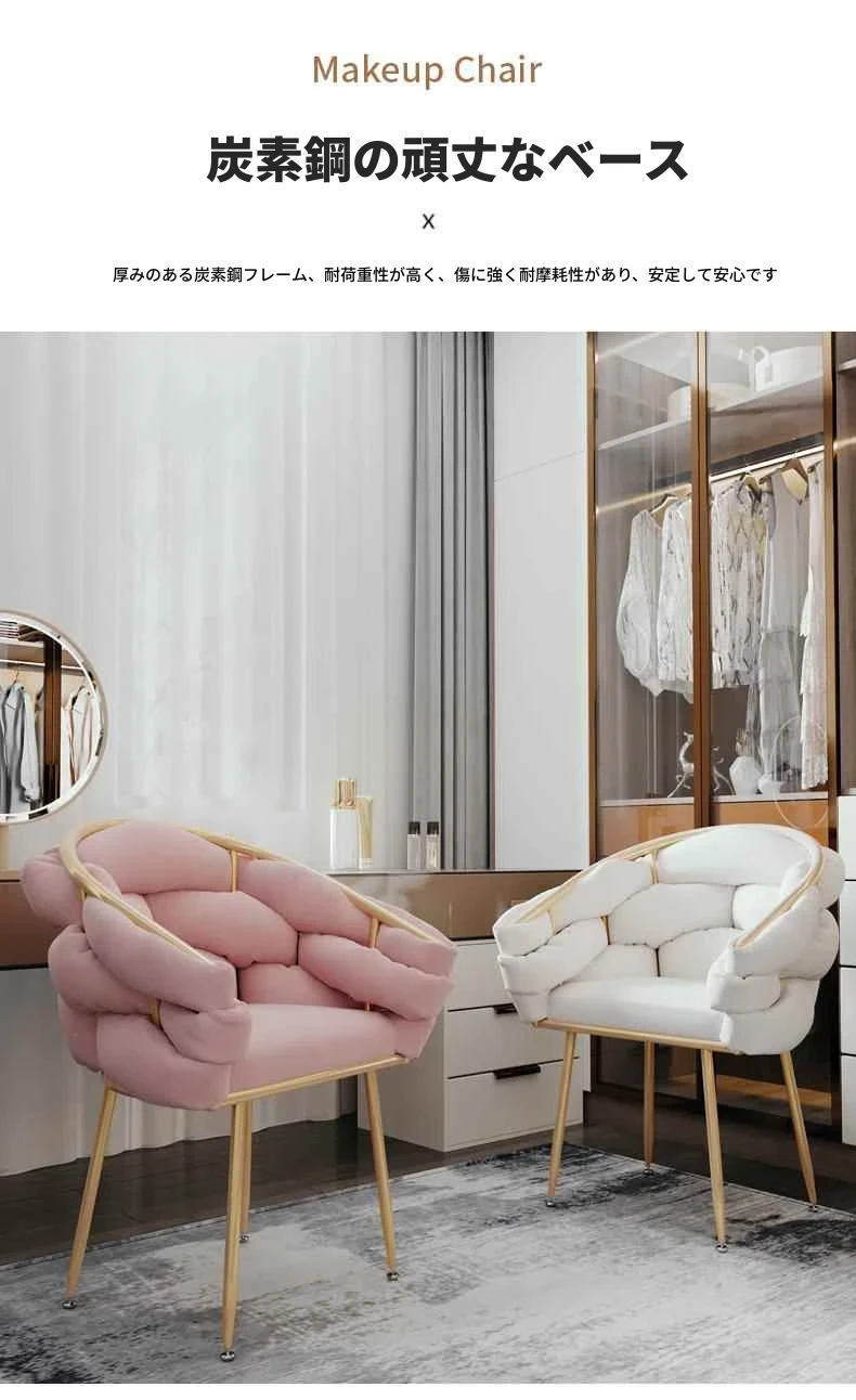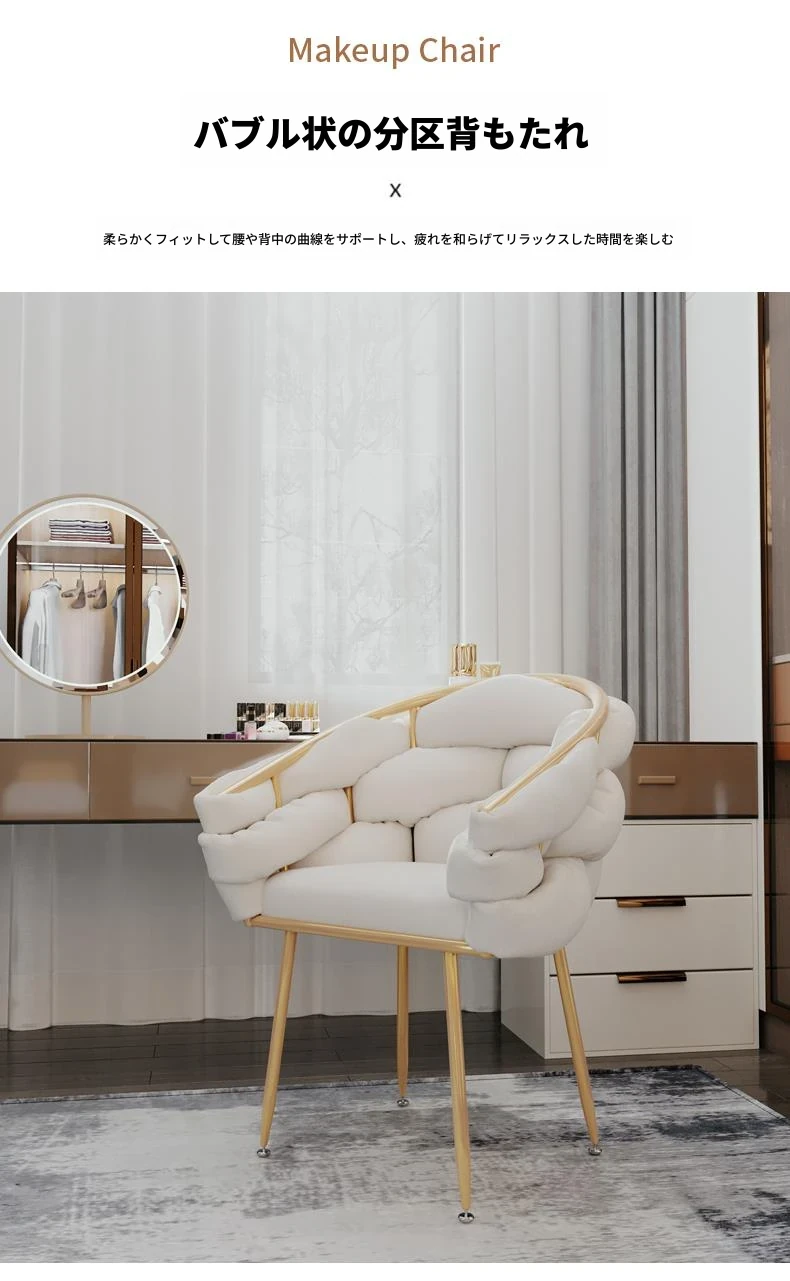 化粧椅 女子用 寝室のドレッサー用 背もたれ付き 高級感溢れるシンプルなデザインのバブルチェア ネイルサロンにも最適!