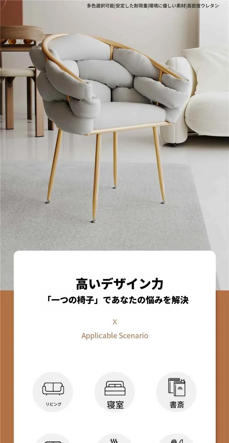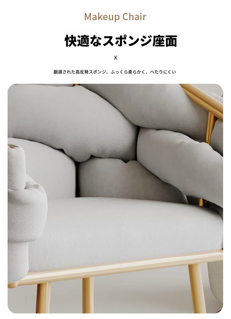 花びらチェア⭐高級グレー-金脚ラテックスタイプ+クッション
