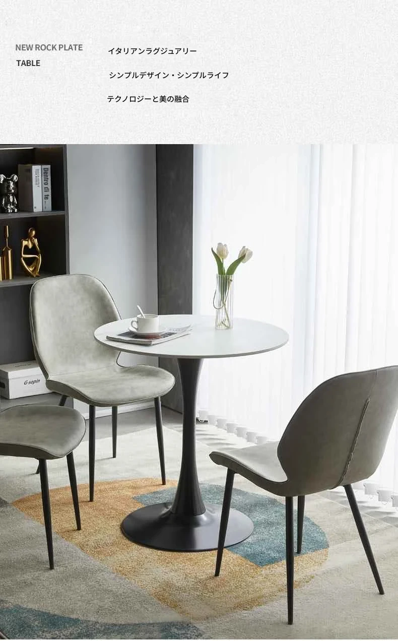 軽やかな高級感のある岩板テーブル - シンプルなミーティングテーブル、チューリップ型のダイニングテーブル、カフェやティーサロンにぴったりのリラックス空間を演出するバルコニー用小型サークルテーブル