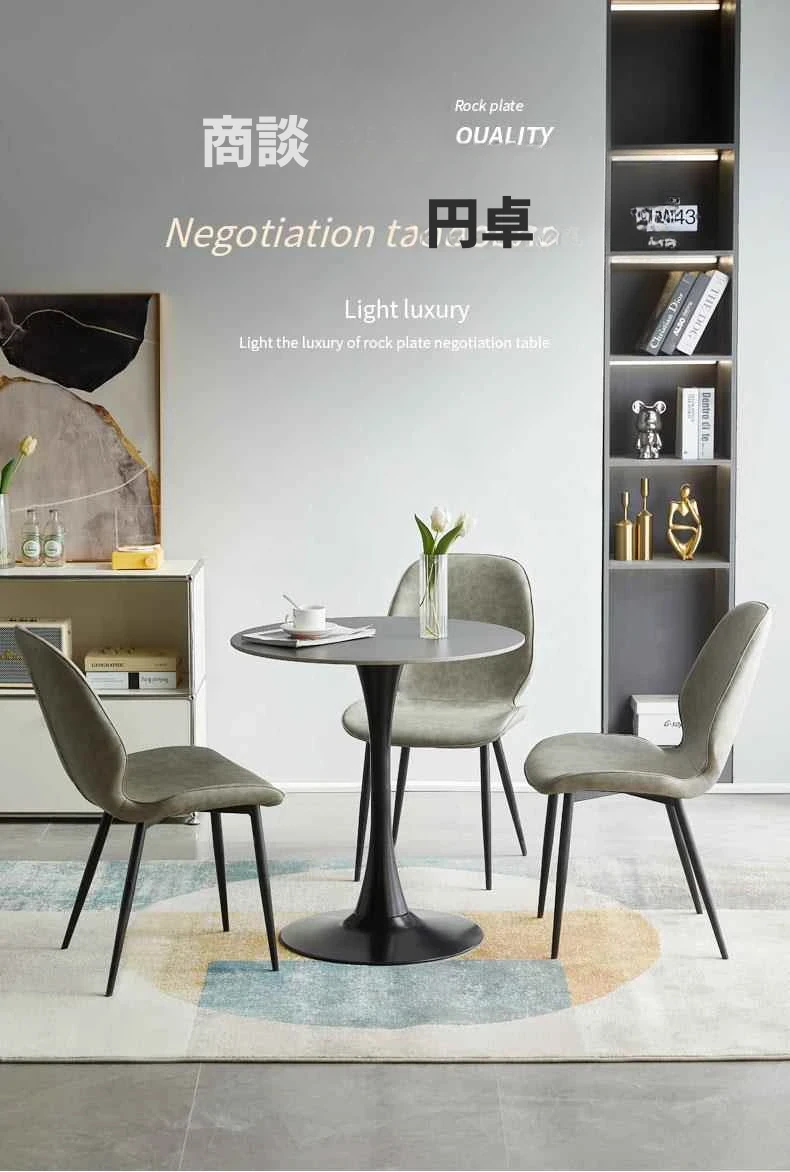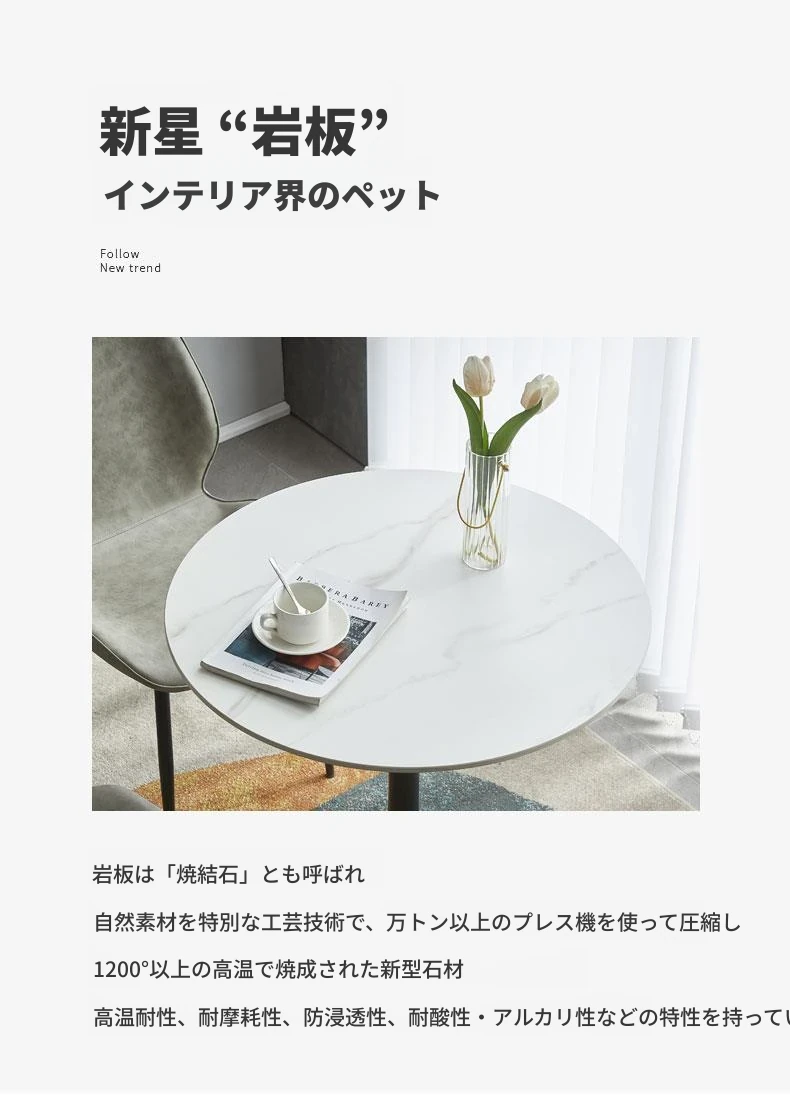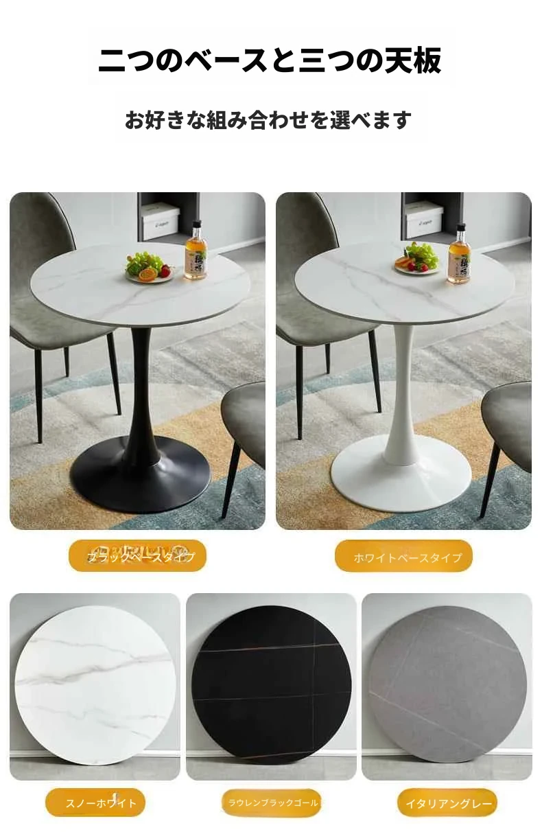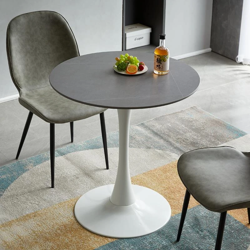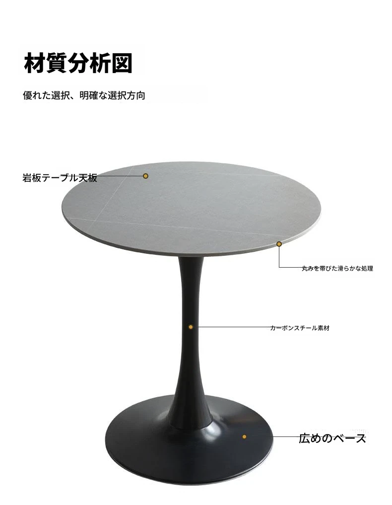 軽やかで上質なスラブテーブル - シンプルな打ち合わせテーブル、チューリップデザインのダイニングテーブル、カフェやティーサロンに最適なリラックス用の小型円形テーブル、バルコニーにもピッタリ!