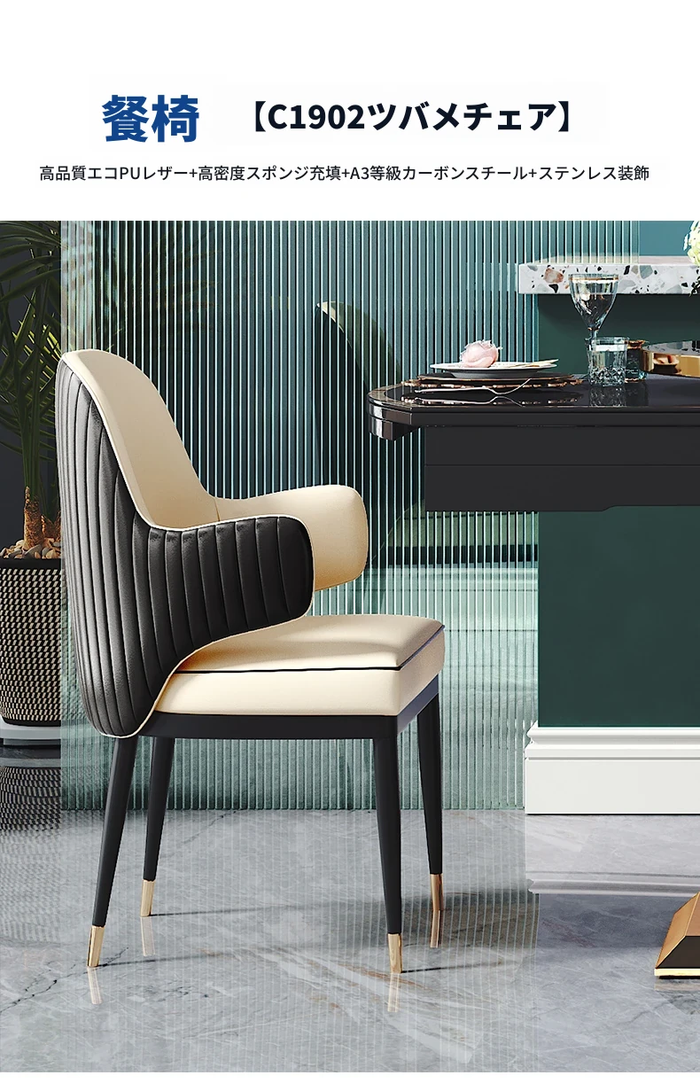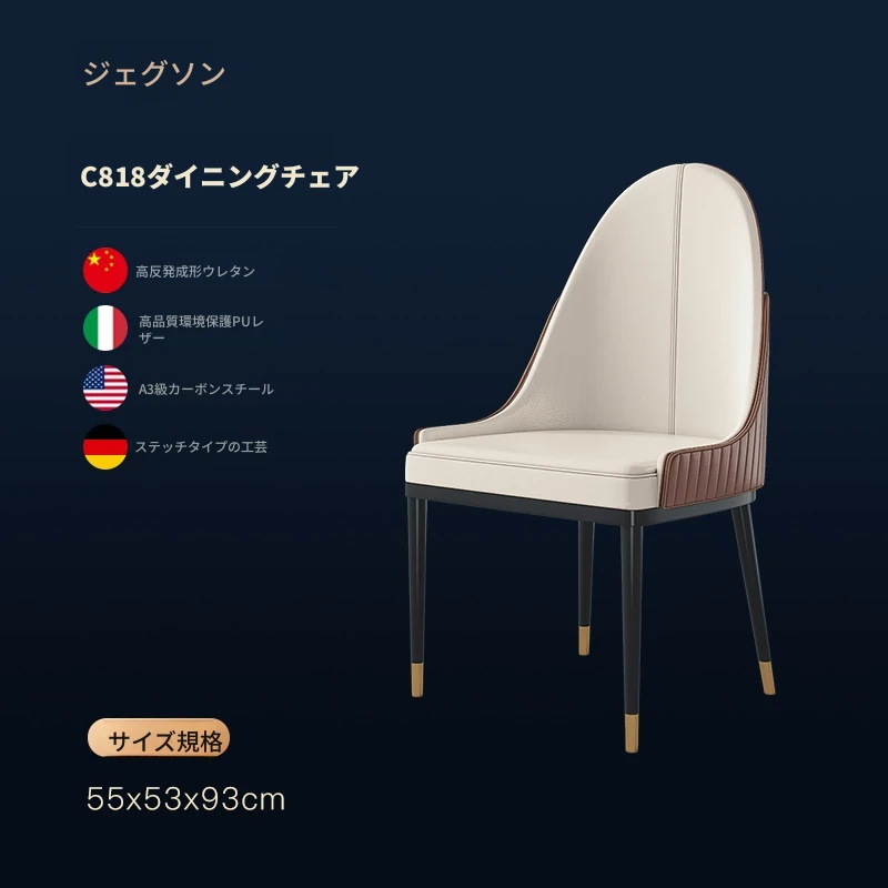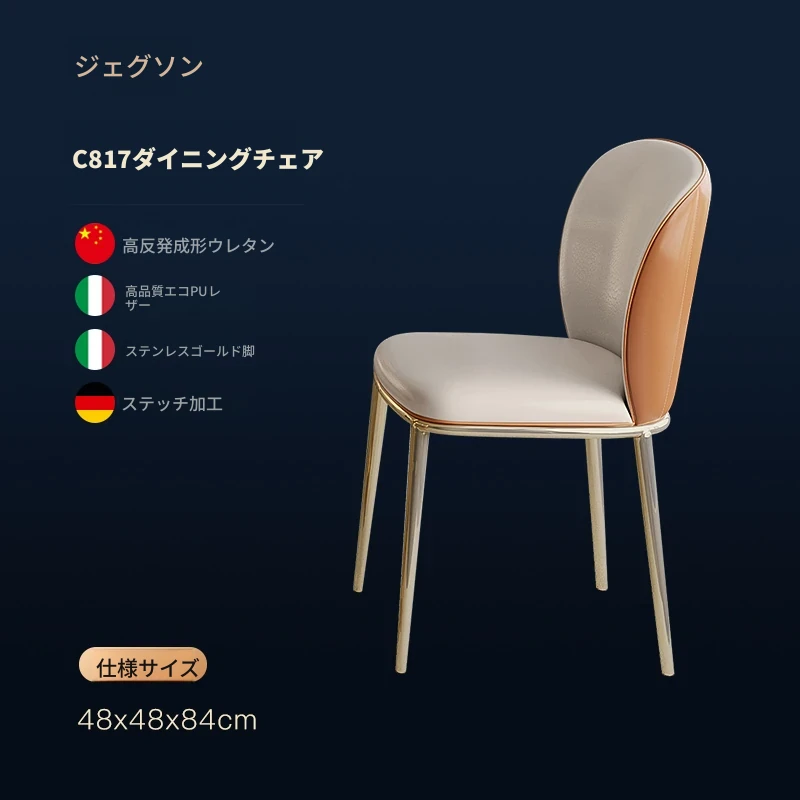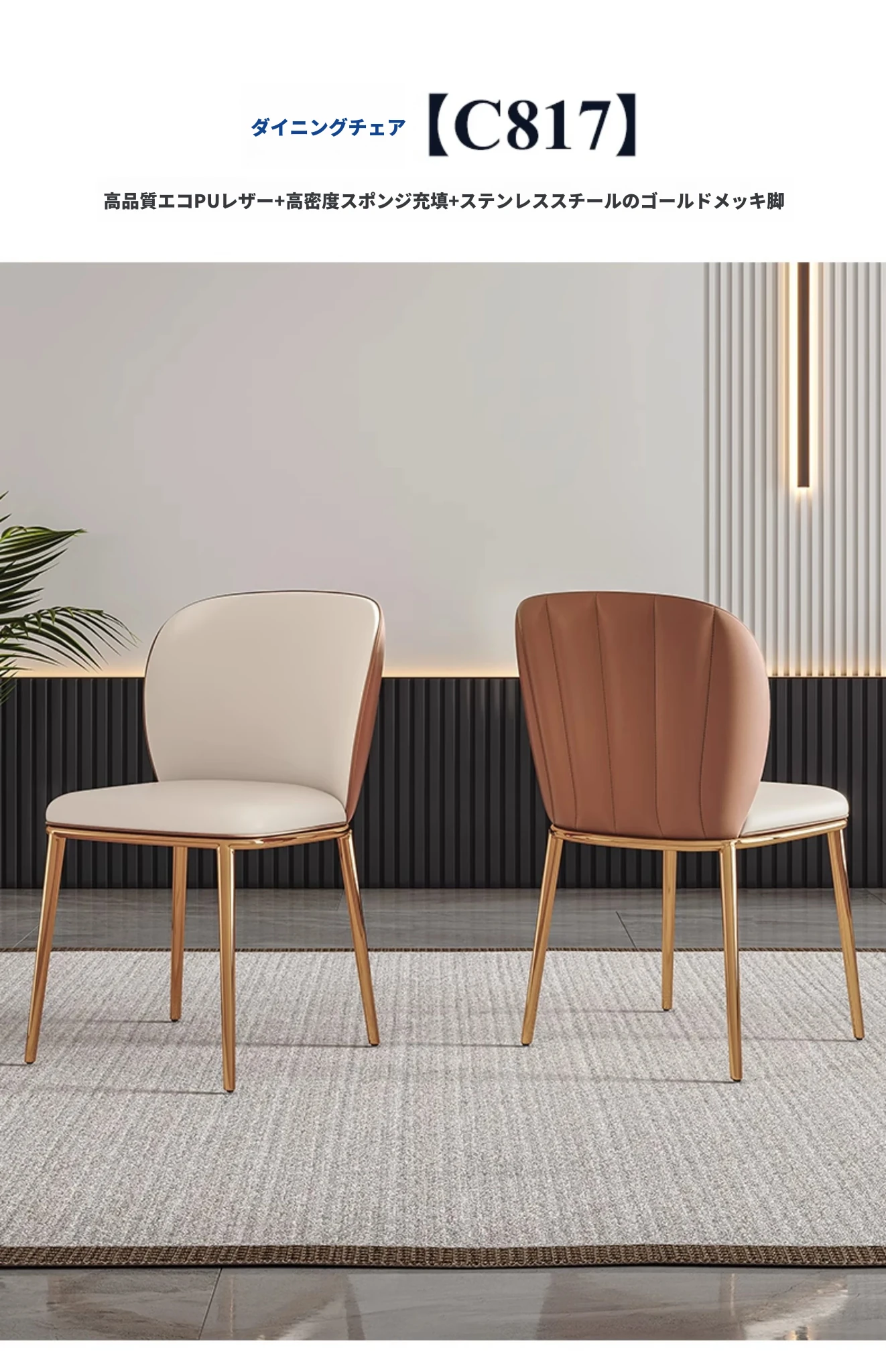 軽やかな贅沢感のあるモダンなダイニングチェア、シンプルでおしゃれなデザイン。小さなお部屋にもぴったりのリラックスチェア。北欧風のインテリアにマッチする人気のインスタ映え椅子!