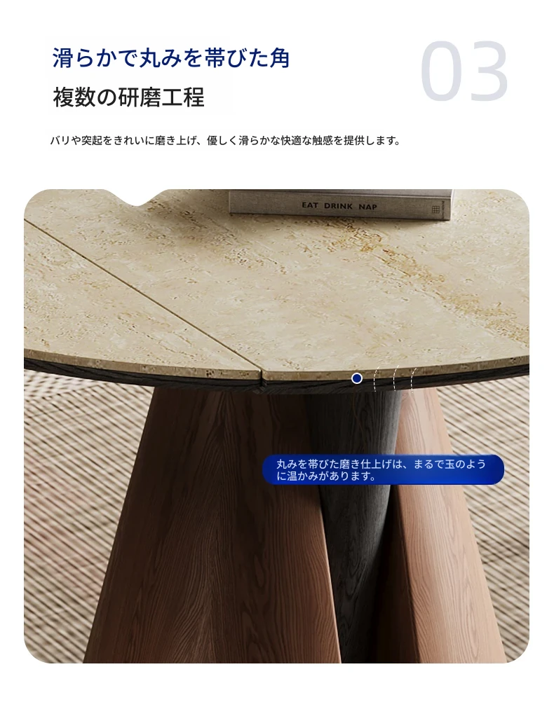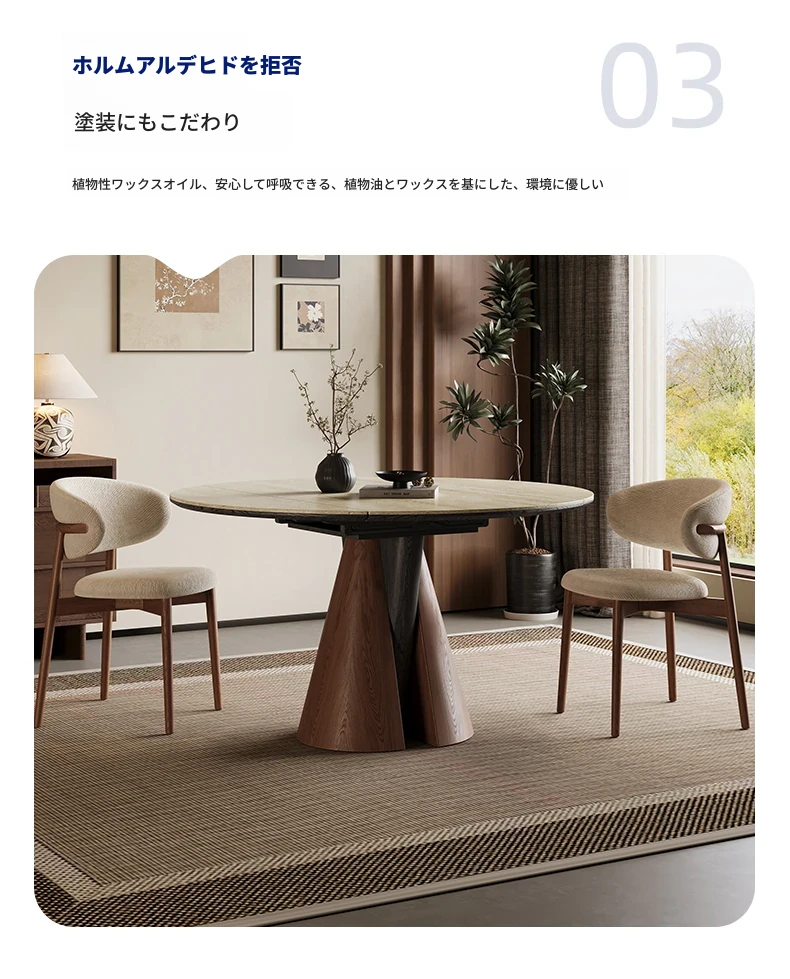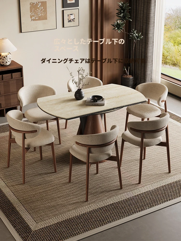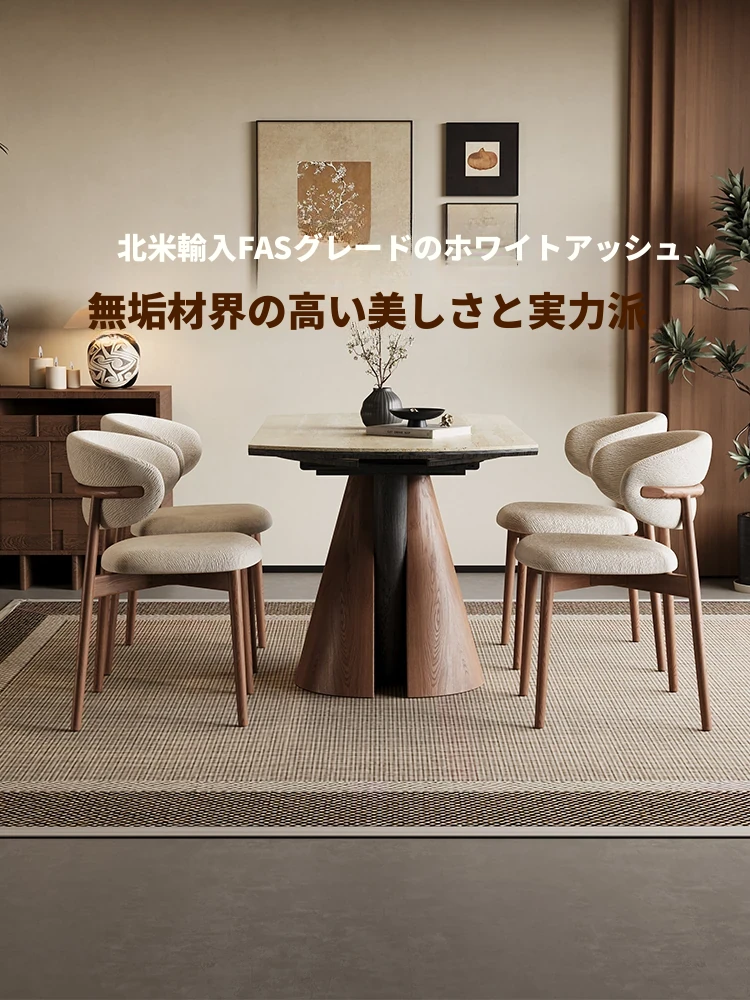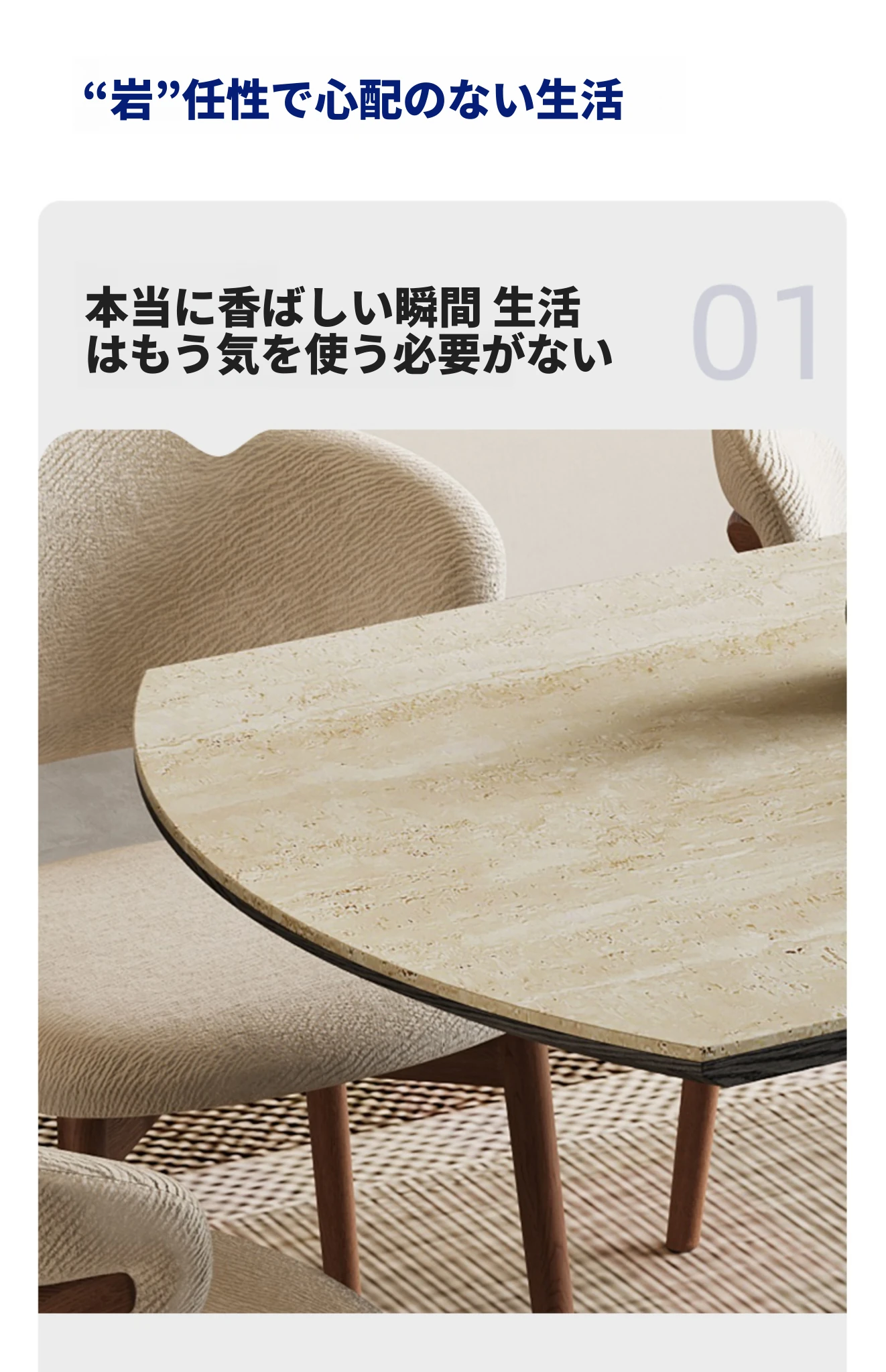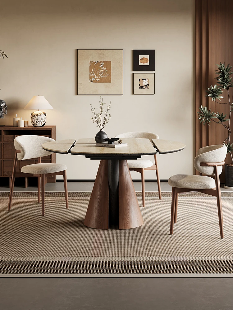 最新デザイン!洞石岩板&無垢材の伸縮式ダイニングテーブル - シンプルでモダンな高級感、折りたたみ可能で使い勝手抜群!2025年新作、家庭にぴったりのスタイリッシュな一品。