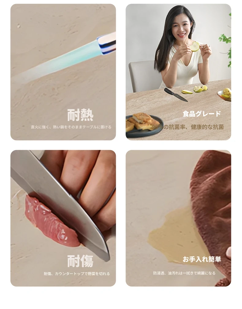 1.2メートル+4脚【洞石岩板ホワイトアッシュ】