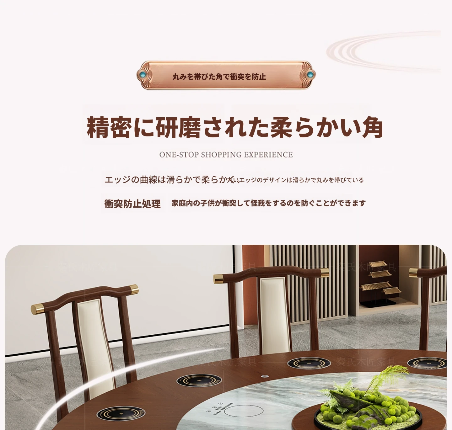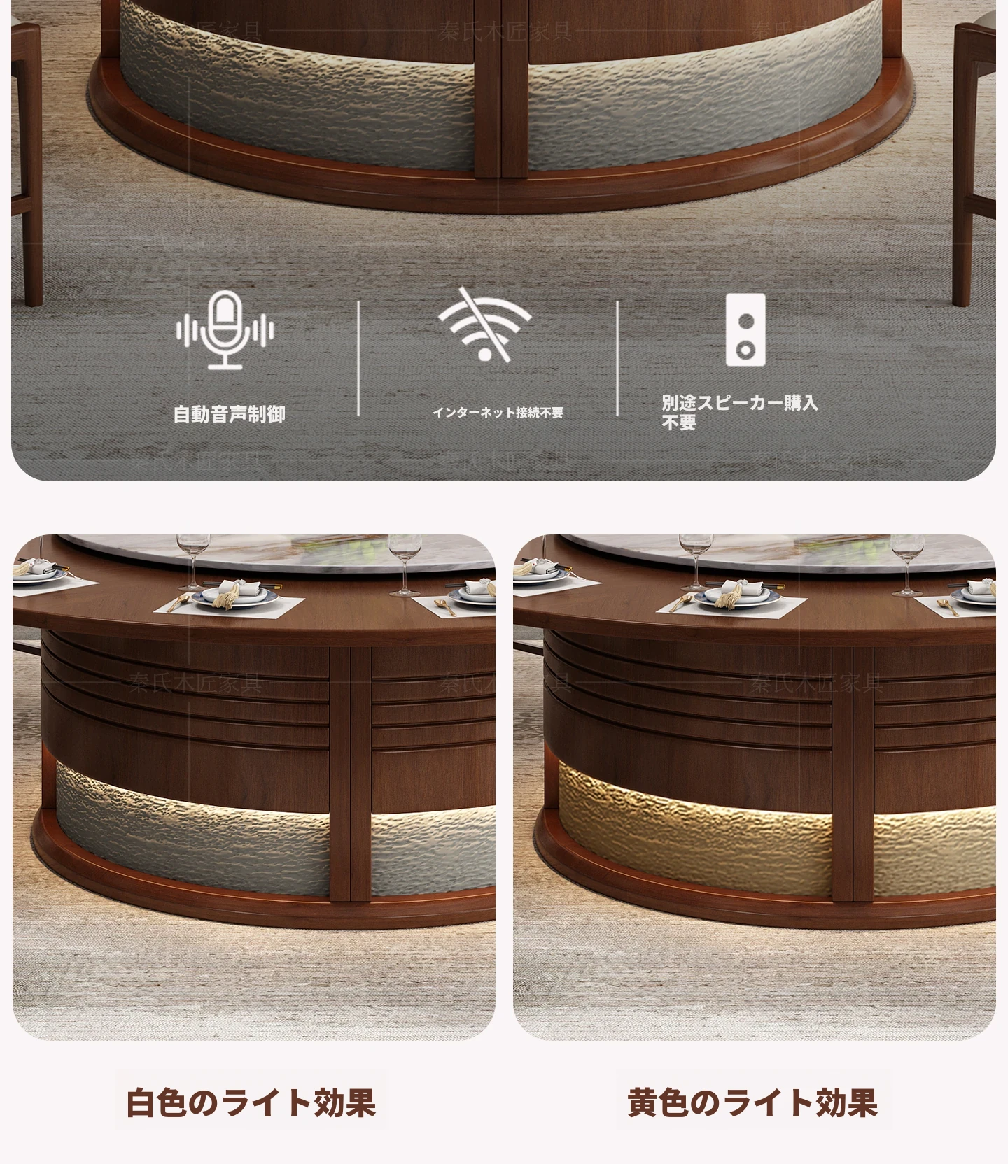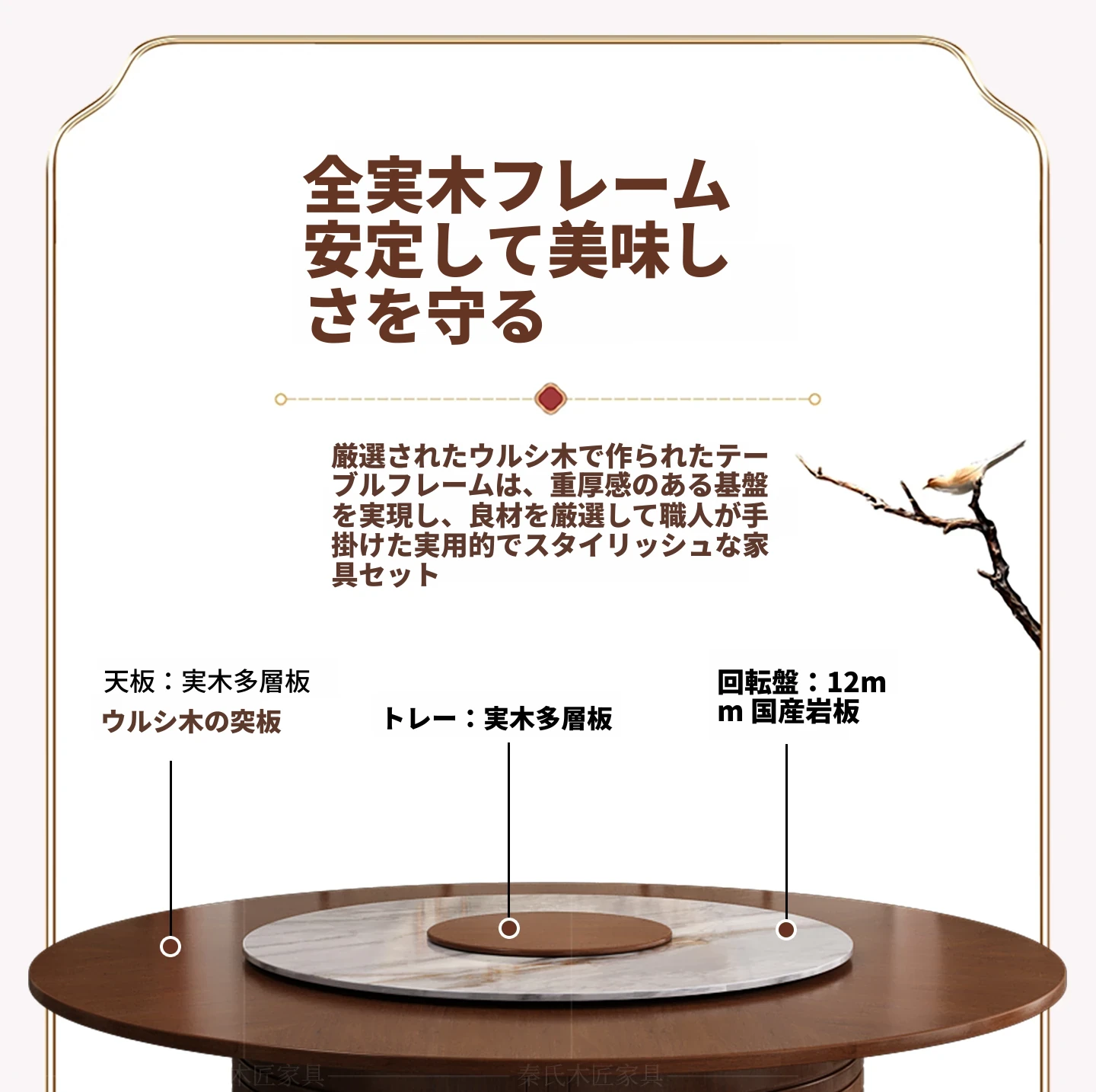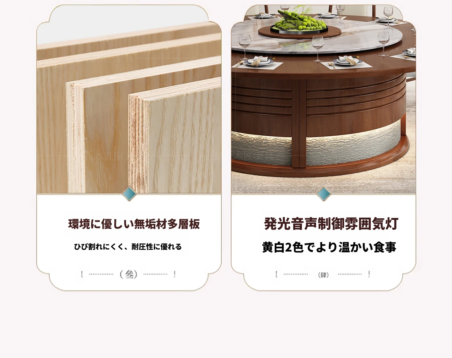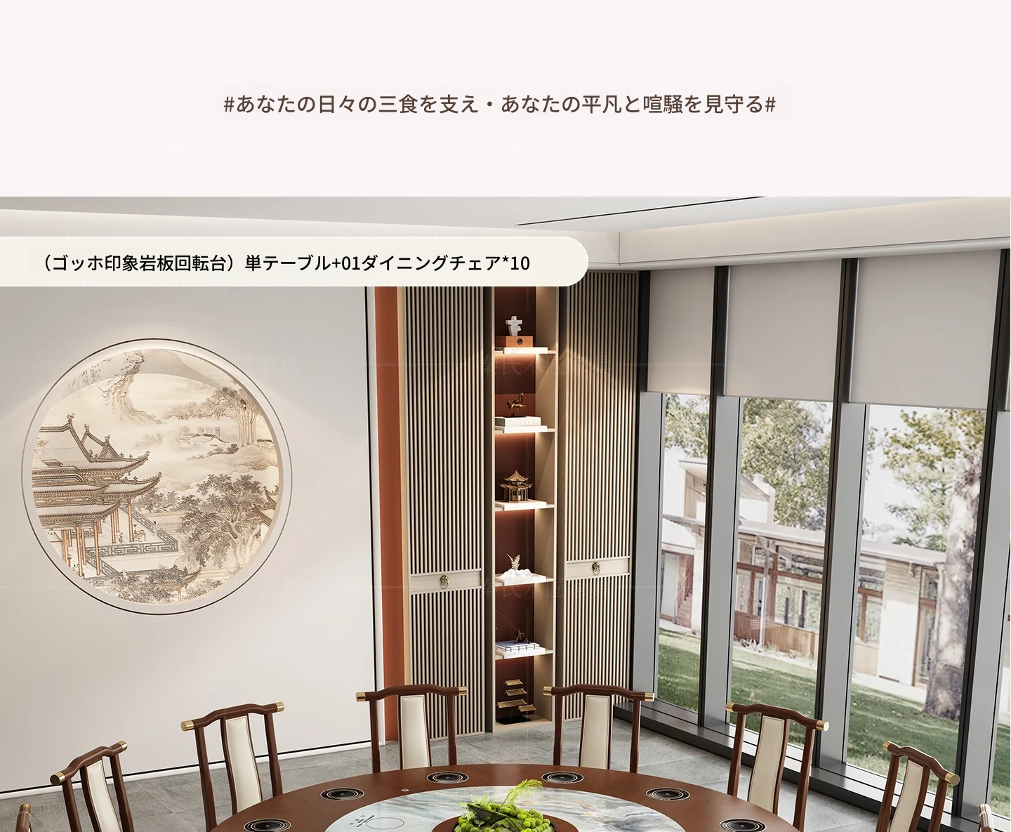 新中式軽奢ホテル用電動ダイニングテーブルセット - 高級感溢れる実木と岩板の組み合わせ、レストランや別荘に最適!自動回転プレート付きで便利さも追求。贅沢なひと時を演出します。