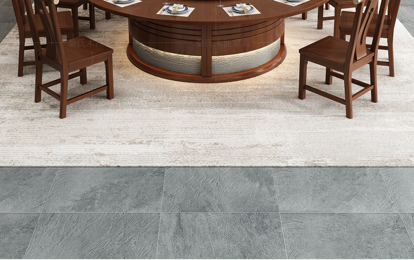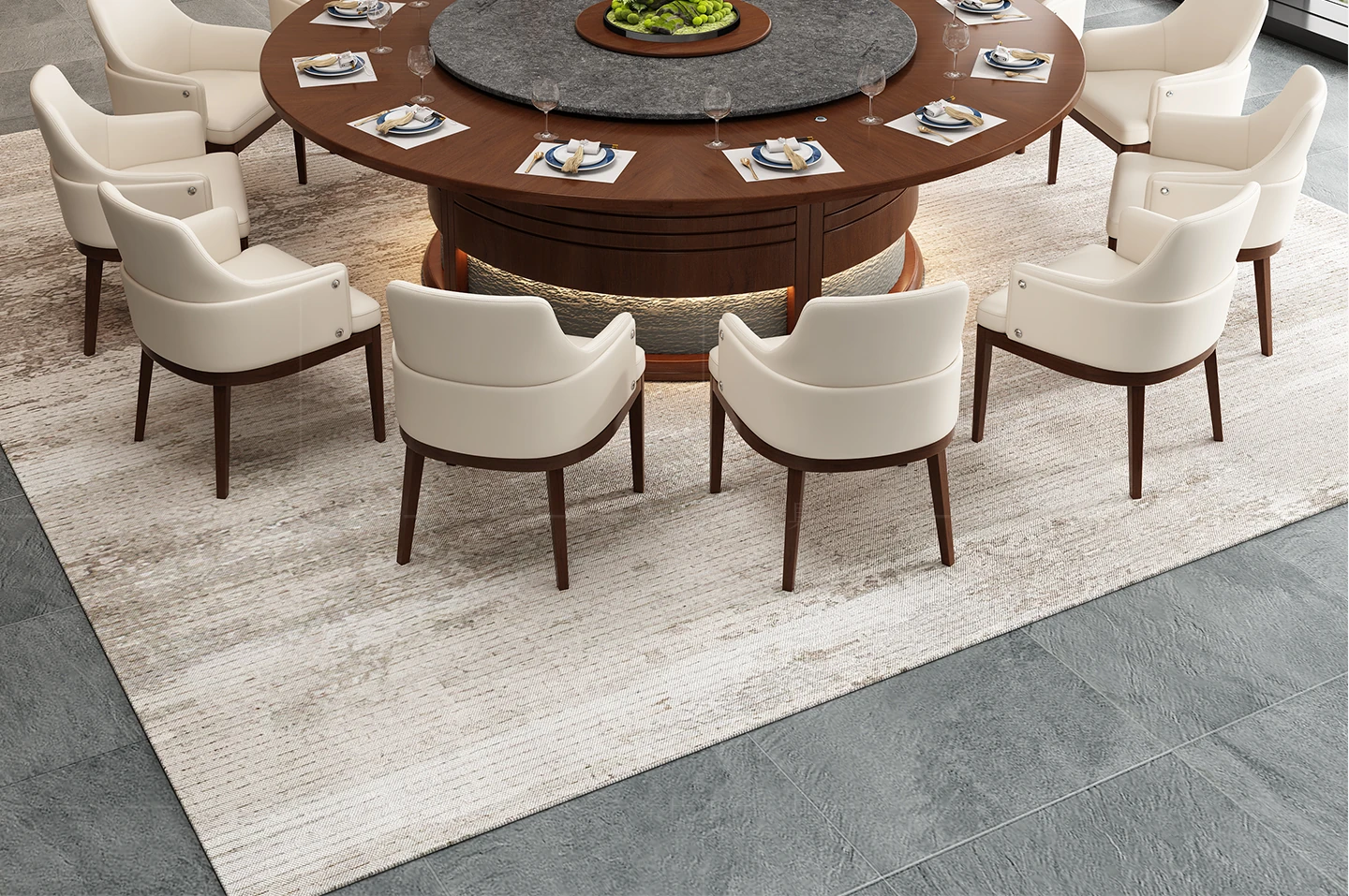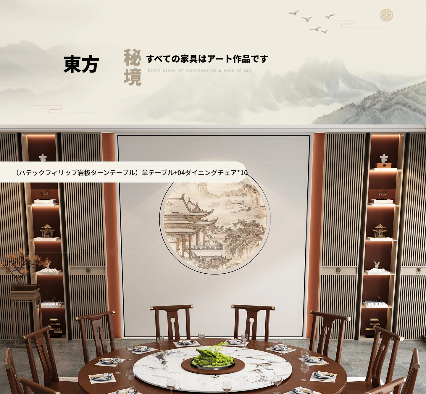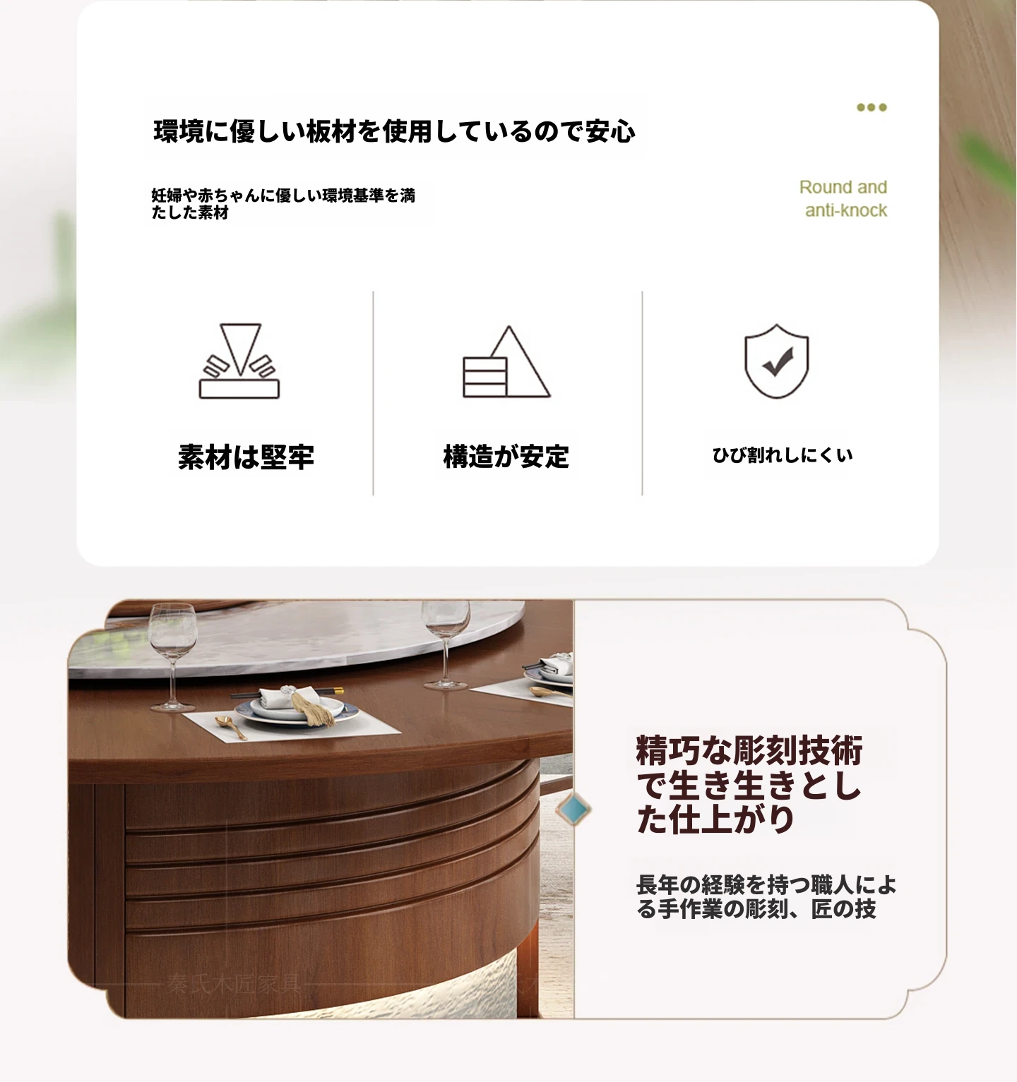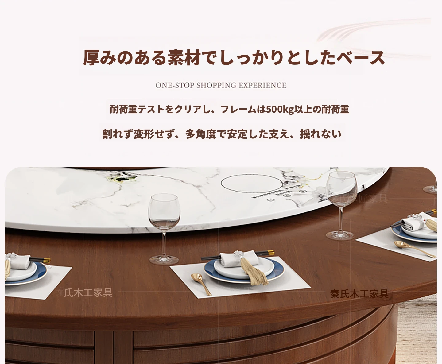 新中式軽奢ホテル用電動ダイニングテーブルセット - 高級感溢れる実木と岩板の組み合わせ、レストランや別荘に最適!自動回転プレート付きで便利さも追求。贅沢なひと時を演出します。