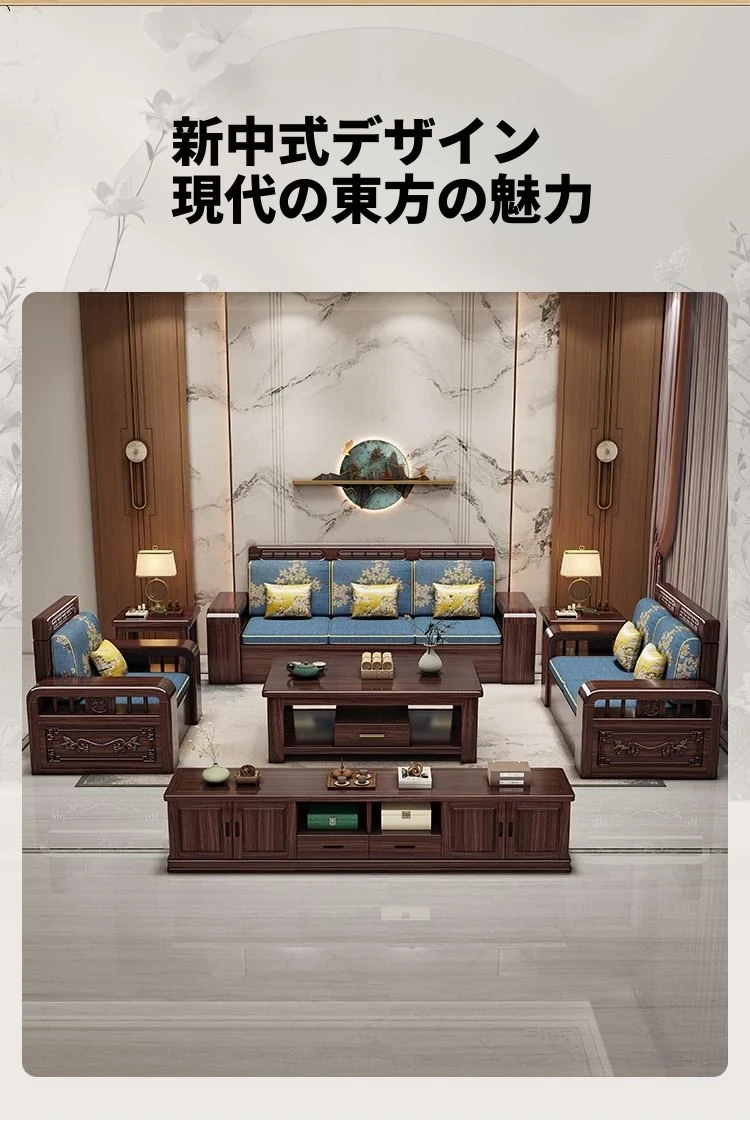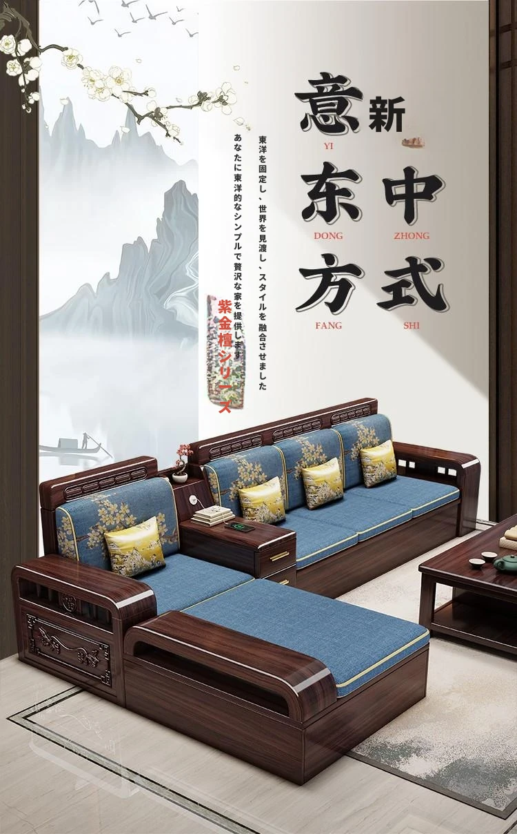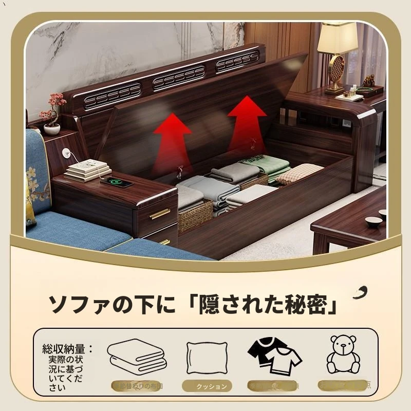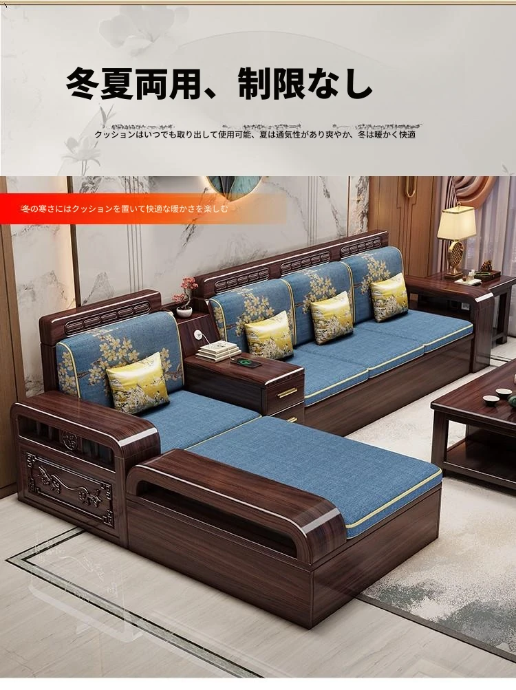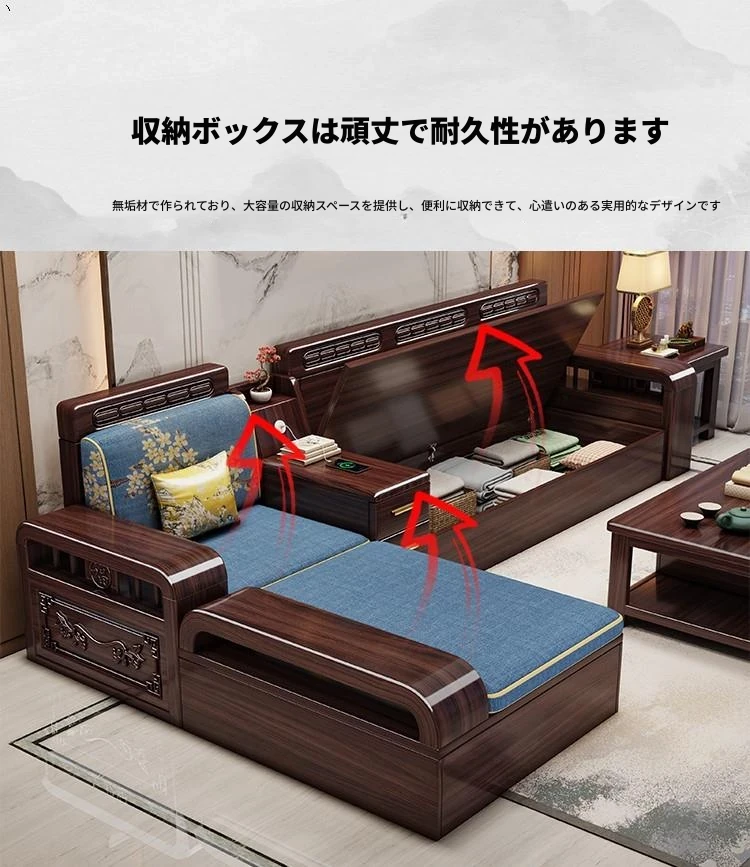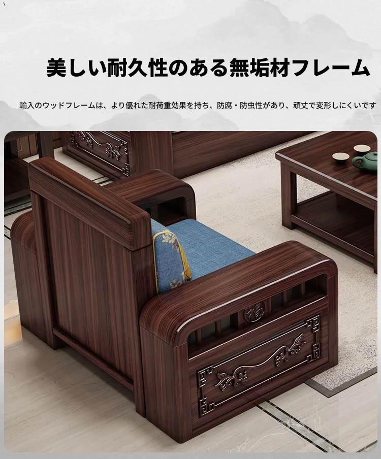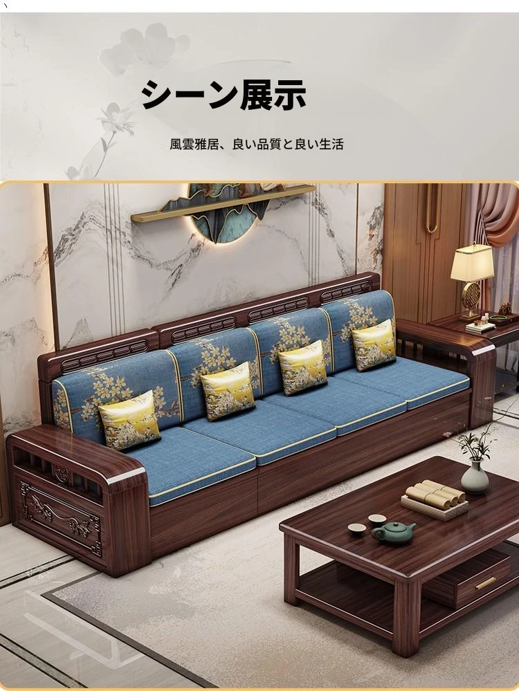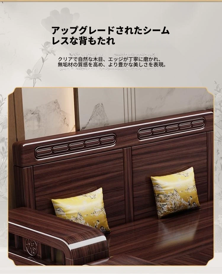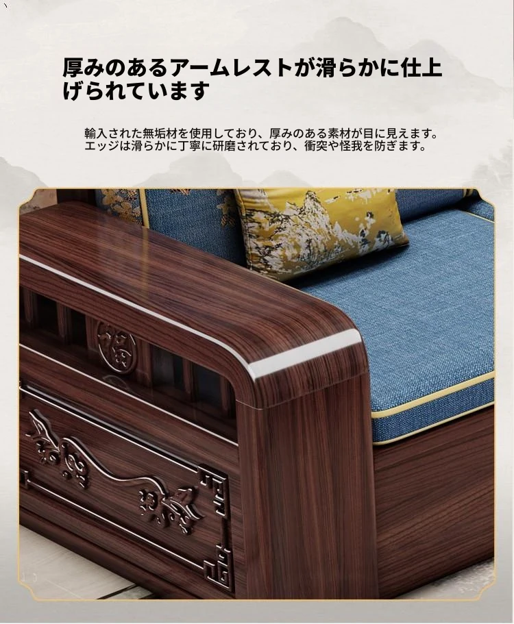 紫金檀の無垢材を使用したリビング用ソファ。新中式デザインで、現代的かつシンプルなスタイル。冬夏両用、収納機能付きのコンパクトソファで、小さな部屋にもぴったり!快適な空間を演出します。