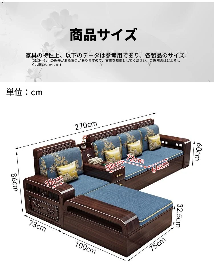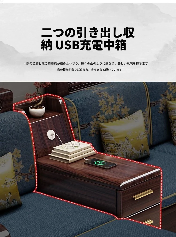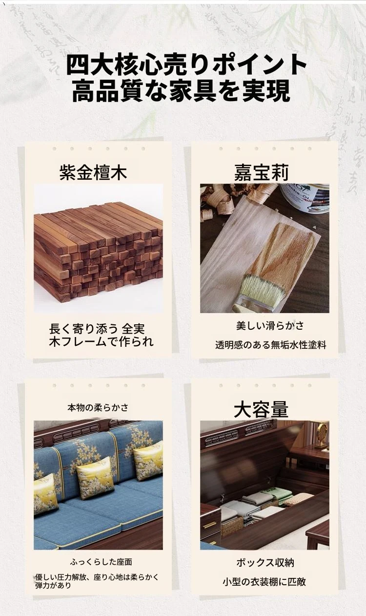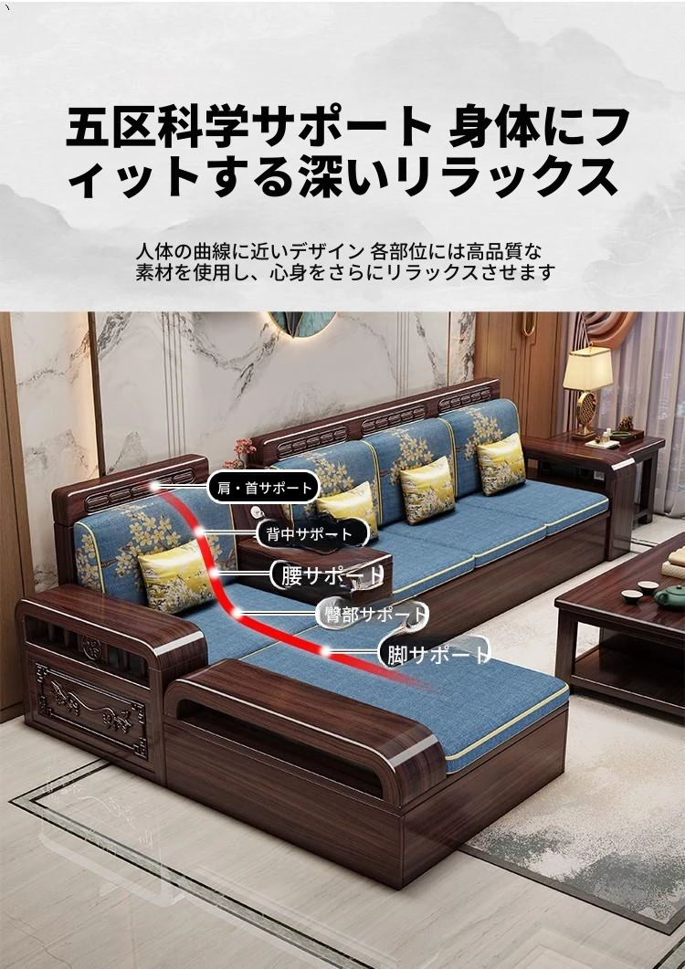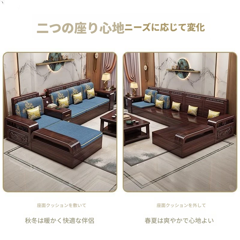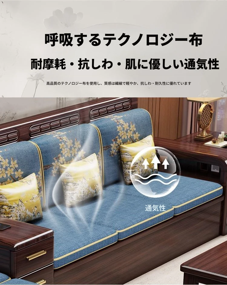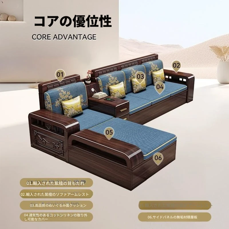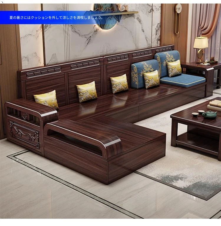 紫金檀の無垢材を使用したリビング用ソファ。新中式デザインで、現代的かつシンプルなスタイル。冬夏両用、収納機能付きのコンパクトソファで、小さな部屋にもぴったり!快適な空間を演出します。