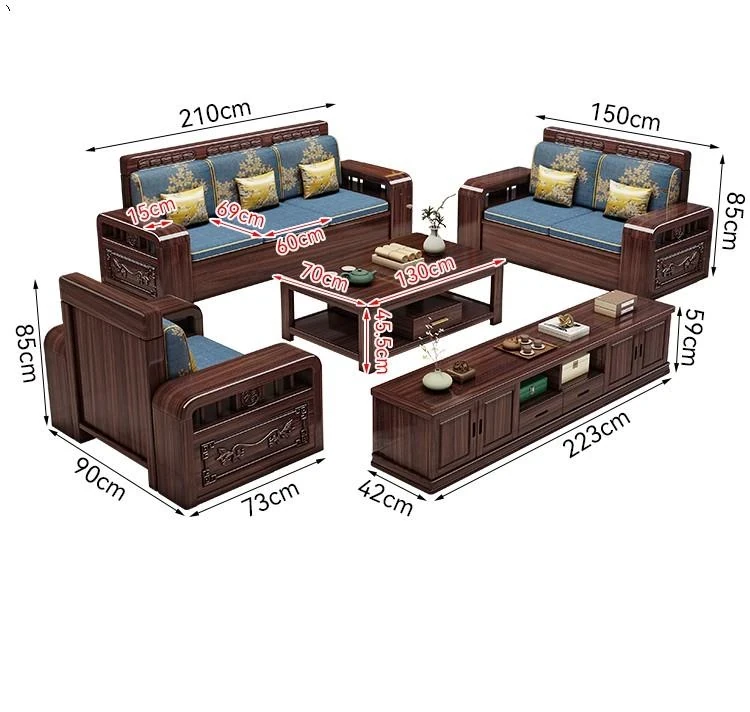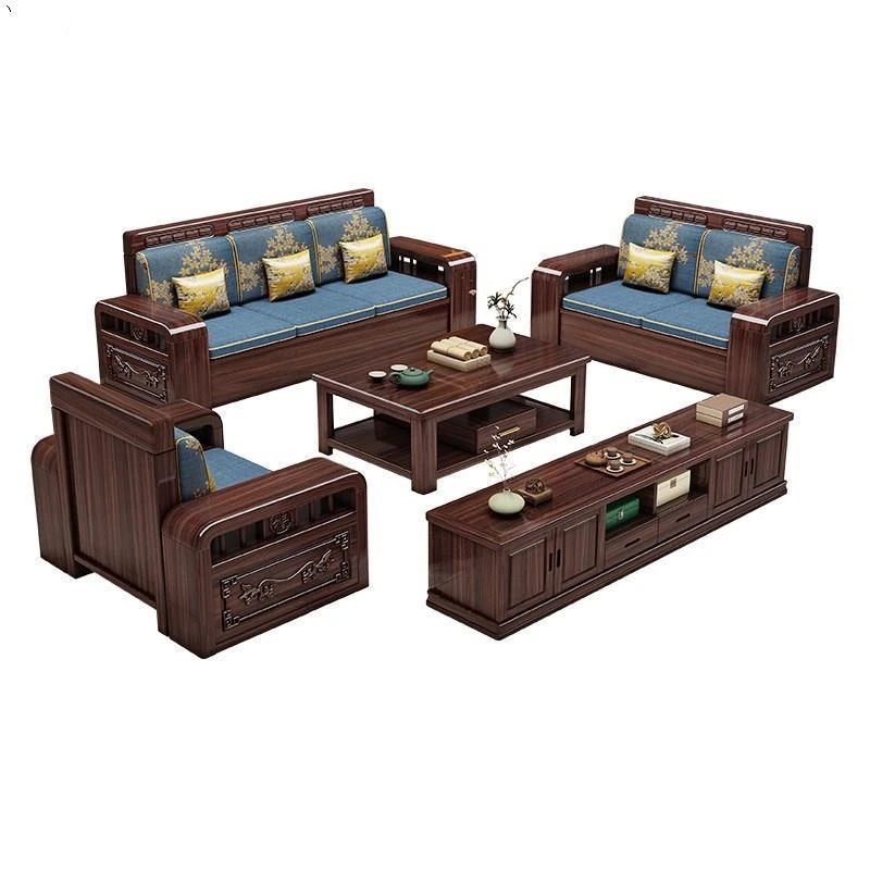【紫金檀木】四人用ソファ+貴妃ソファ+中箱+テーブル+テレビ台+一人用ソファ