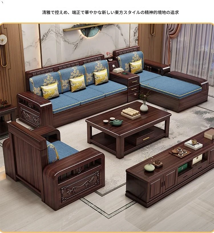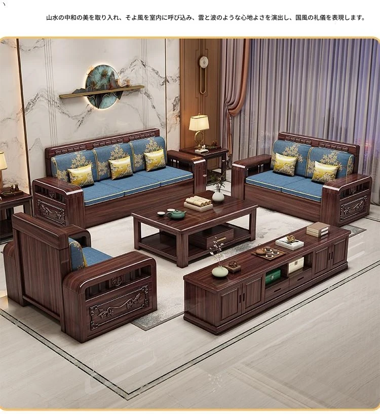 【紫金檀木】四人用ソファ+貴妃ソファ+テーブル+テレビ台+一人用ソファ