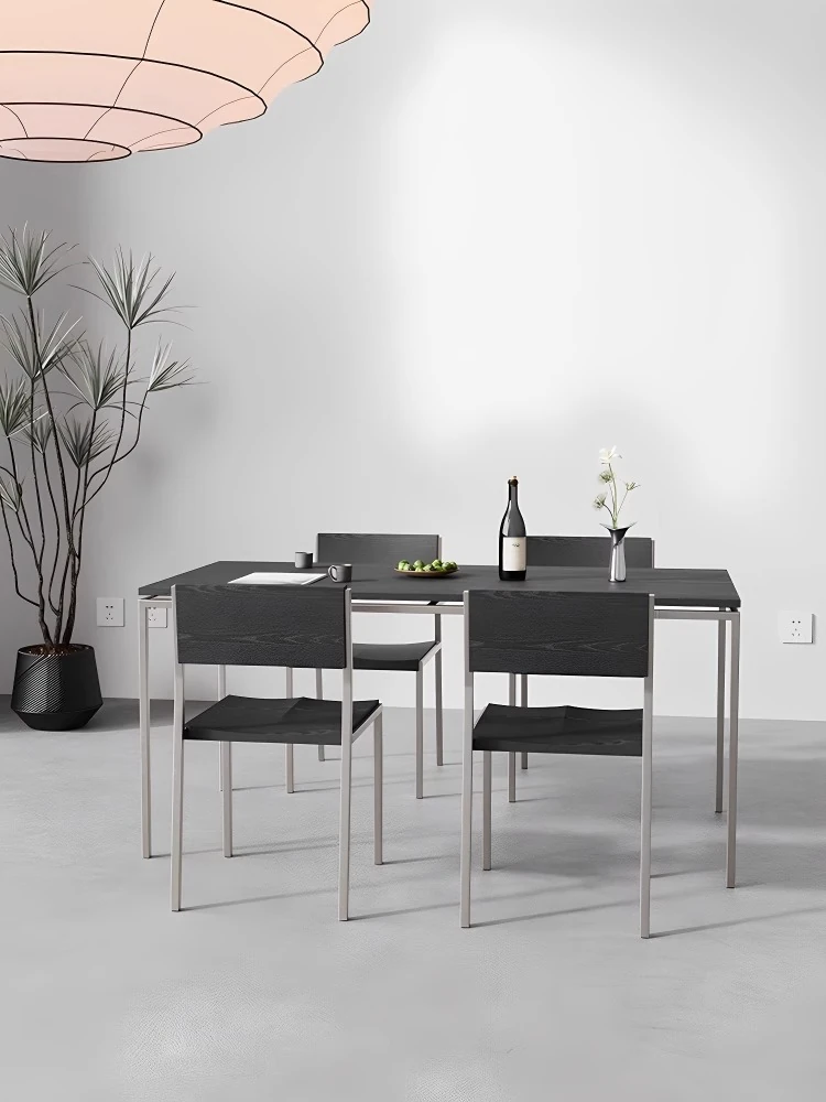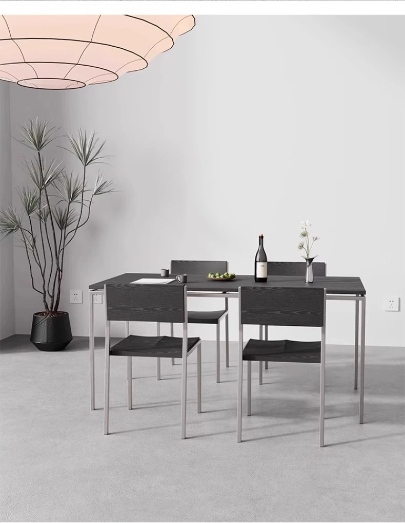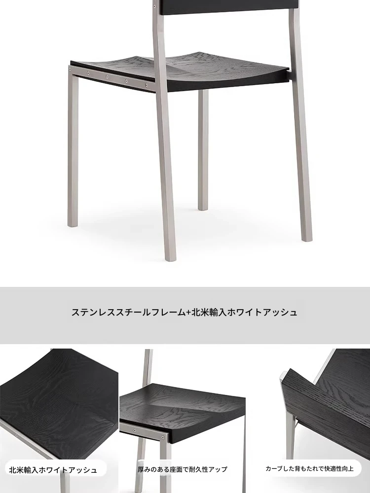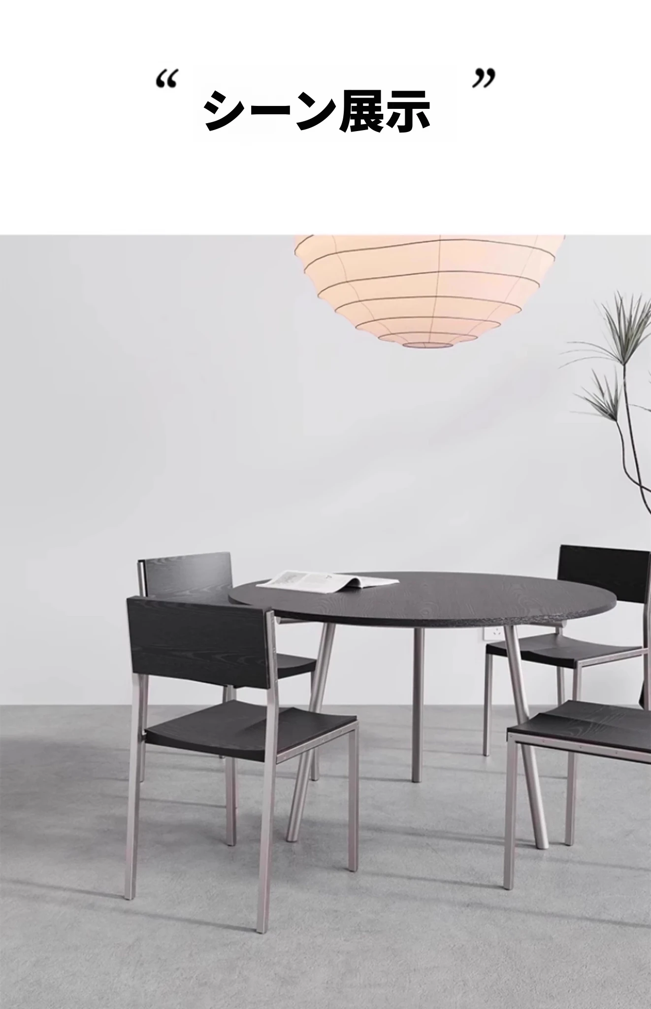 高級感溢れる無垢材のレトロダイニングテーブルセット!デザイナーが手掛けたホワイトアッシュの背もたれ付き椅子、ステンレス製の高品質ダイニングチェア。おしゃれな空間を演出し、食事がもっと特別に!