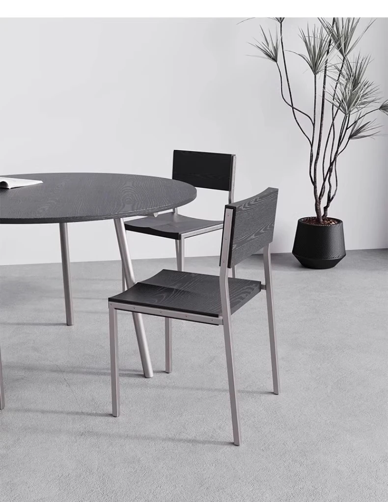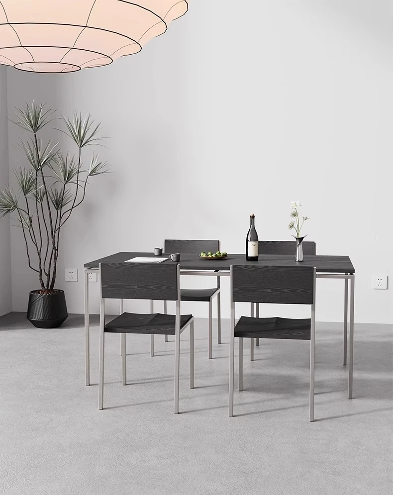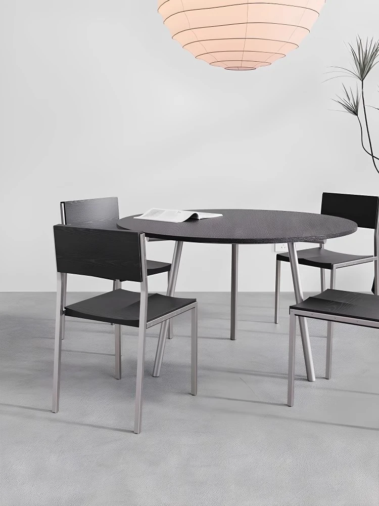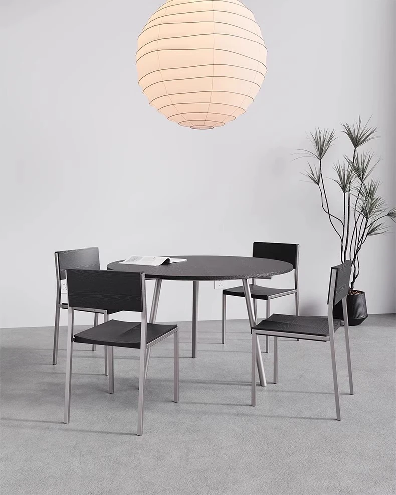 高級感溢れる無垢材のレトロダイニングテーブルセット!デザイナーが手掛けたホワイトアッシュの背もたれ付き椅子、ステンレス製の高品質ダイニングチェア。おしゃれな空間を演出し、食事がもっと特別に!