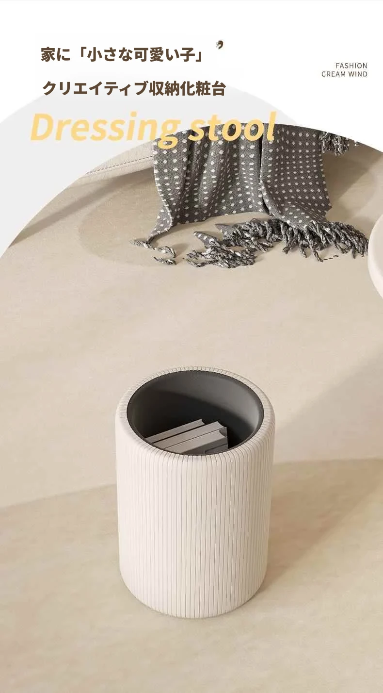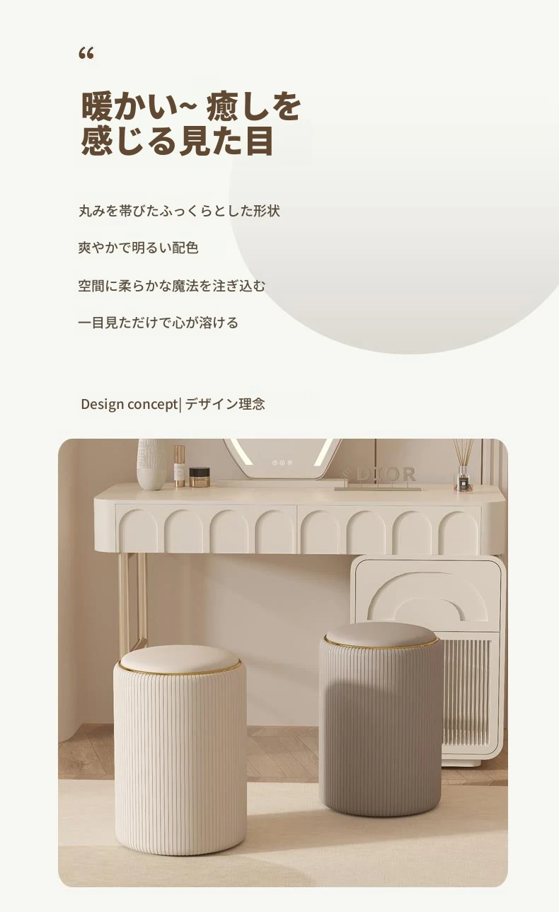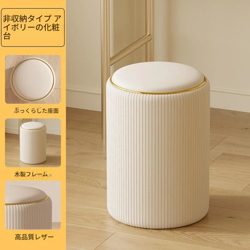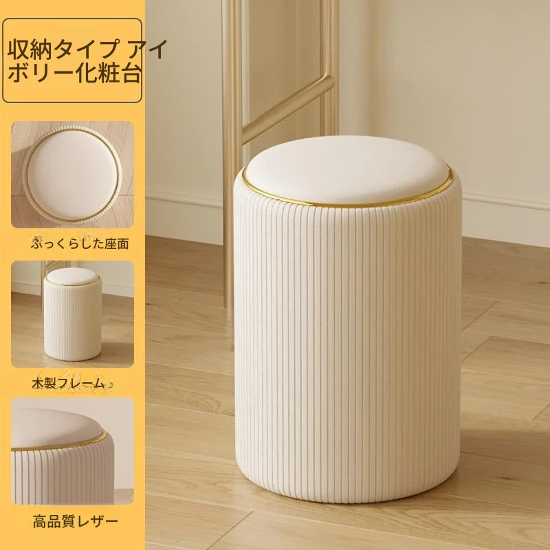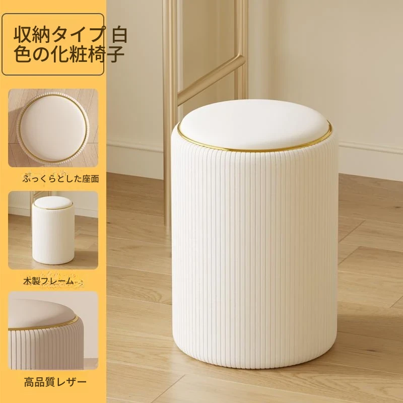 軽奢感漂う美しい化粧台椅子!収納機能付きの円形デザインで、美容やネイルに最適。寝室にぴったりなクリーミーカラーで、毎日のメイクアップが楽しみになるアイテムです!