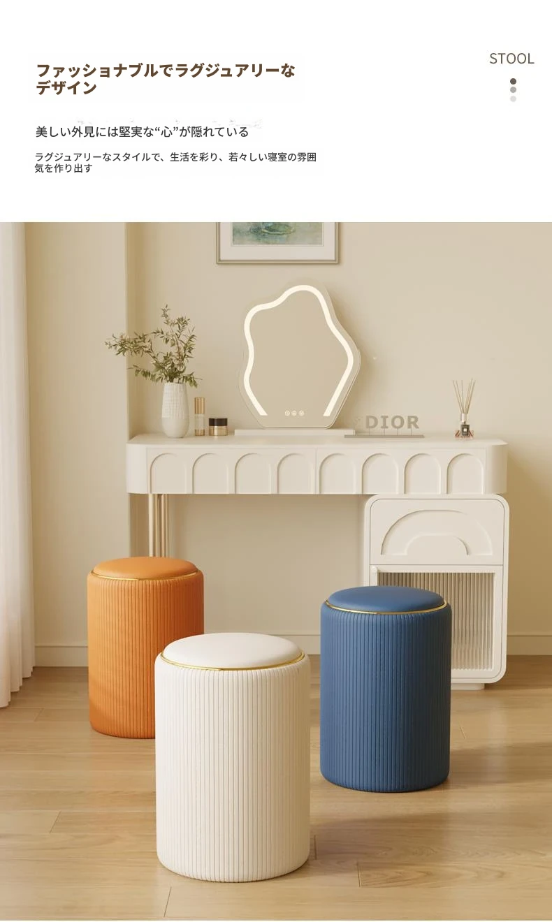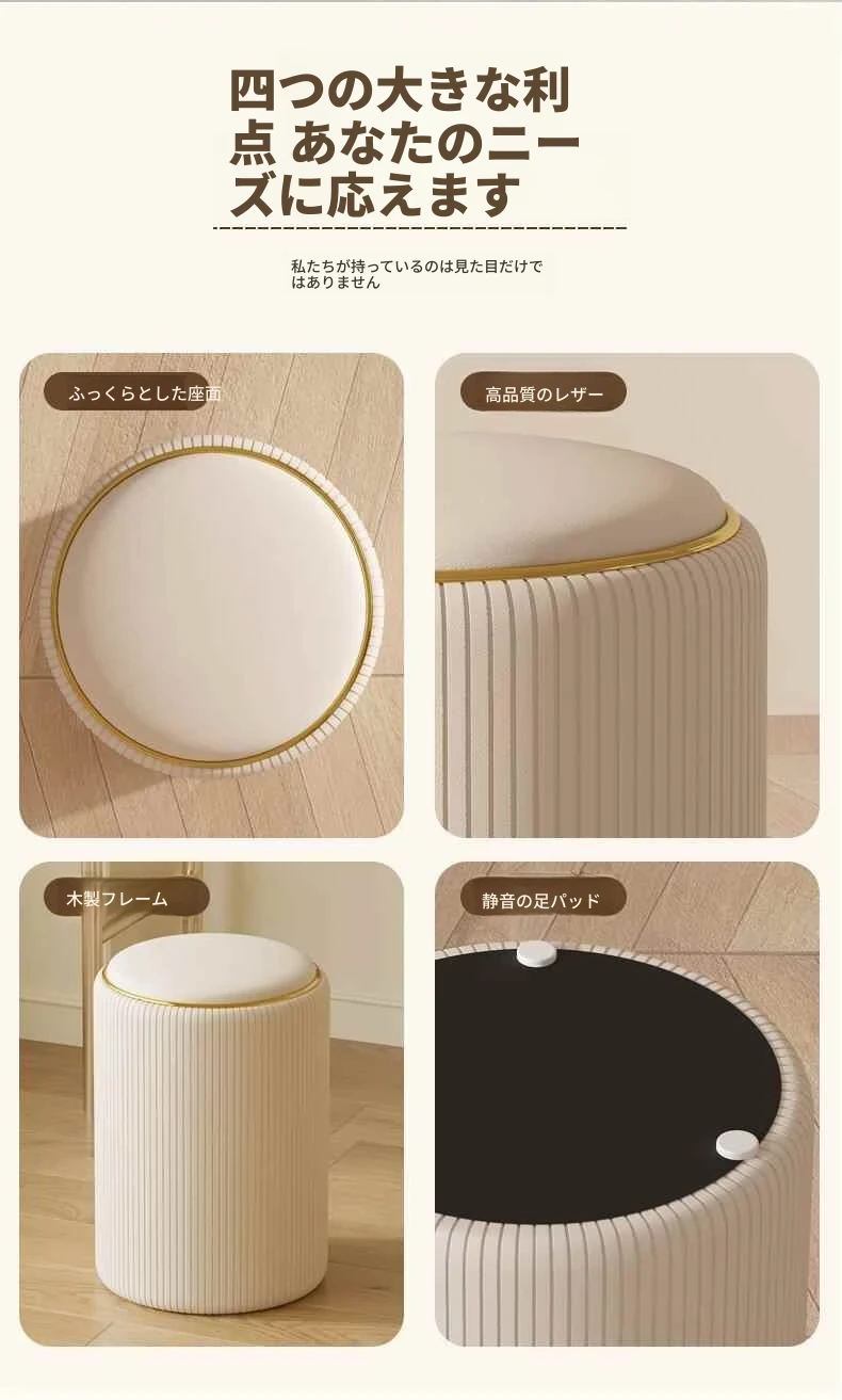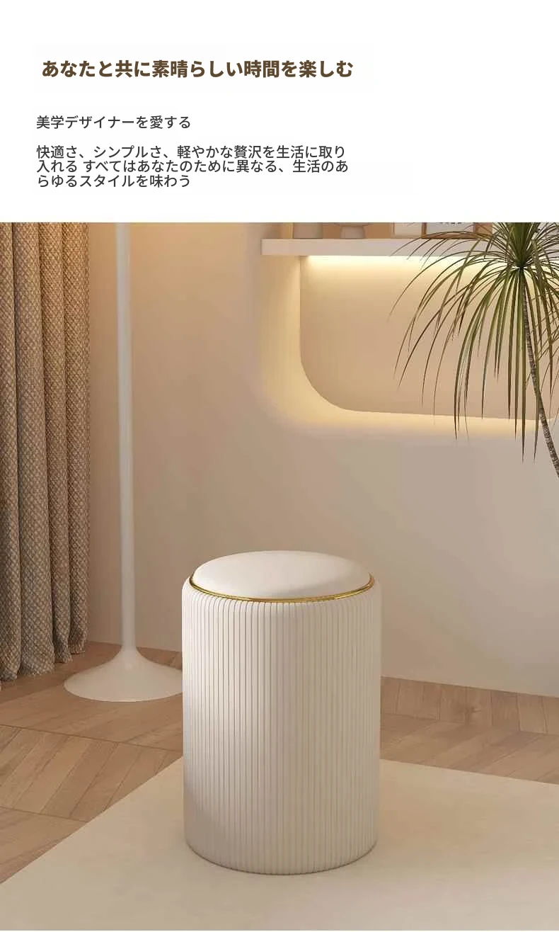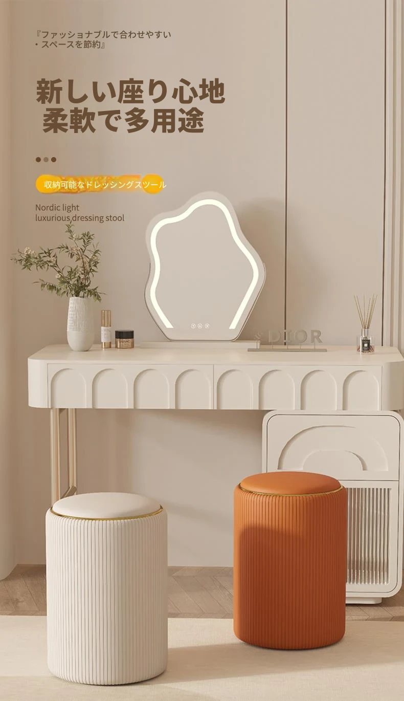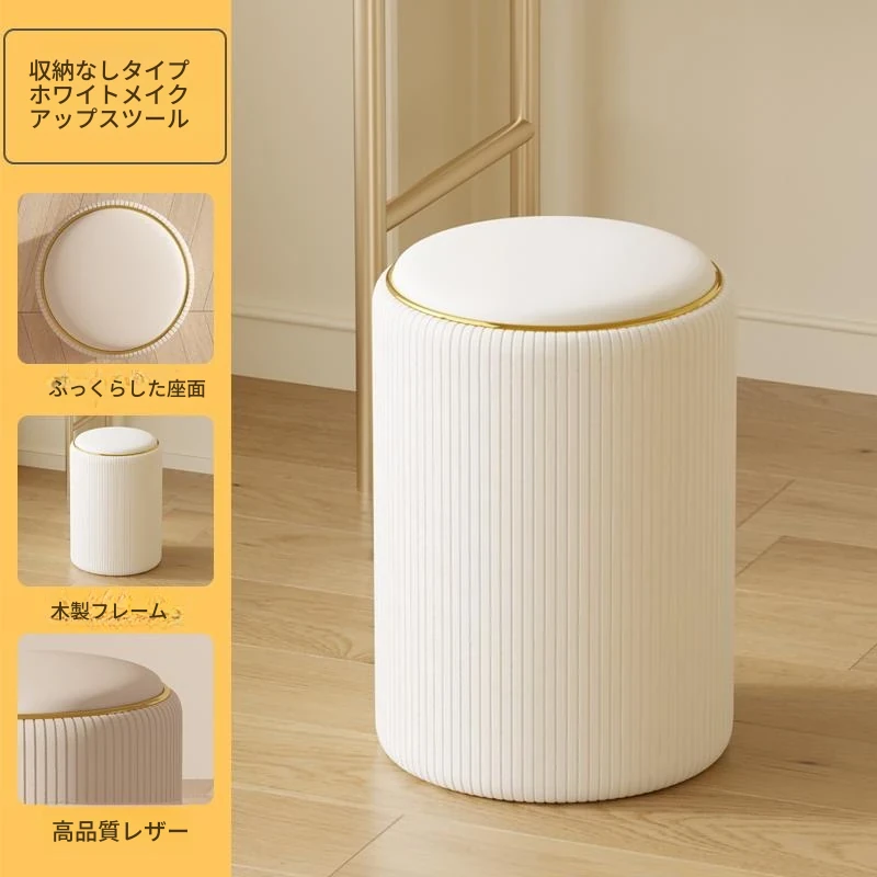 軽奢感漂う美しい化粧台椅子!収納機能付きの円形デザインで、美容やネイルに最適。寝室にぴったりなクリーミーカラーで、毎日のメイクアップが楽しみになるアイテムです!